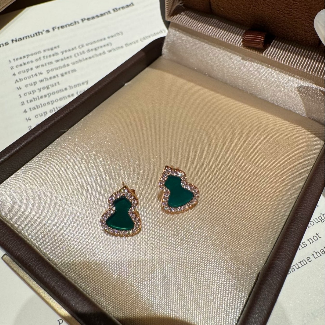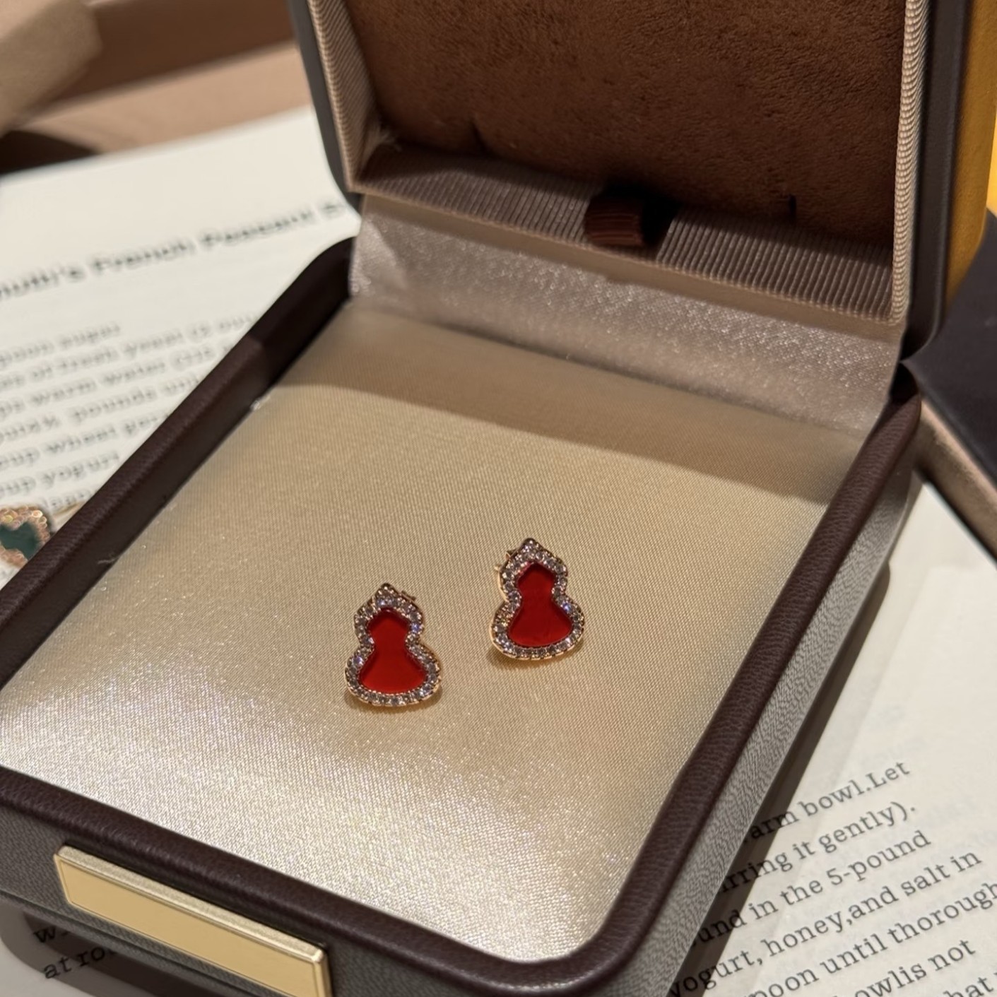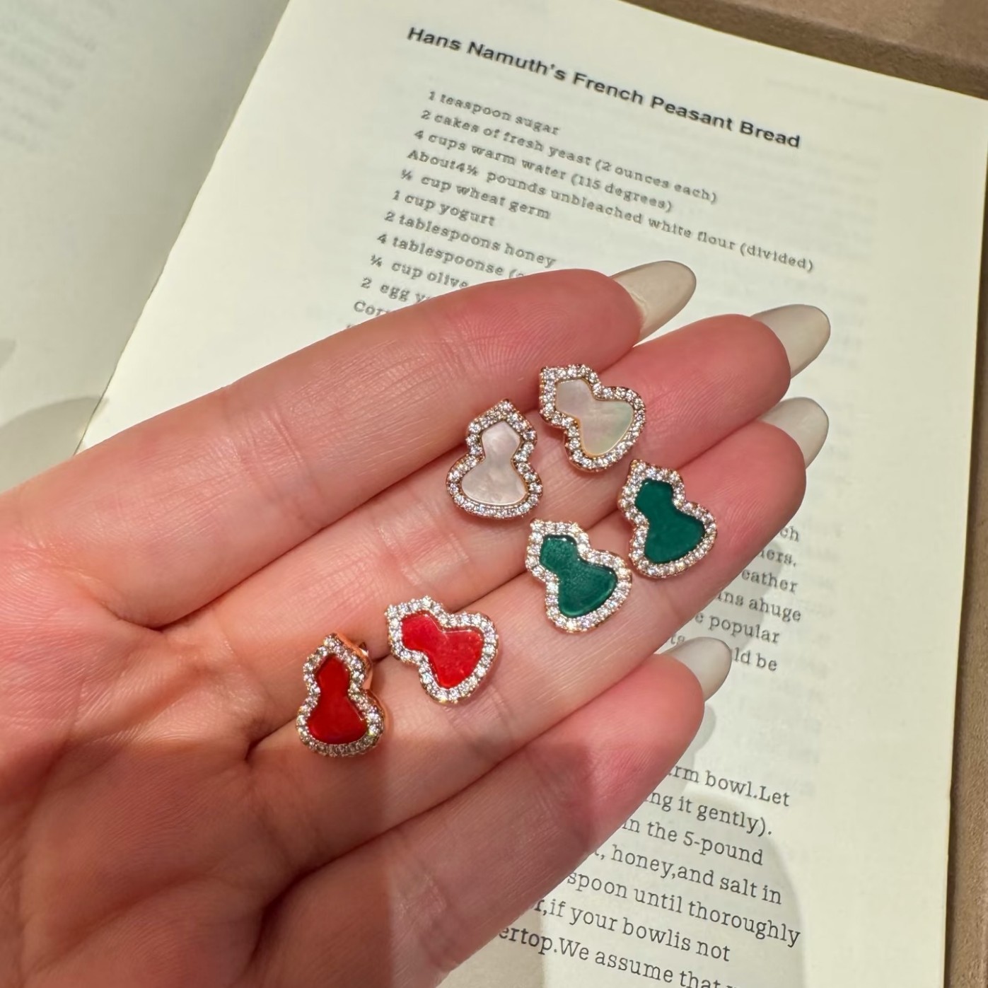 纯银S925红玉髓绿翡翠天然白贝福禄葫芦耳钉简约日常百搭轻奢气质