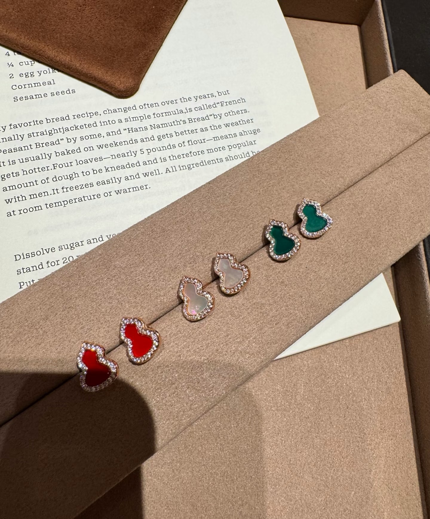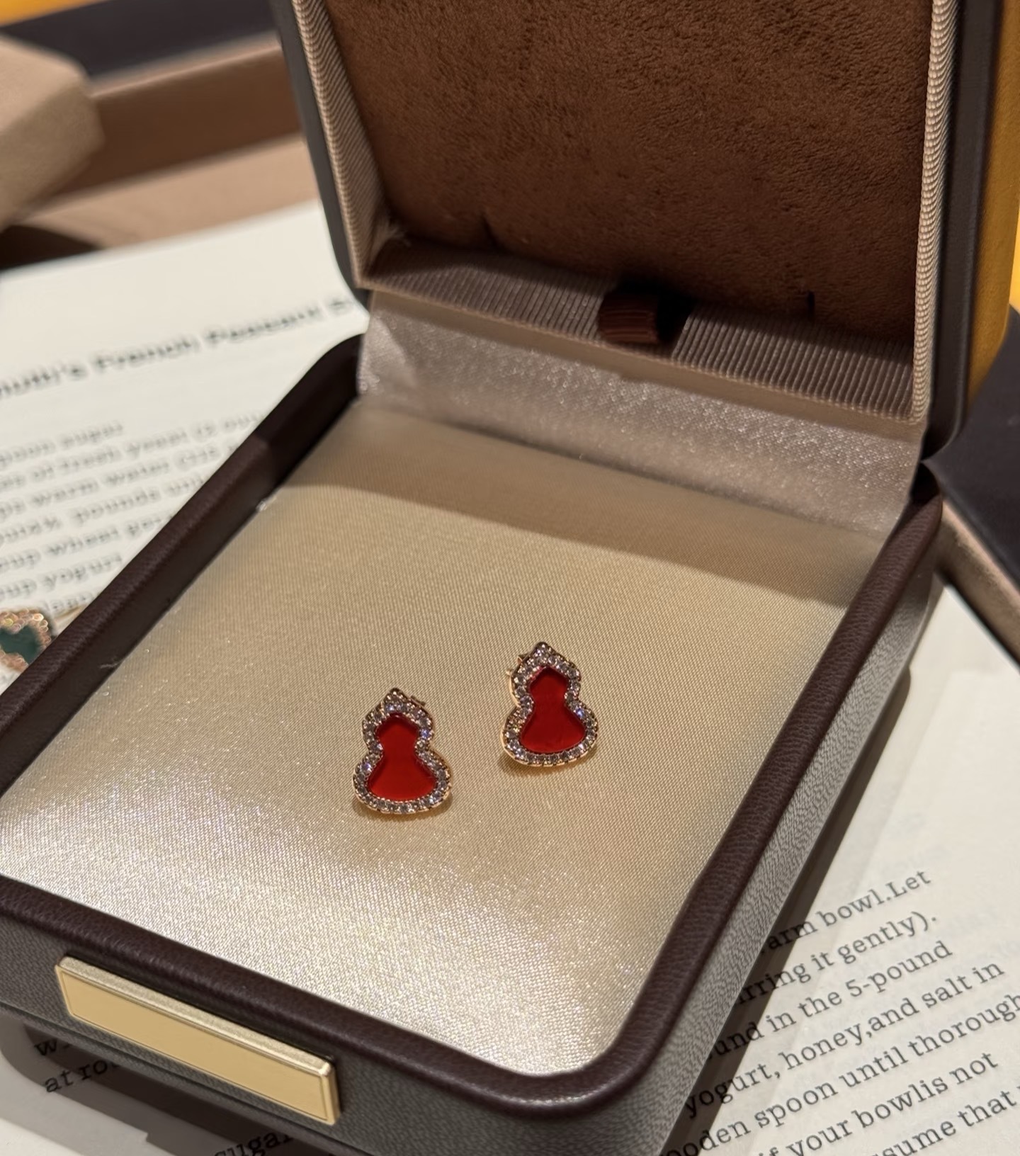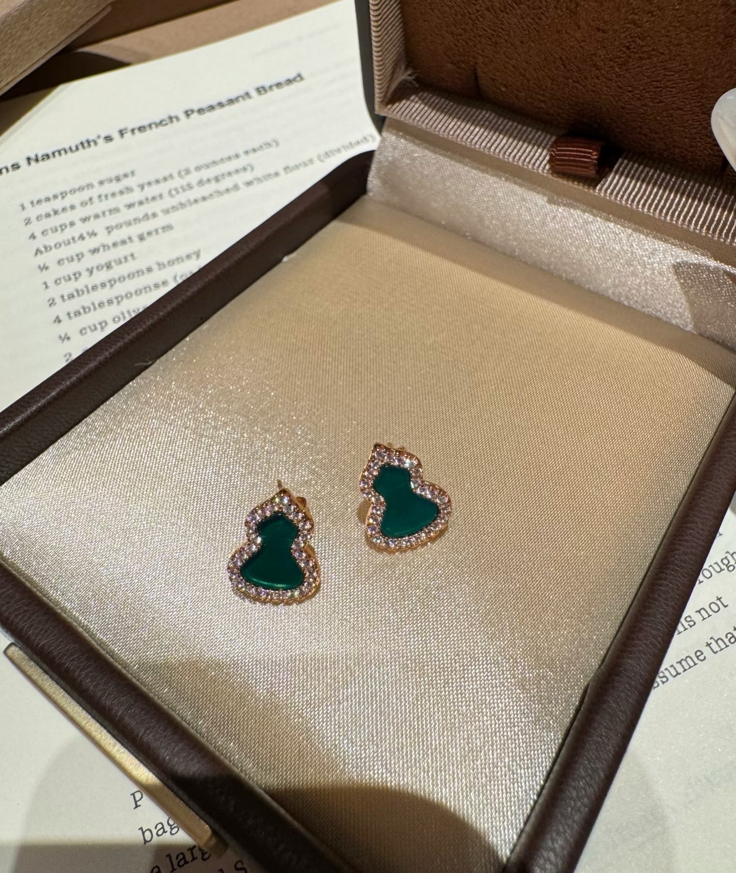 纯银S925红玉髓绿翡翠天然白贝福禄葫芦耳钉简约日常百搭轻奢气质