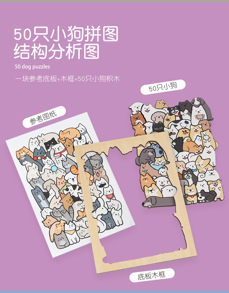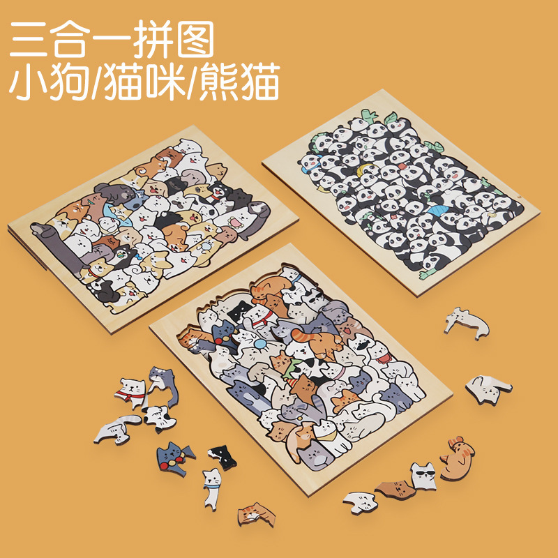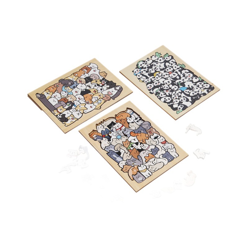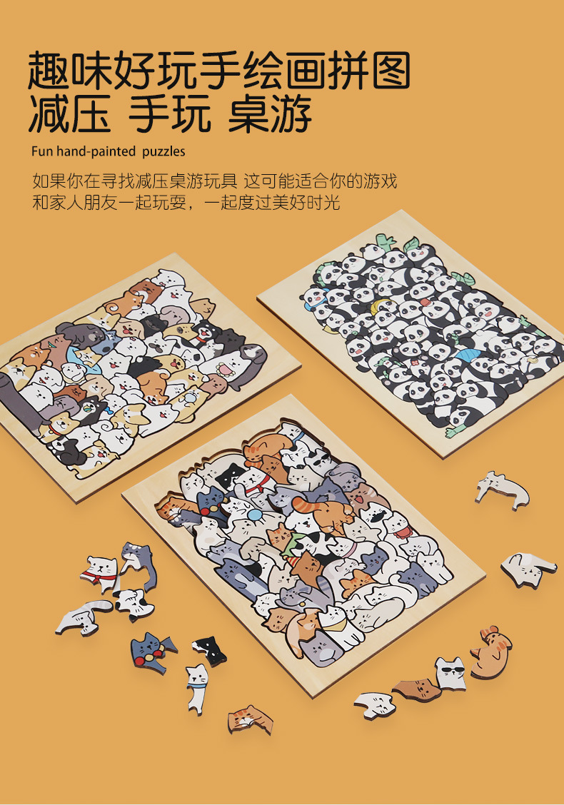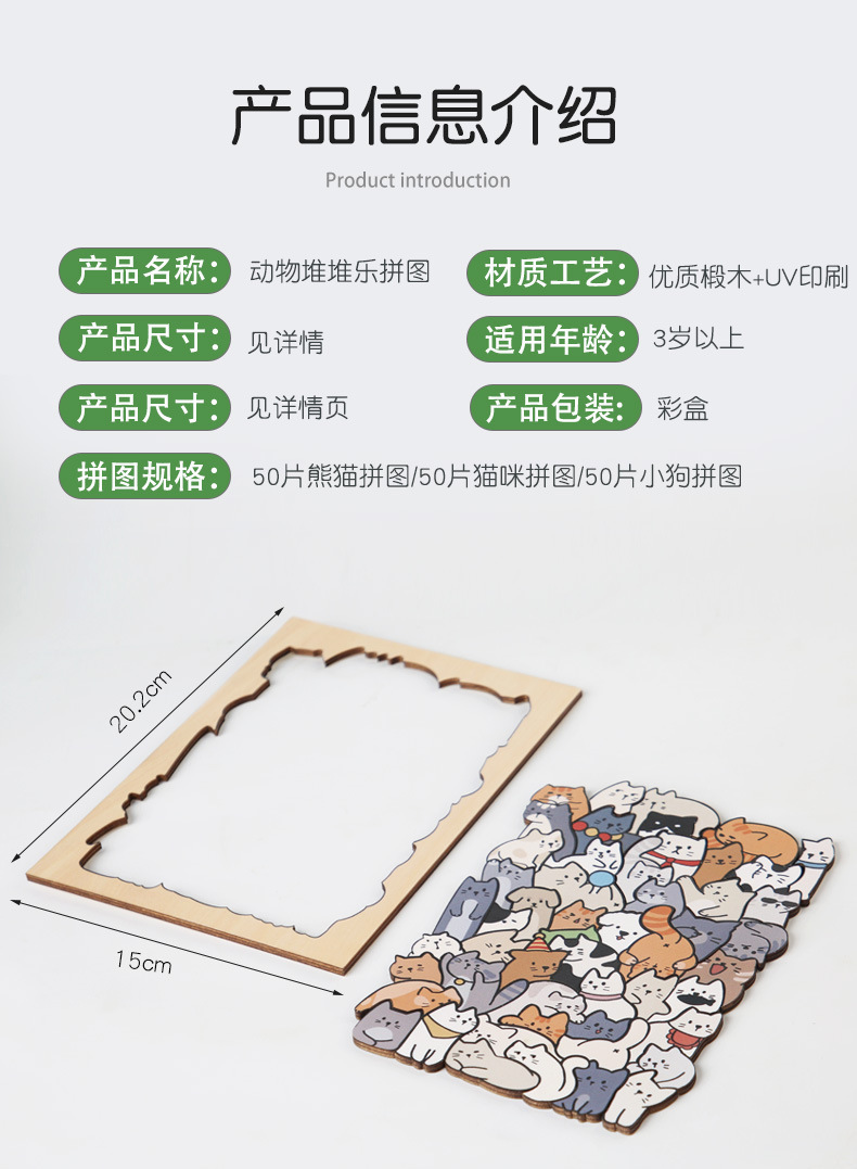 跨境木制DIY动物拼图堆堆乐游戏益智烧脑异形拼图礼盒摆件画礼物