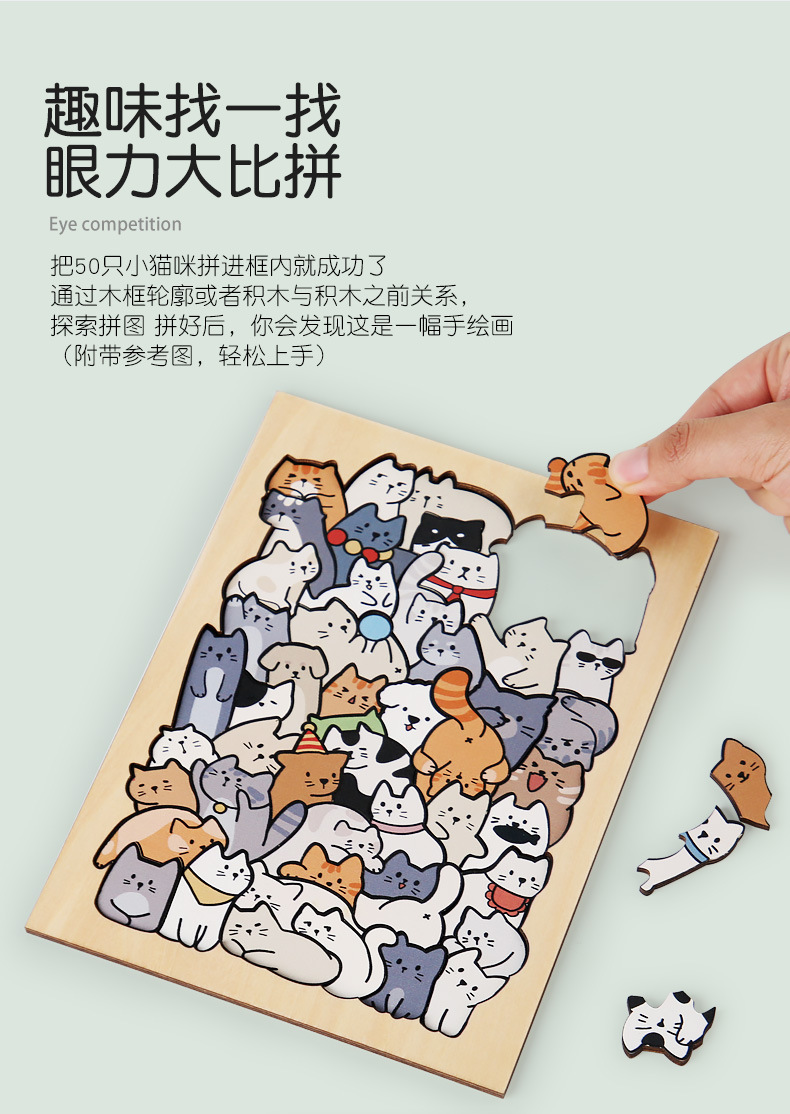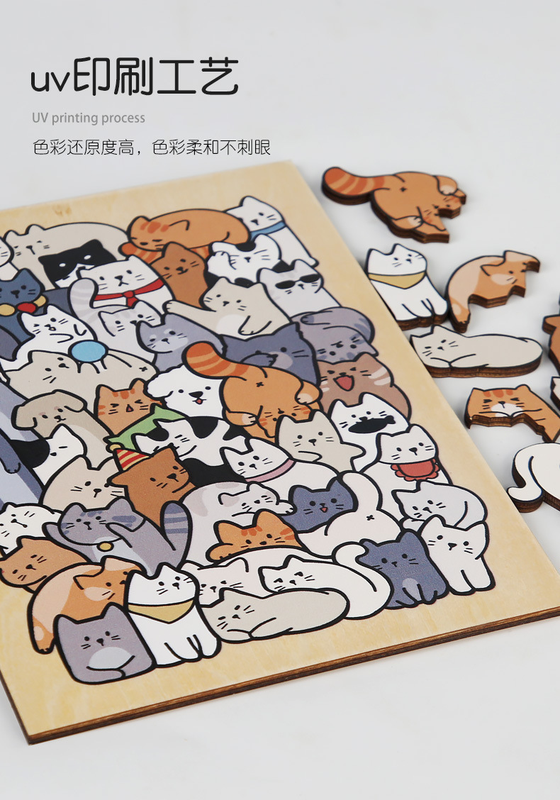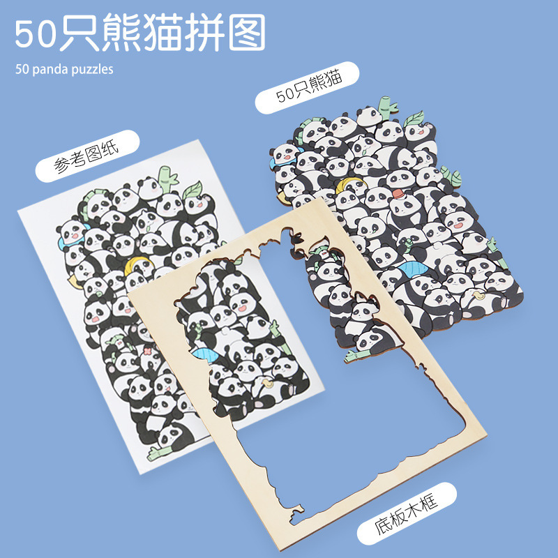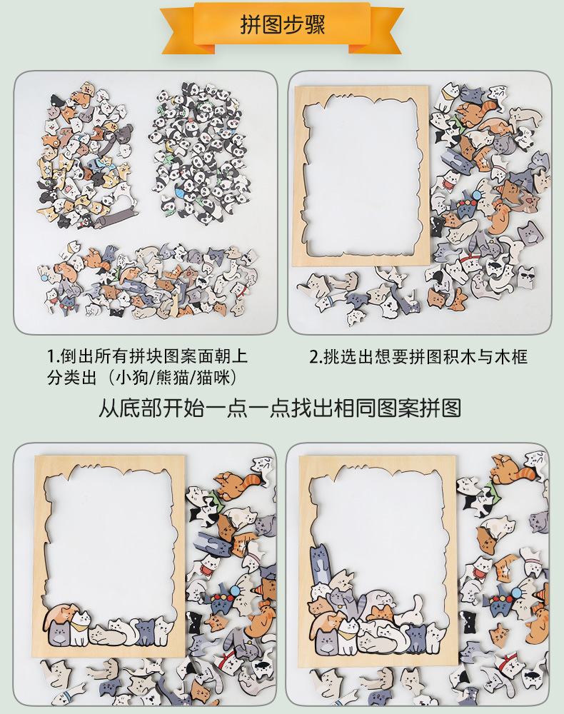 跨境木制DIY动物拼图堆堆乐游戏益智烧脑异形拼图礼盒摆件画礼物