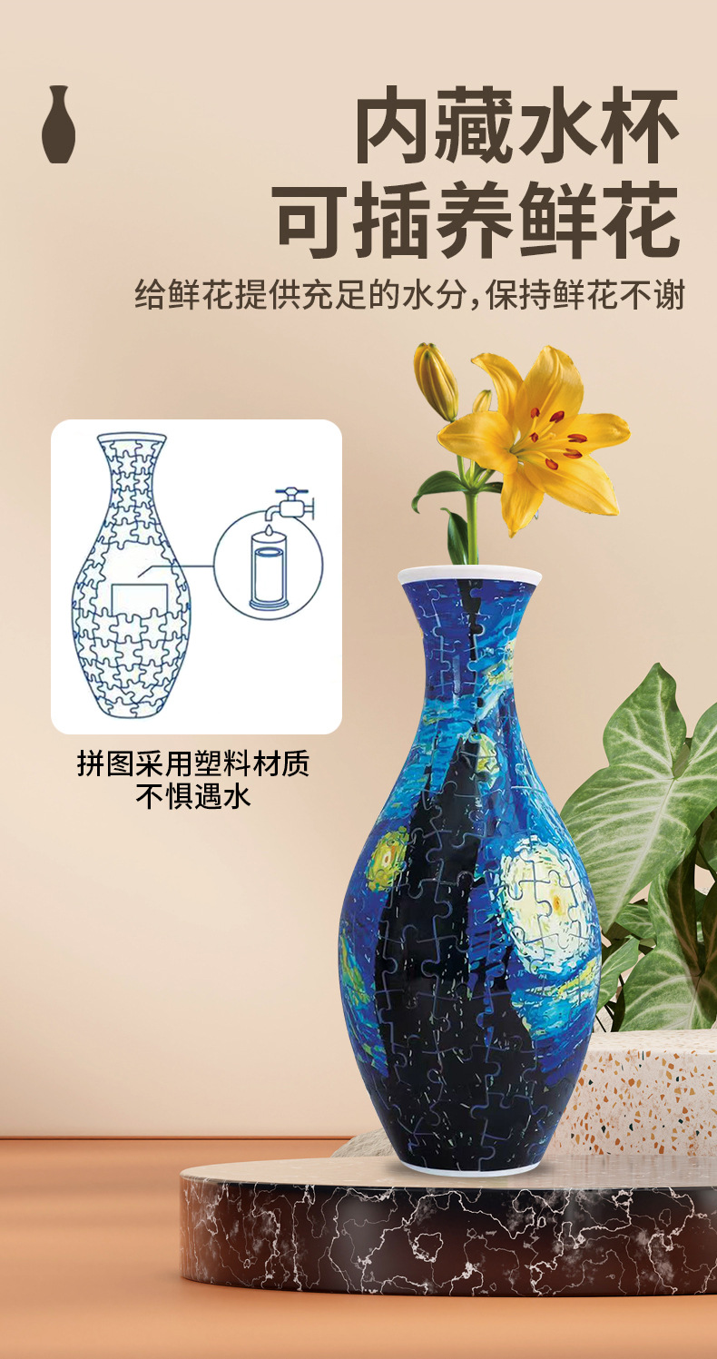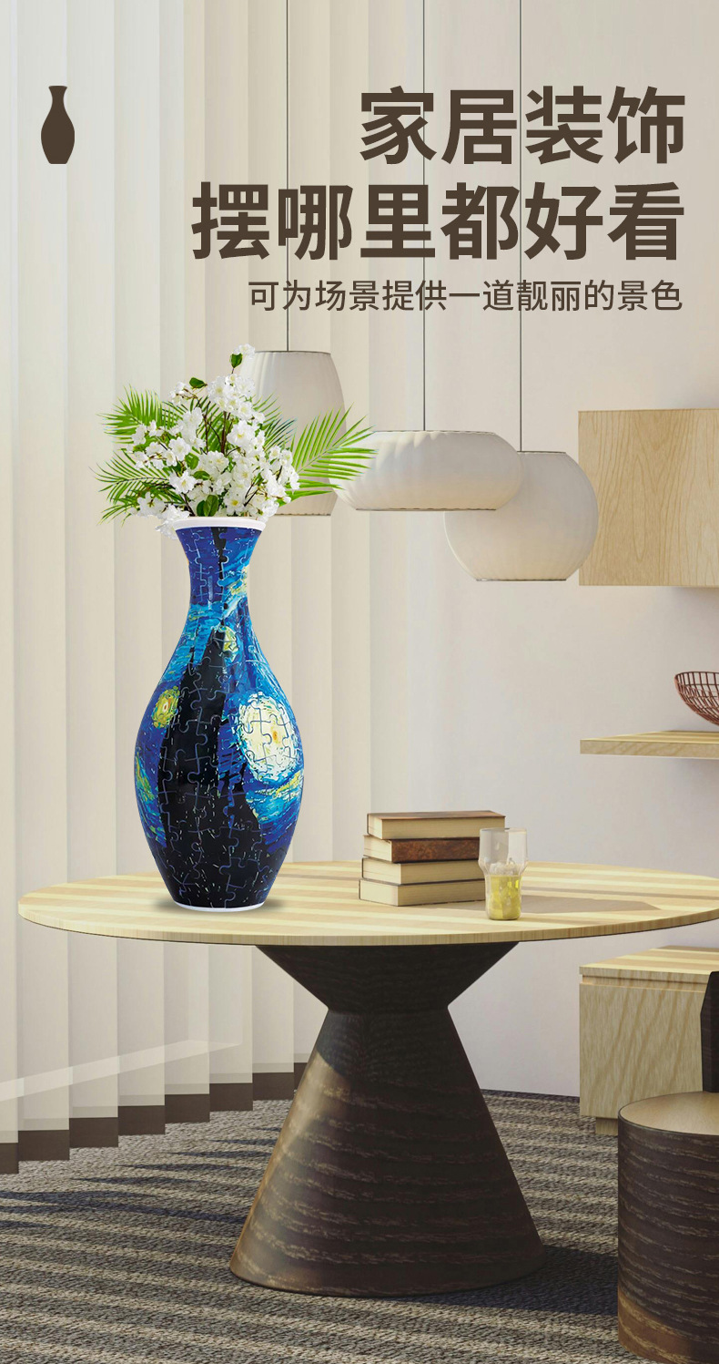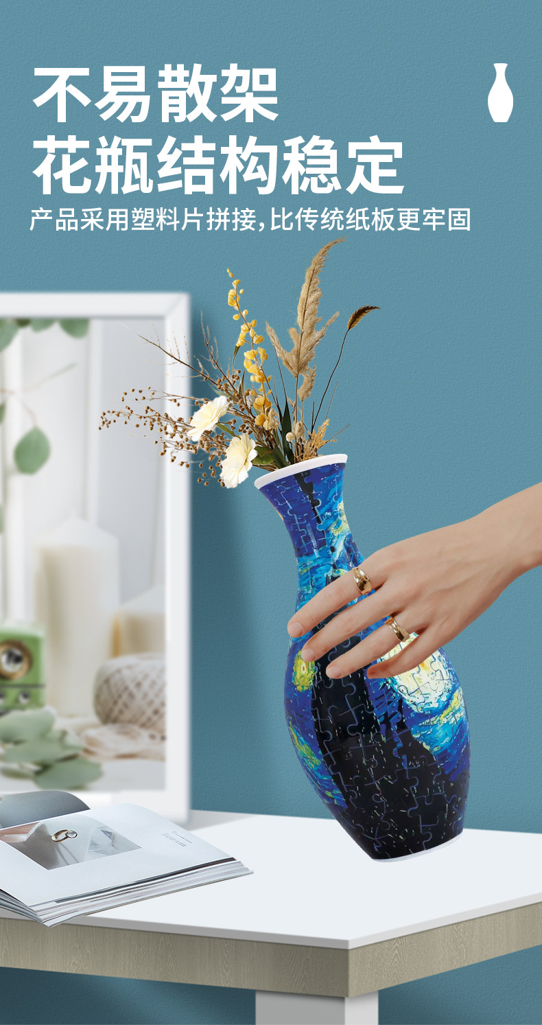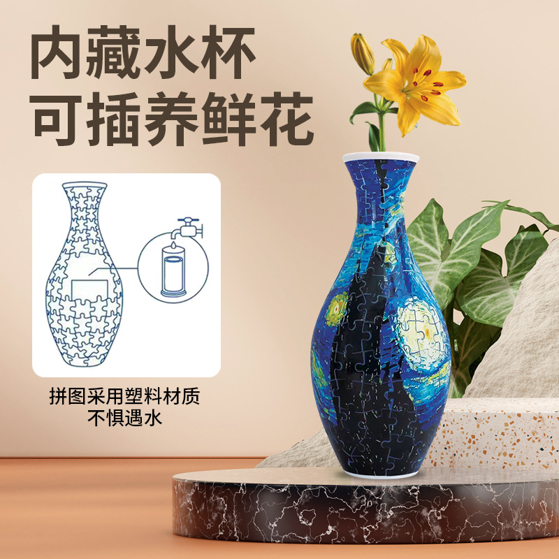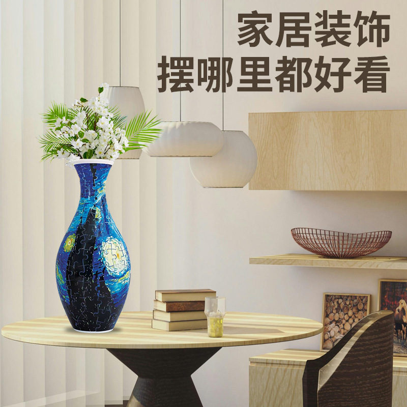 跨境3D拼图花瓶DIY 摆件玩具青花瓷拼图插板插花装饰儿童礼物玩具