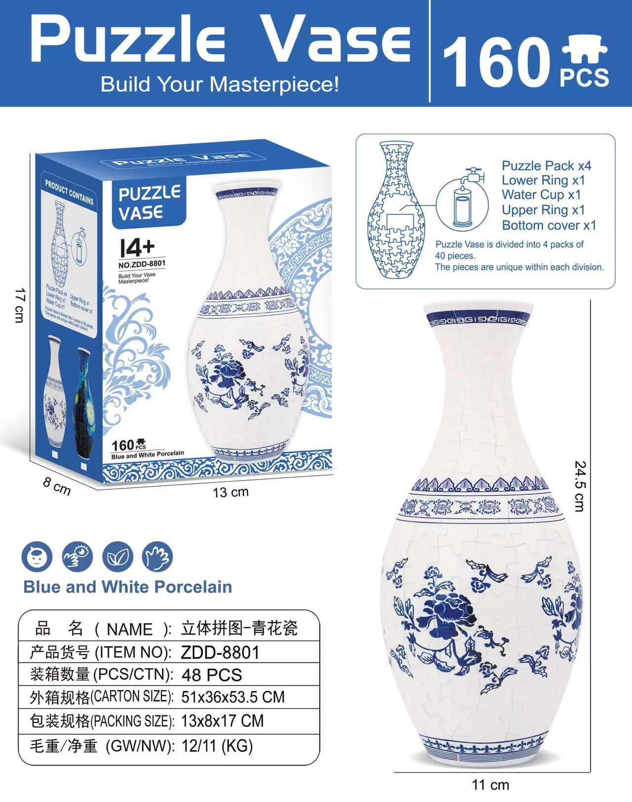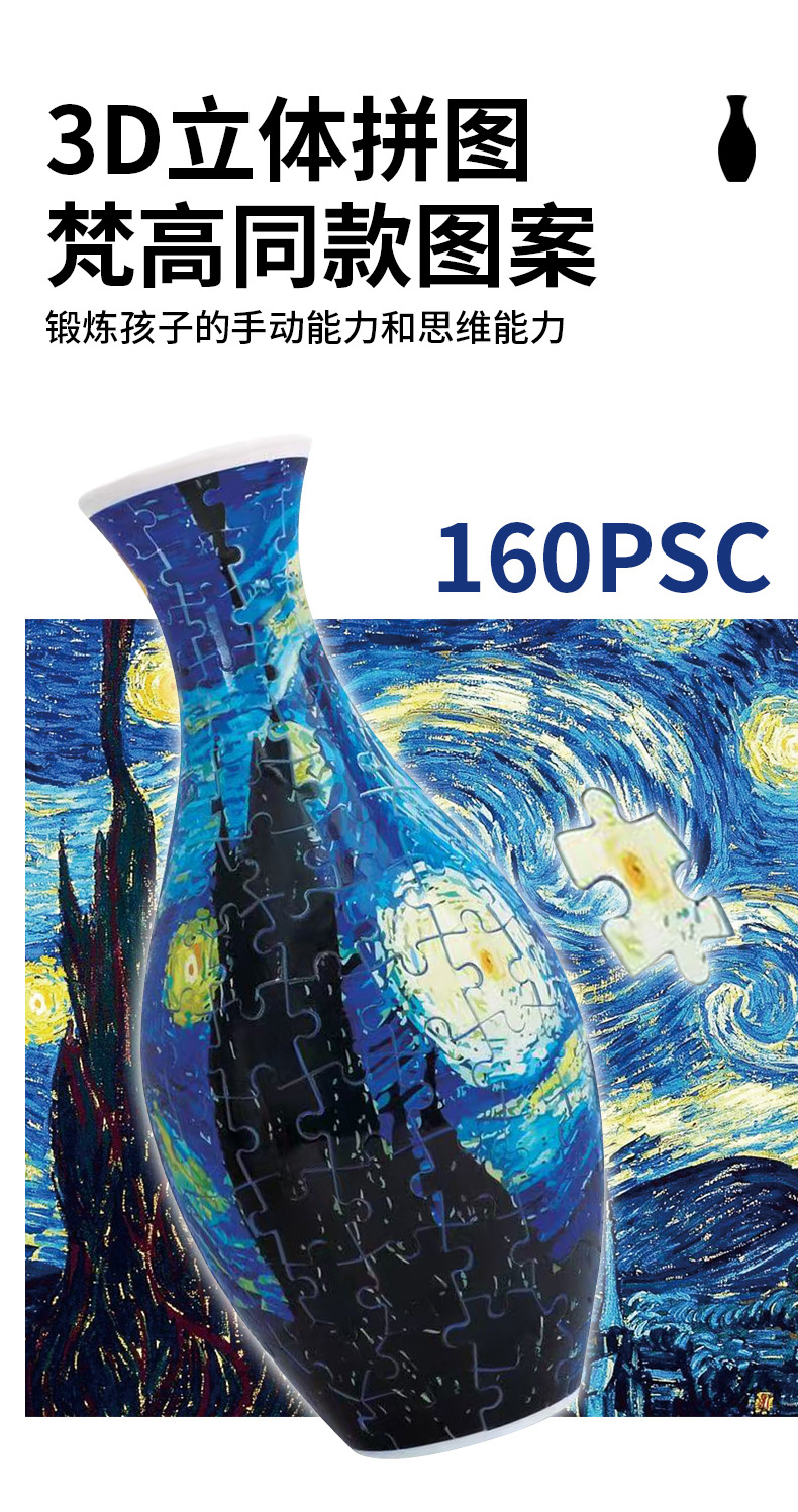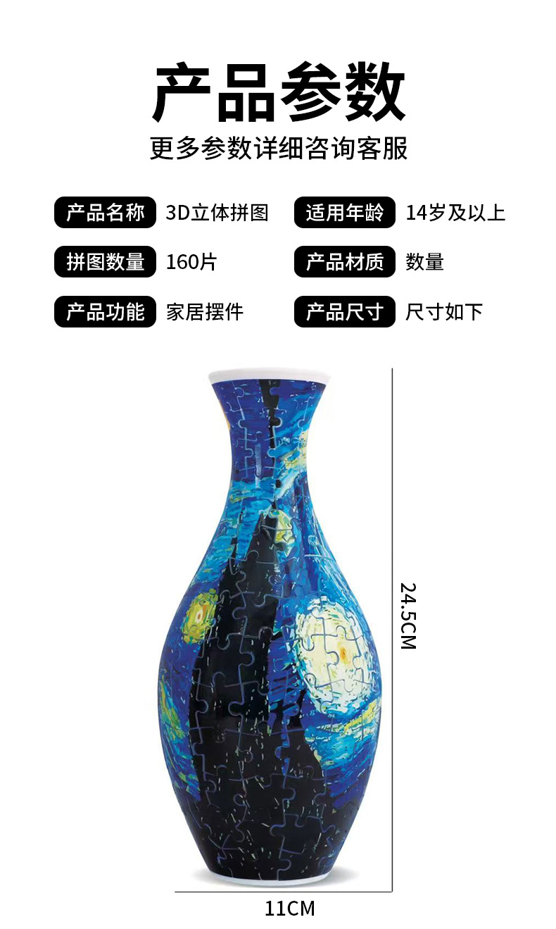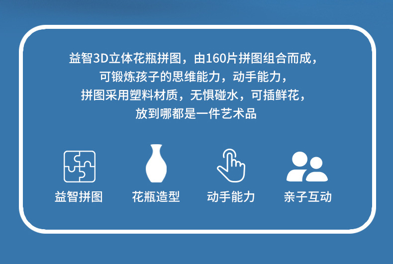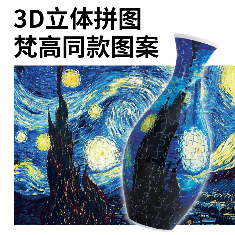 跨境3D拼图花瓶DIY 摆件玩具青花瓷拼图插板插花装饰儿童礼物玩具