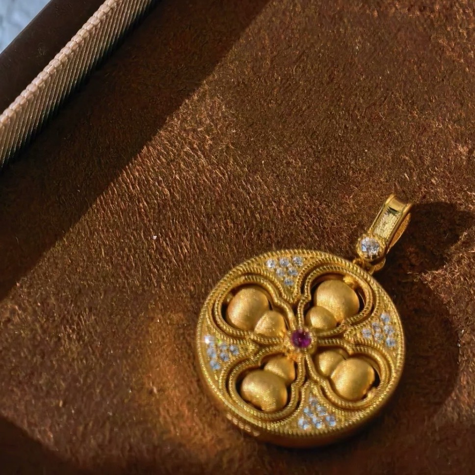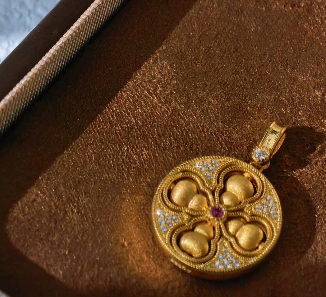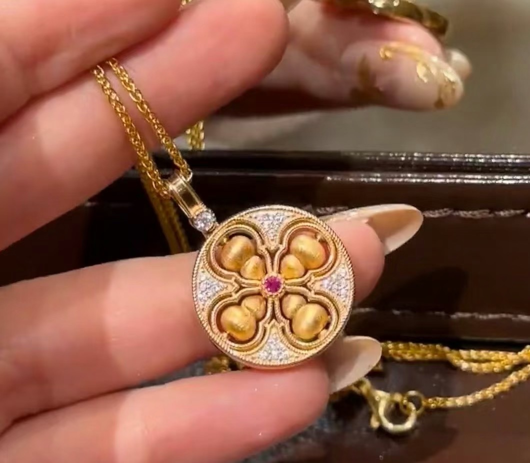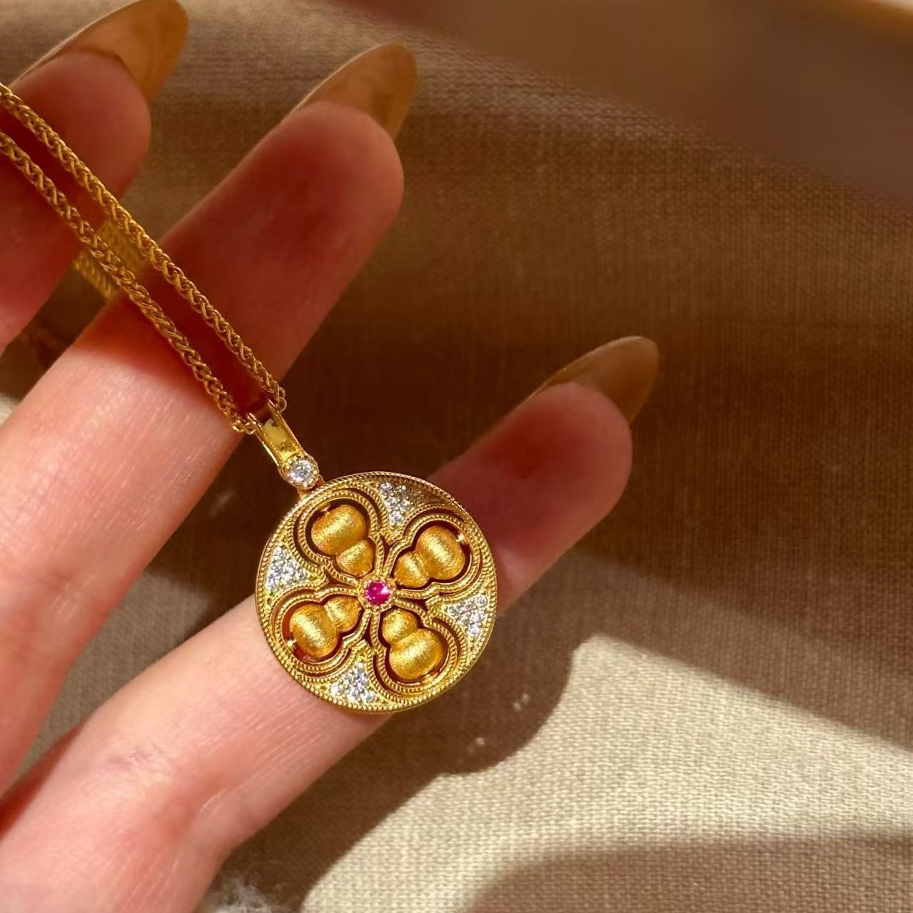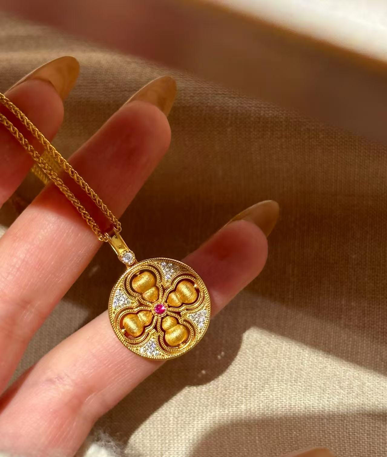 纯银S925新中式国风丝绒拉丝可转动四美葫芦项链精致独特轻奢气质