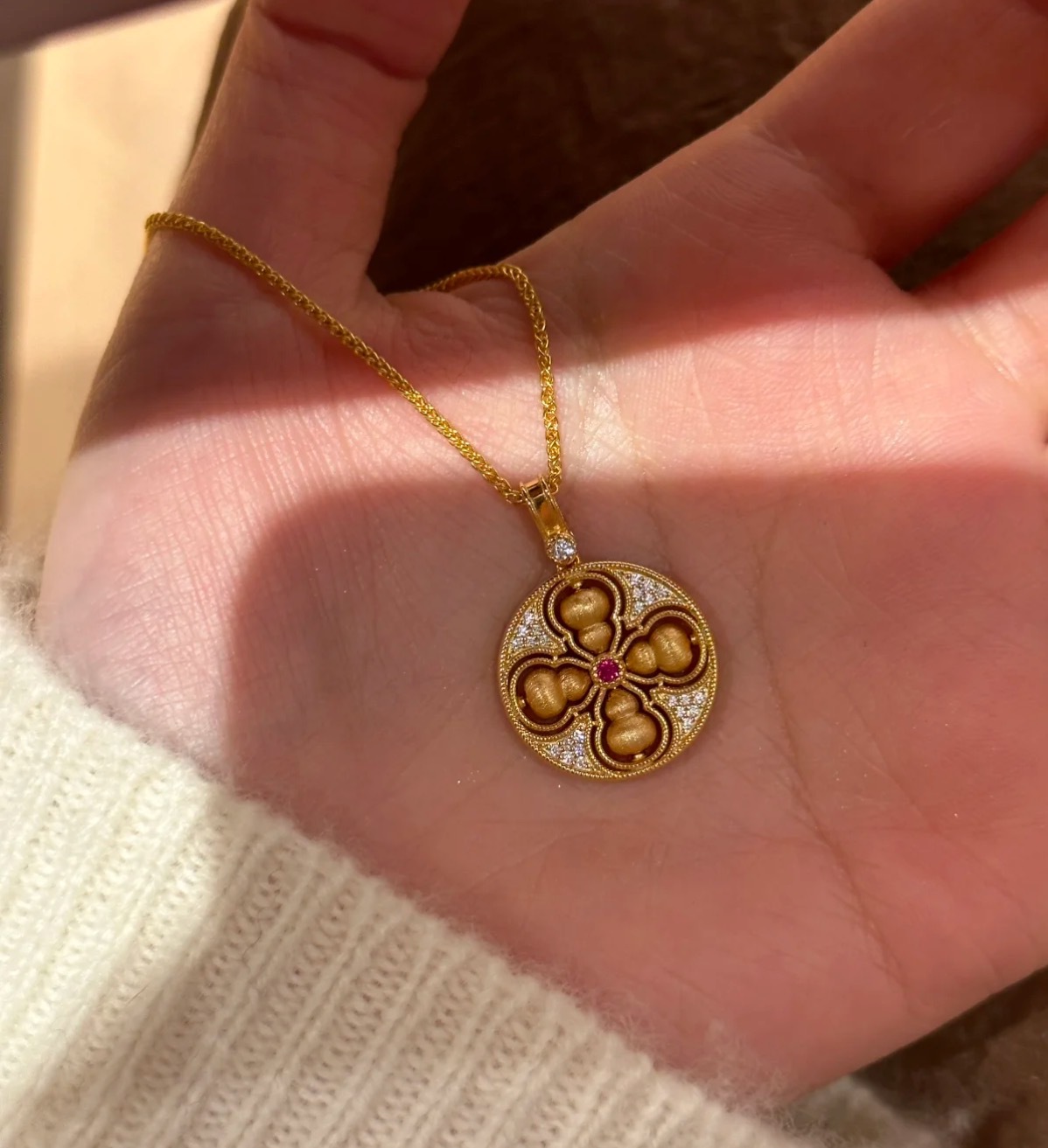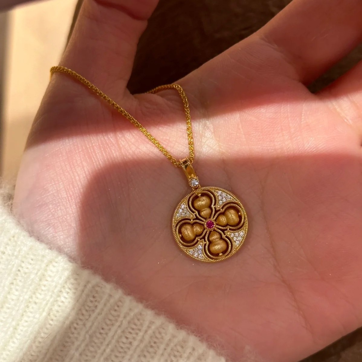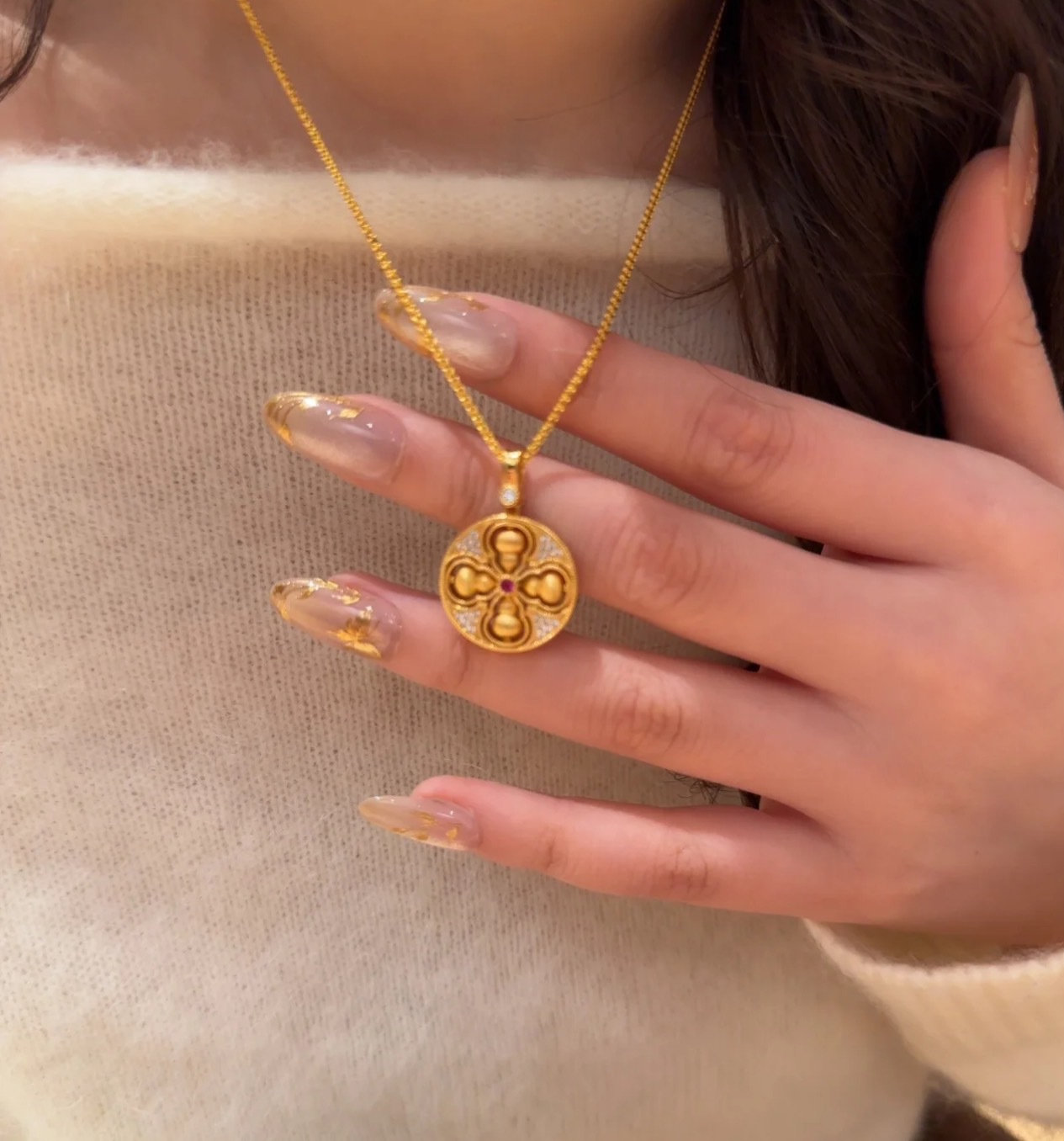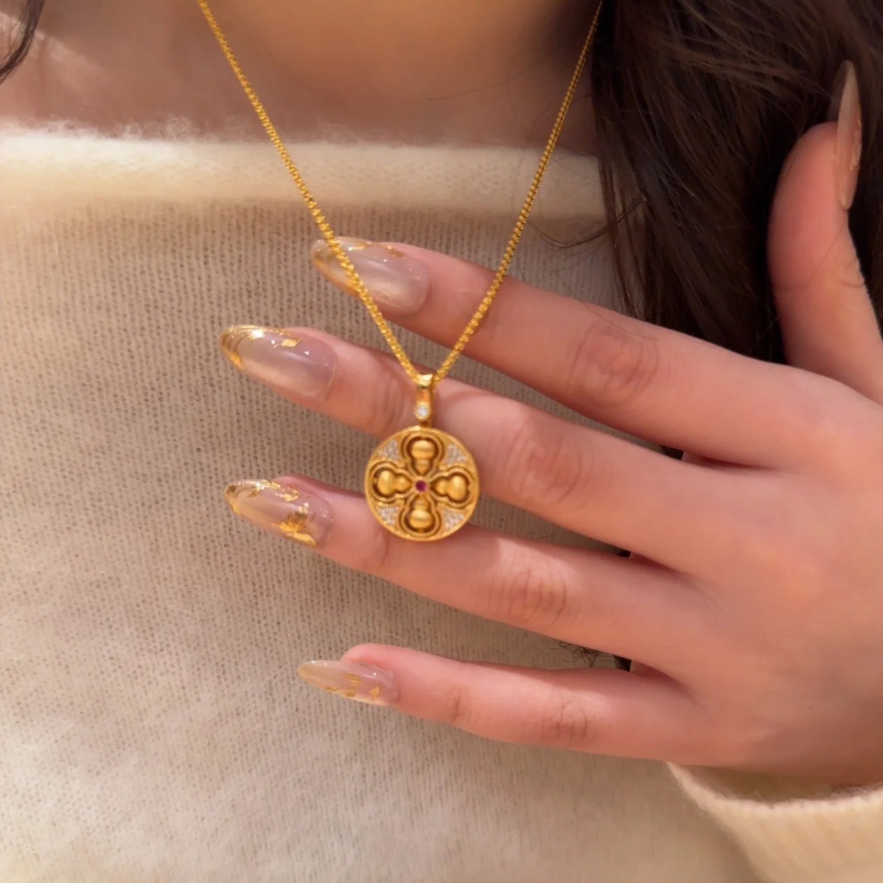 纯银S925新中式国风丝绒拉丝可转动四美葫芦项链精致独特轻奢气质