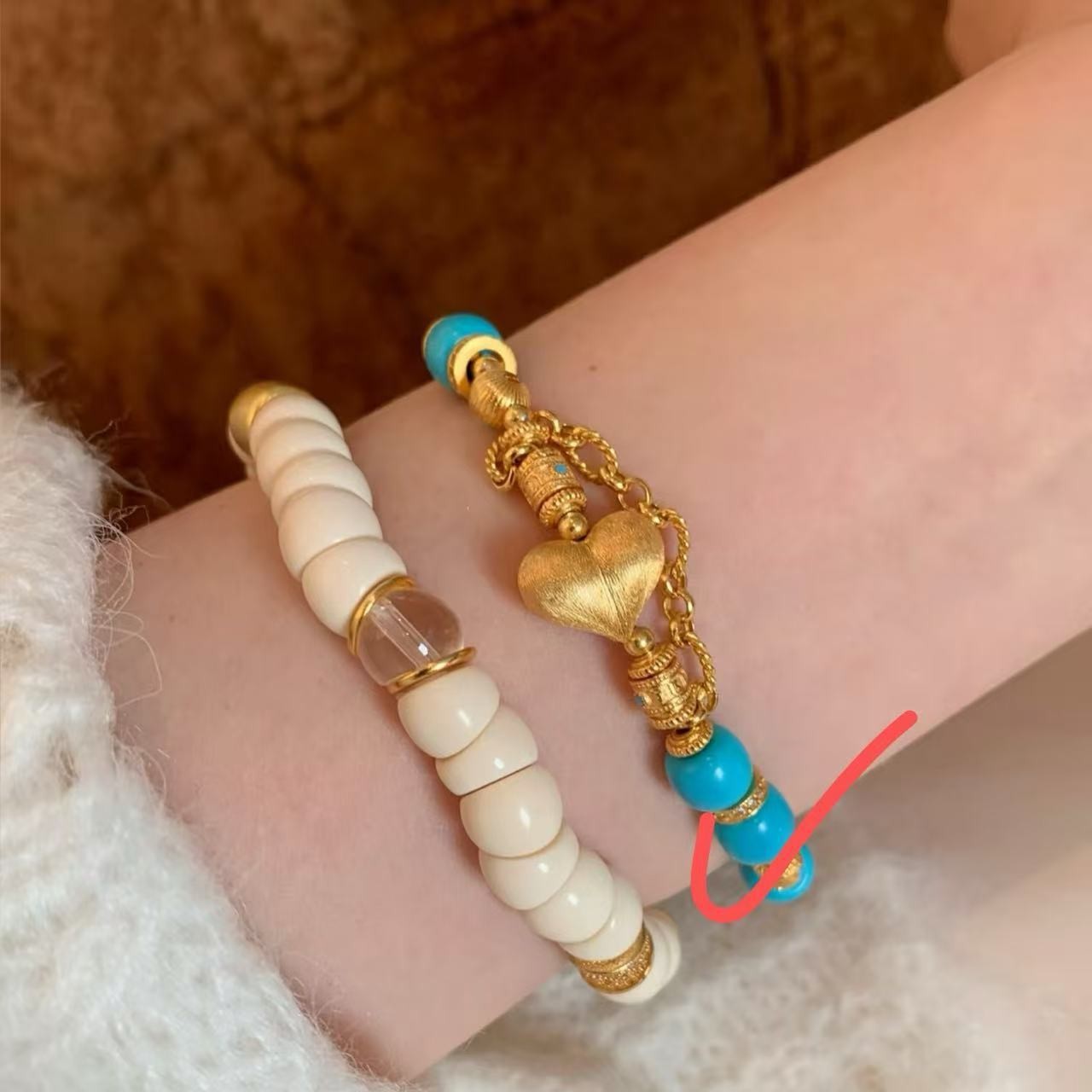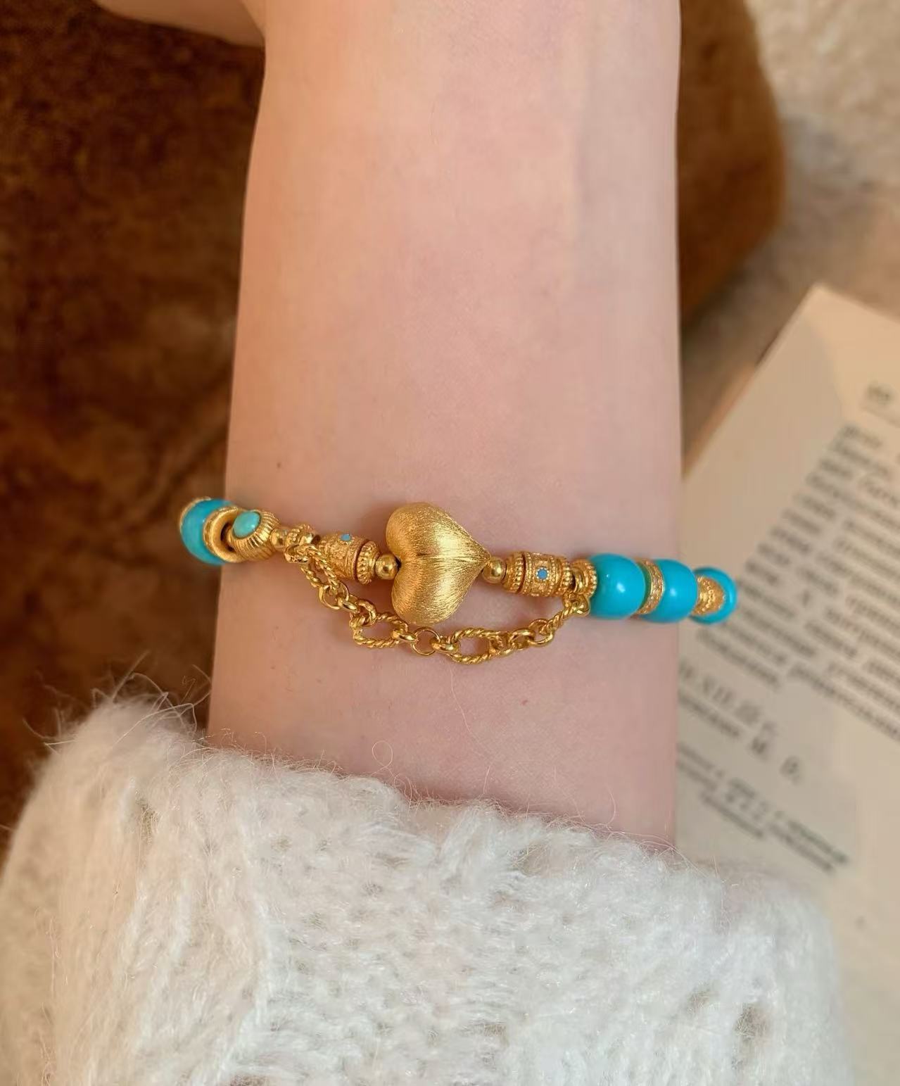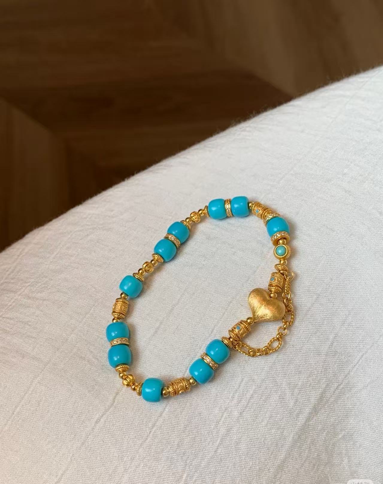 纯银S925拉丝工艺屁桃蓝松石盘缠手链复古奢华贵气轻奢高级感手饰
