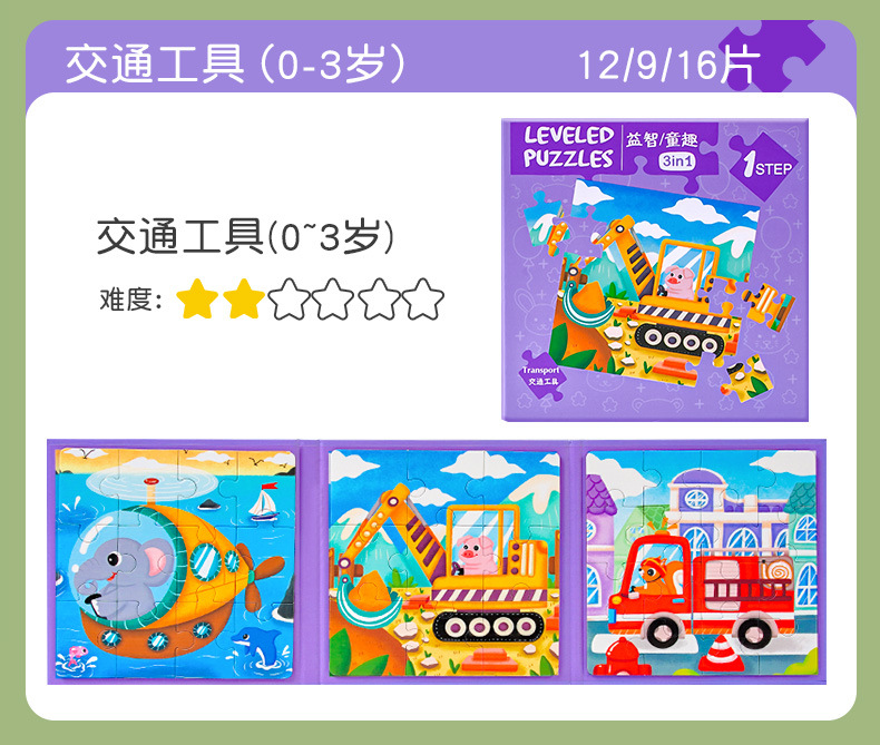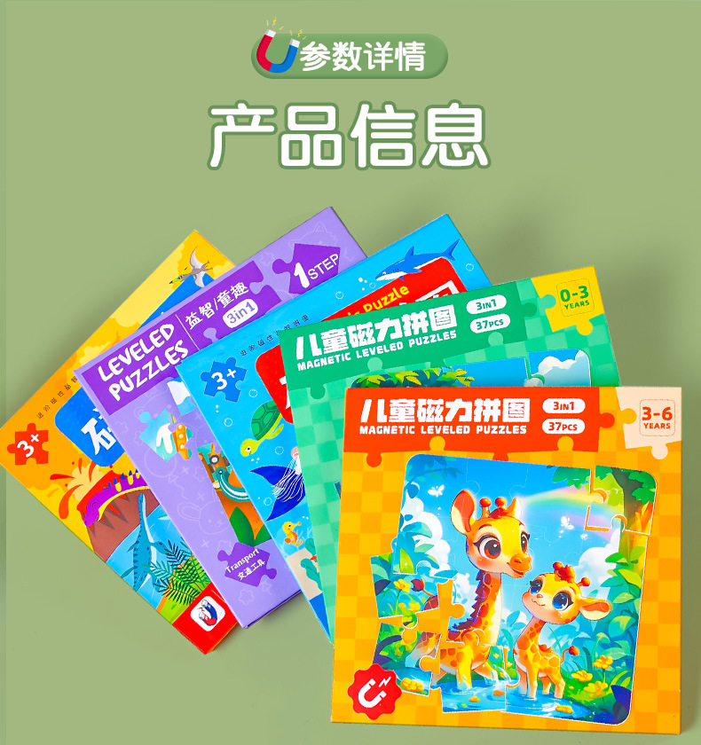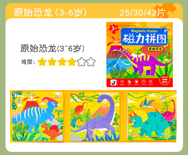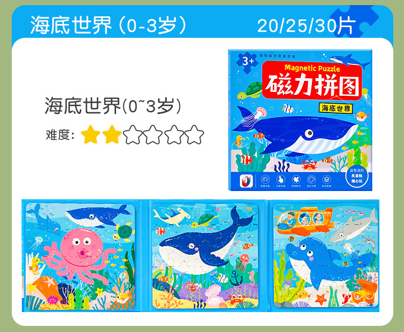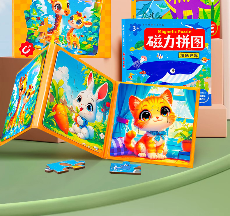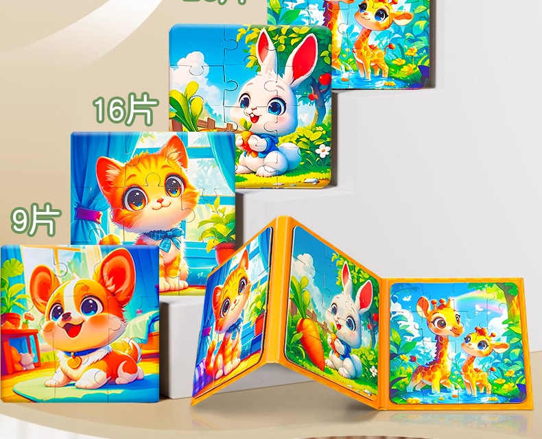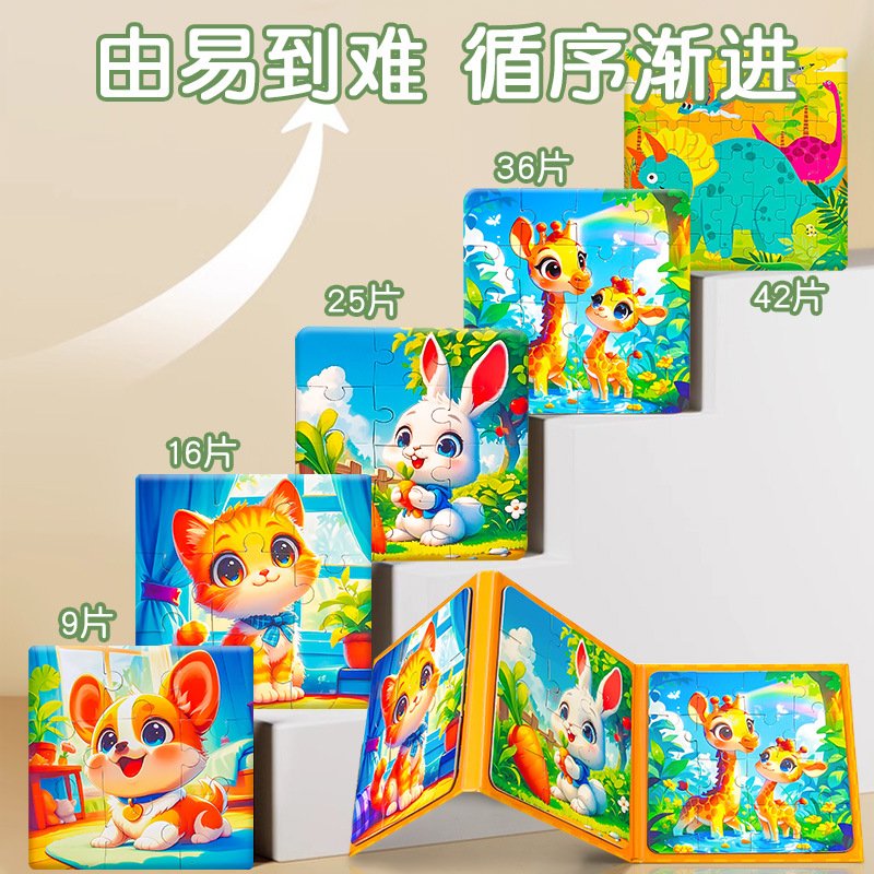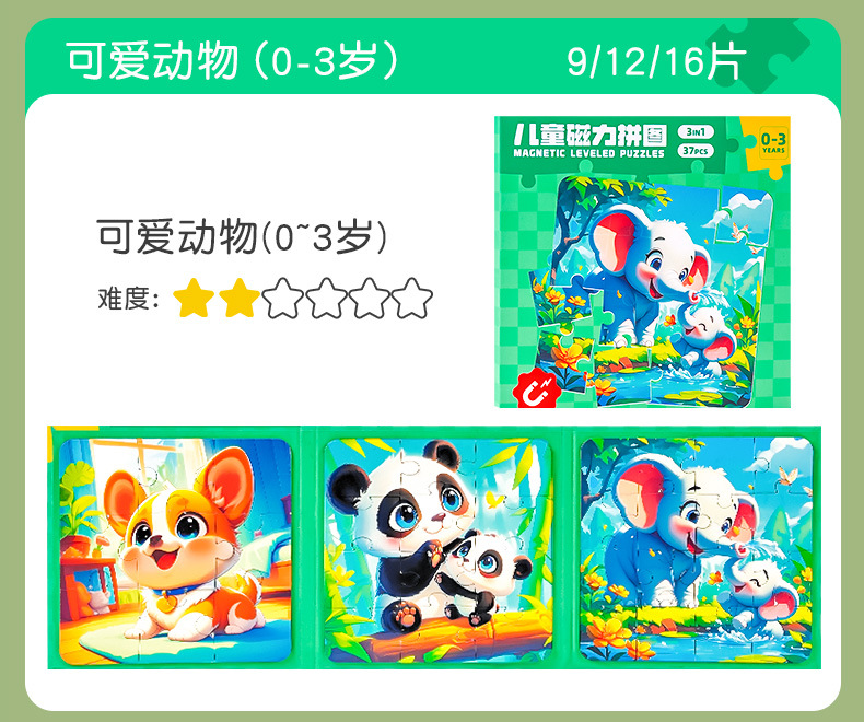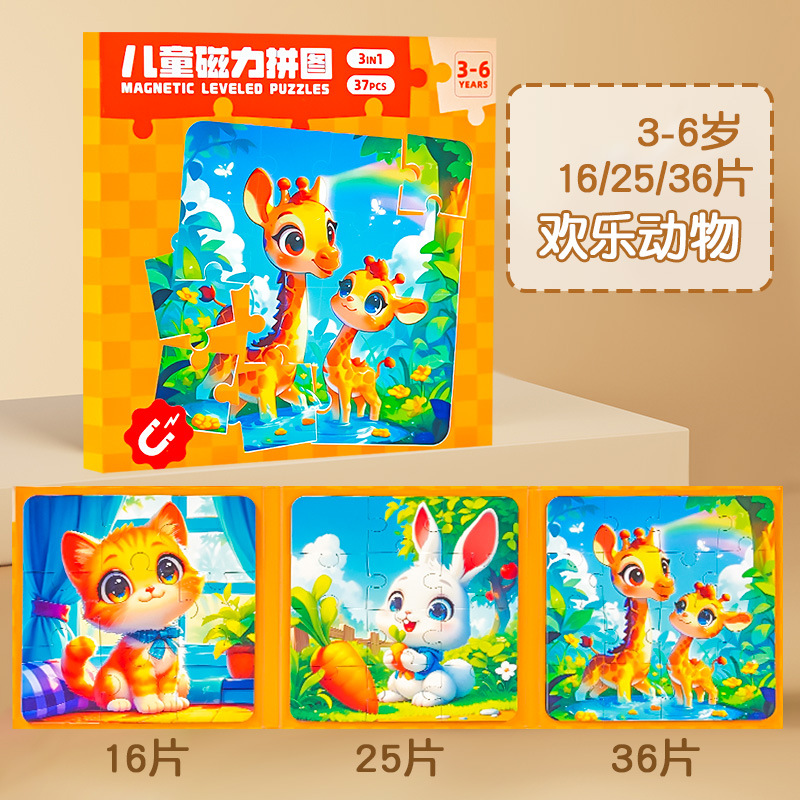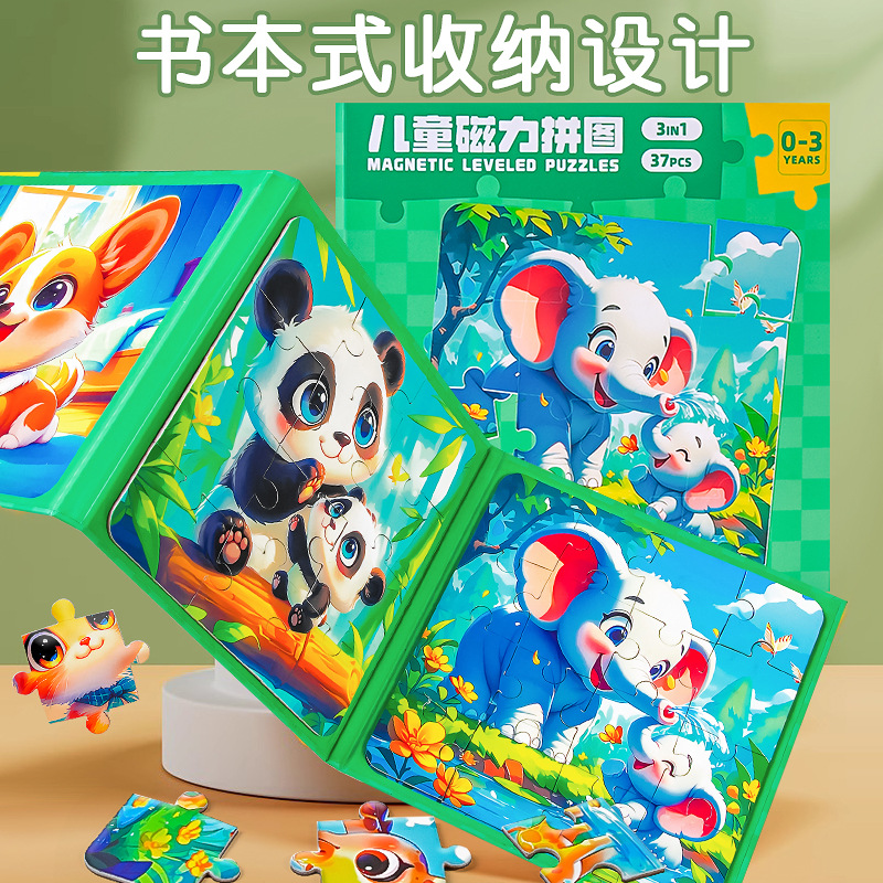 磁性进阶拼图3-6岁三合一动物主题儿童早教幼儿启蒙益智磁力玩具