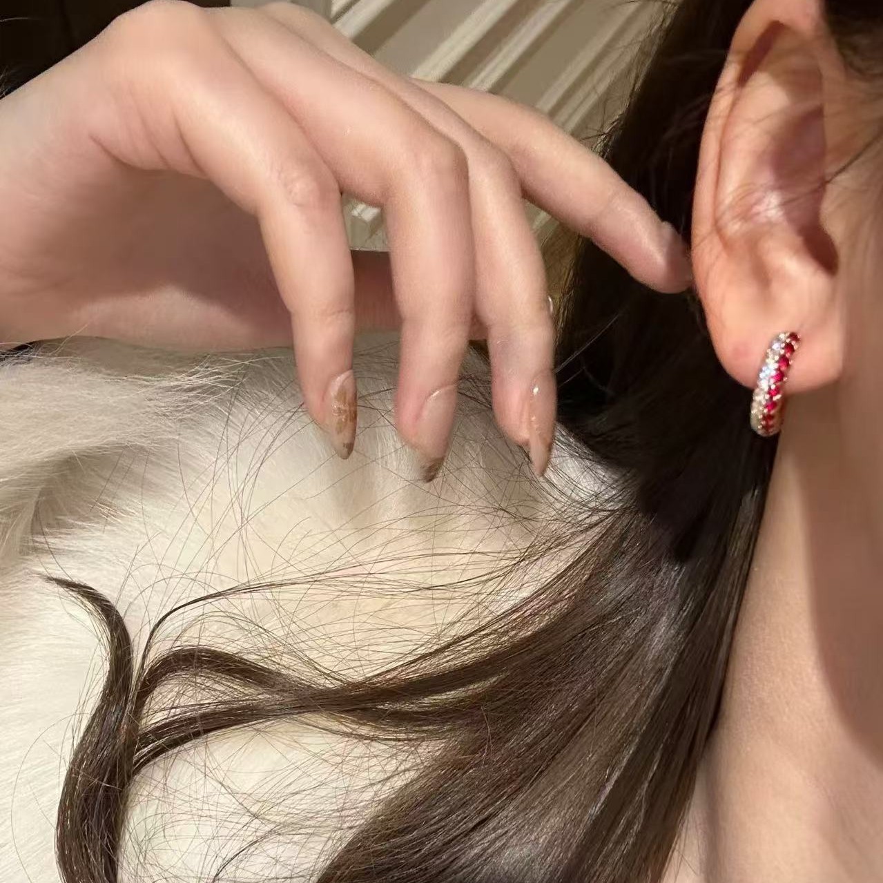 纯银S925新年红满天星耳环轻奢高级感气质千金感高颜值显白耳饰