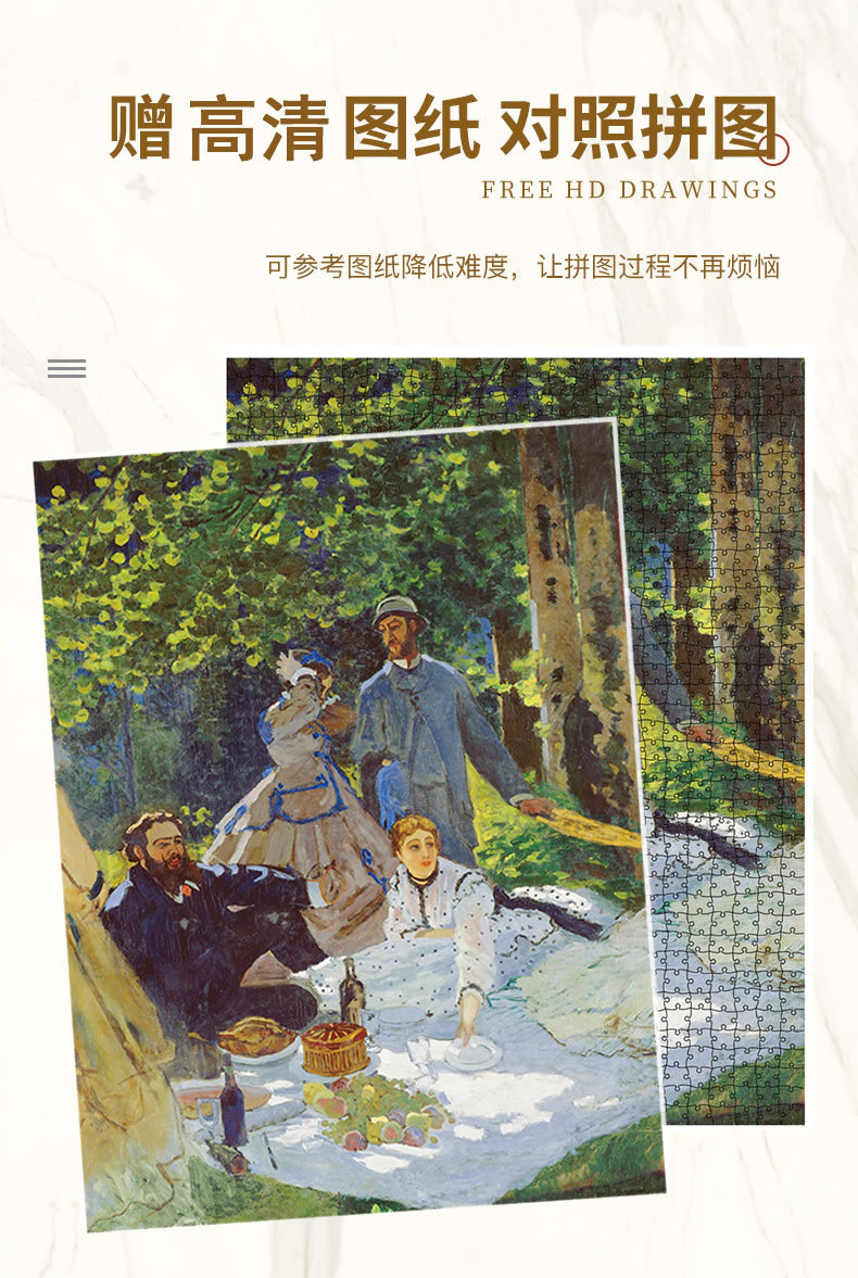 爆款MiniWhale莫奈名画拼图草地上的午餐1000片拼图玩具成年批发