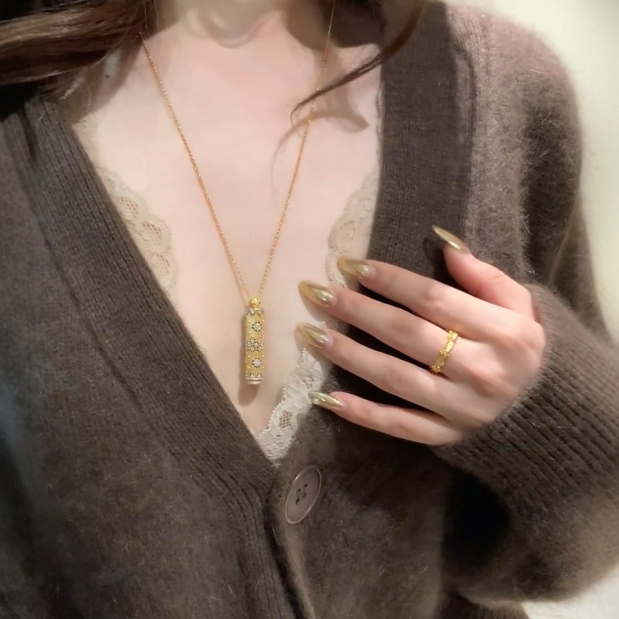 意大利轻奢风拉丝金筒吊坠魔法棒权杖项链女小众轻奢高级感锁骨链
