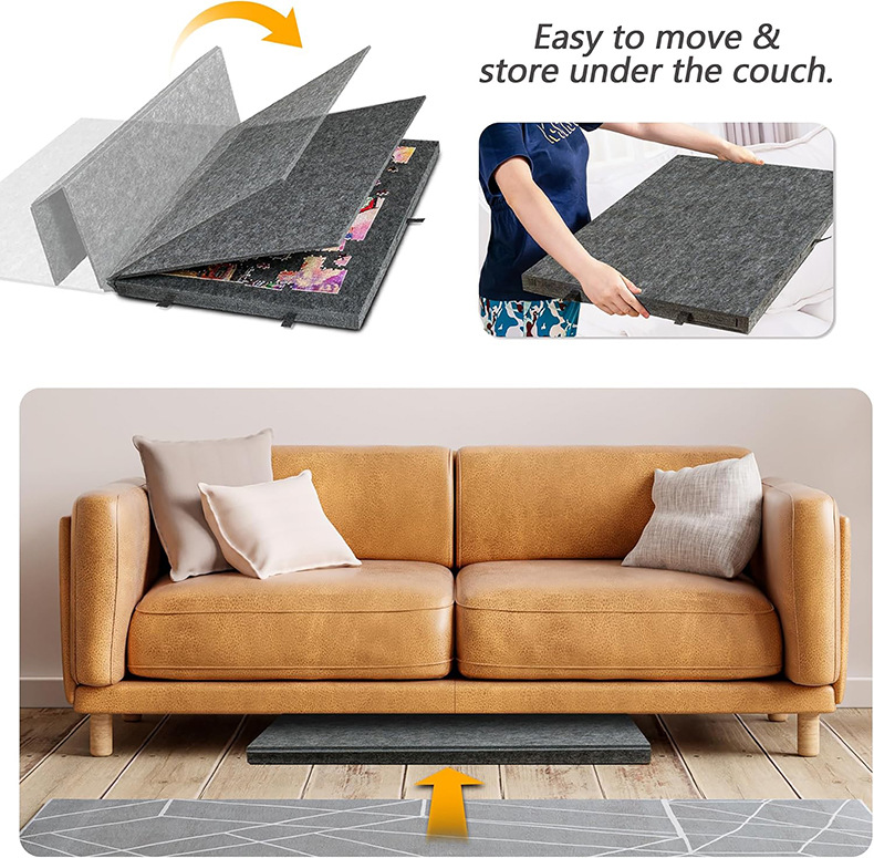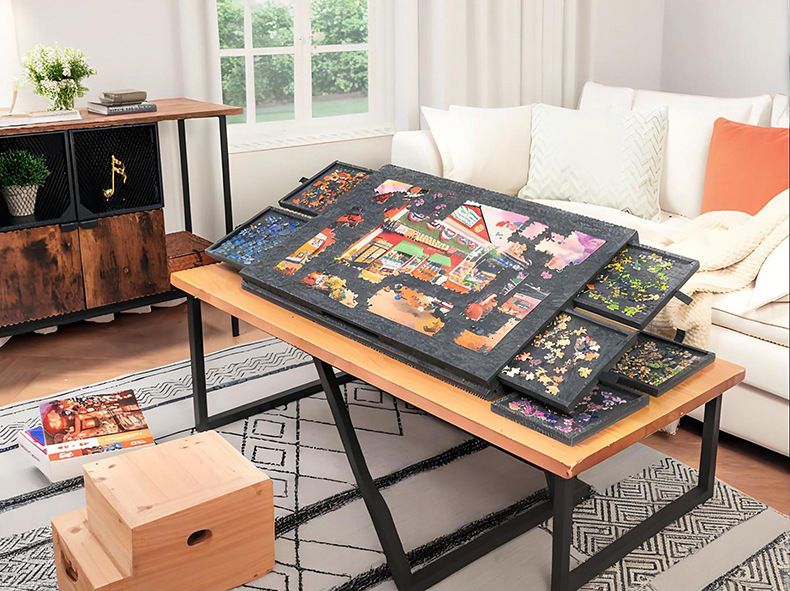 跨境拼图桌板折叠带支架盖子6抽屉便携式儿童立体拼图垫分类毛毡