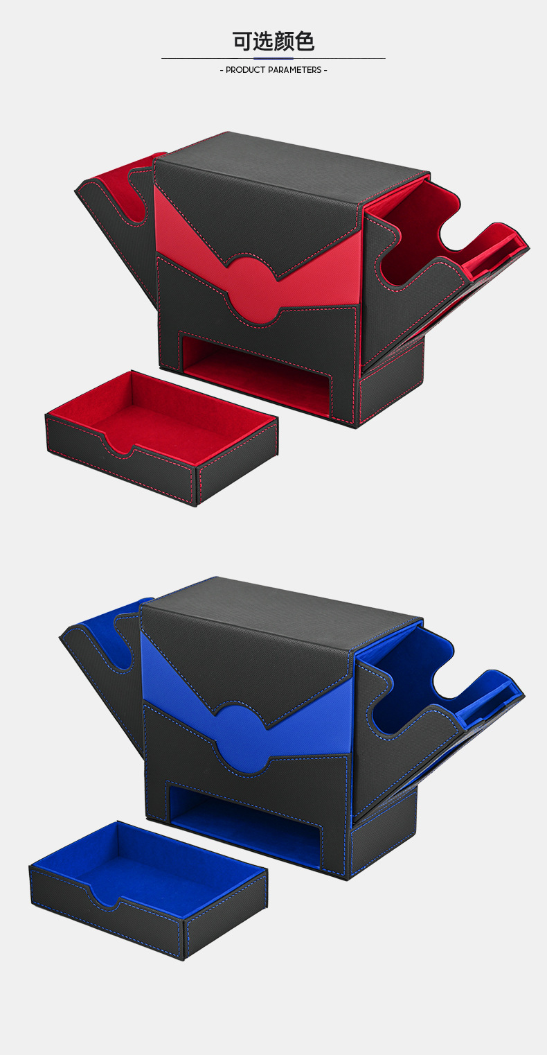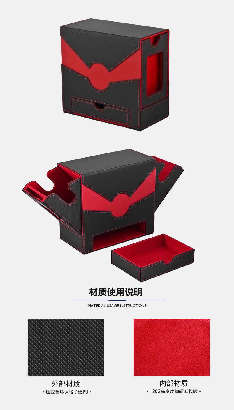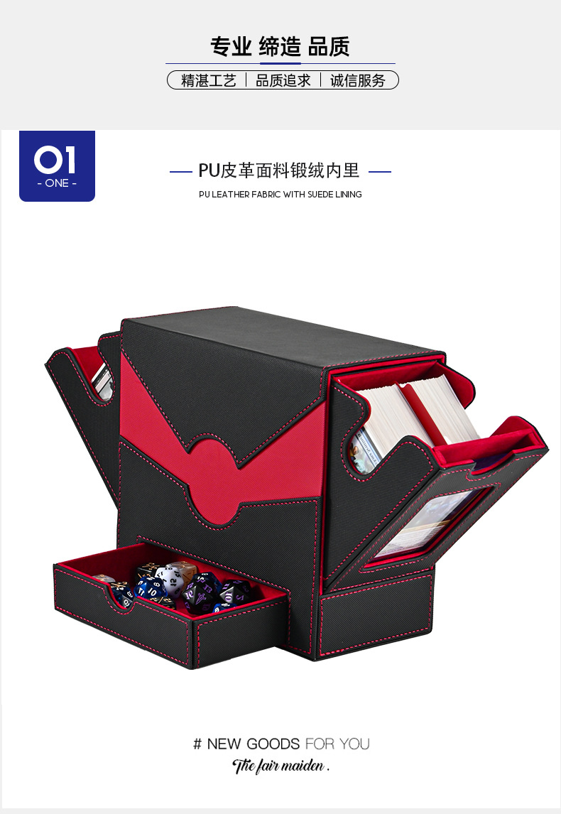 双窗斜开卡盒带骰子盒PU皮质桌游卡盒游戏万智牌switch卡牌收纳盒