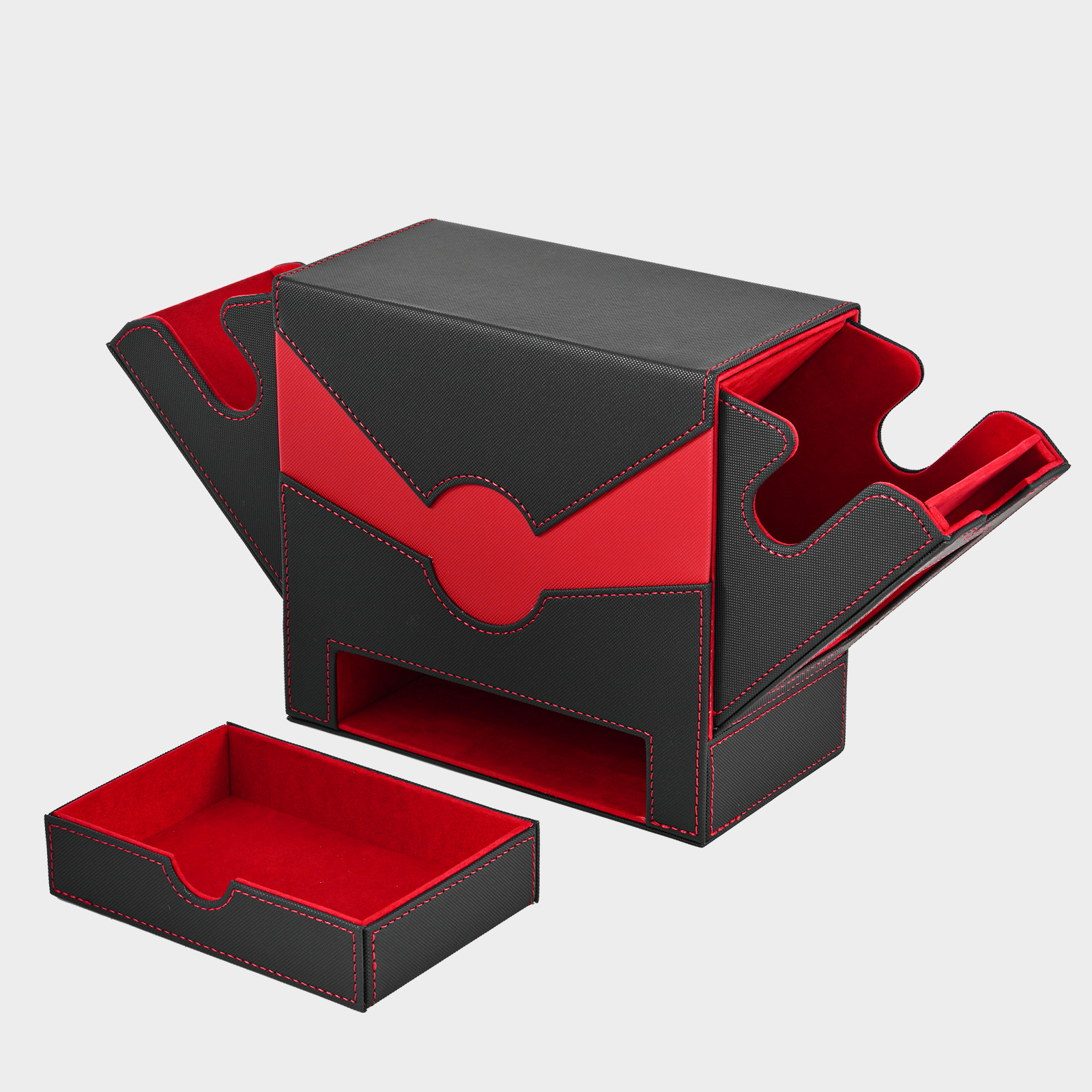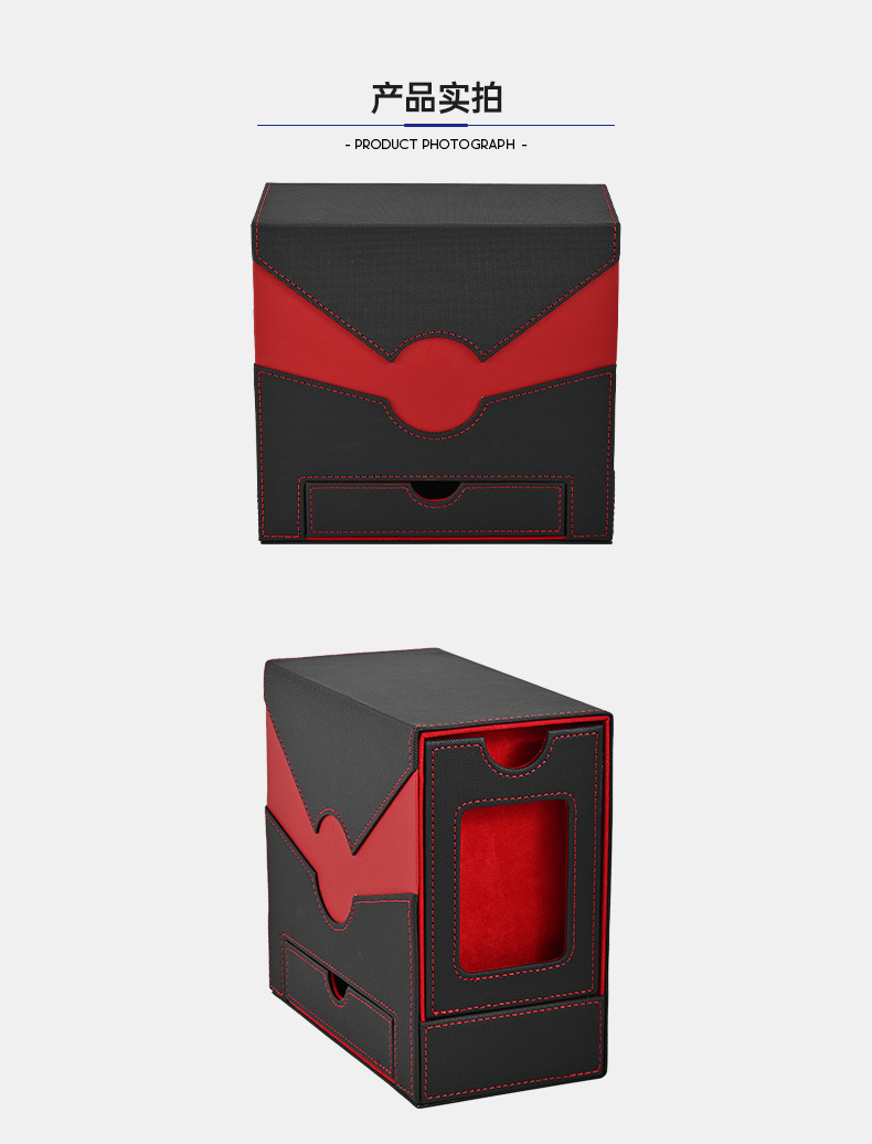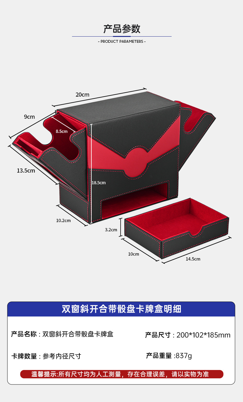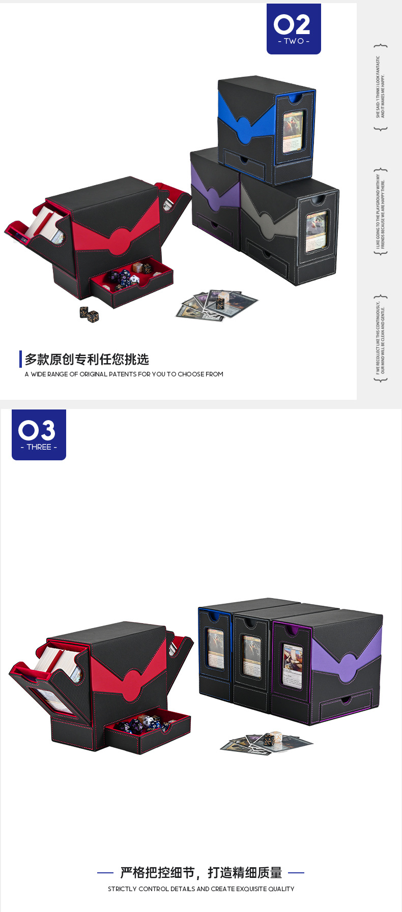 双窗斜开卡盒带骰子盒PU皮质桌游卡盒游戏万智牌switch卡牌收纳盒