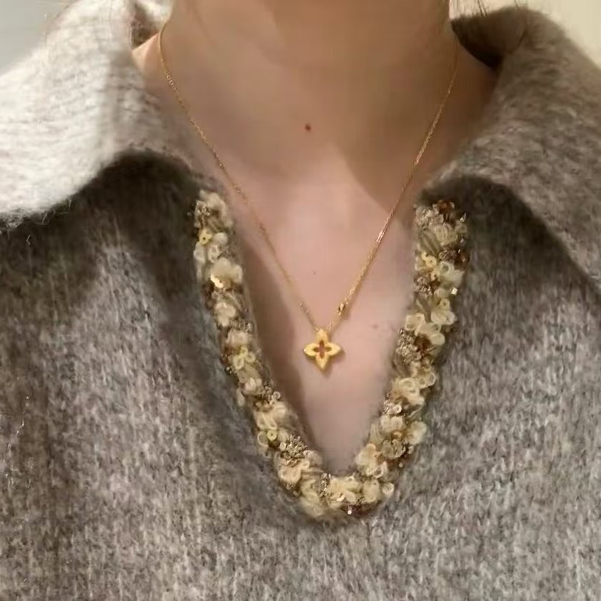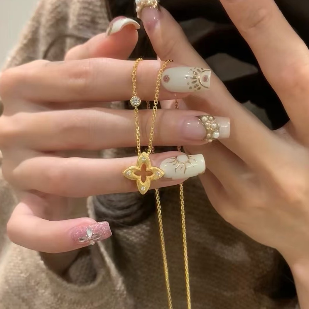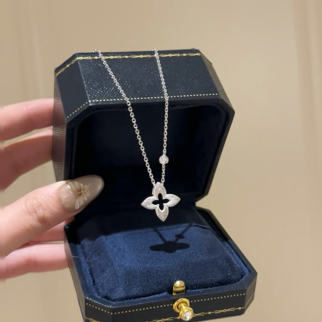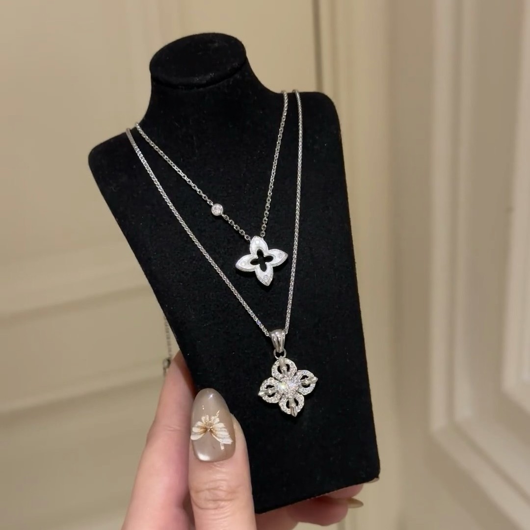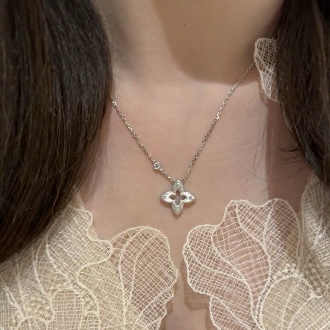 纯银s925芒星幸运四叶草绸缎拉丝项链推拉可调节长短项链