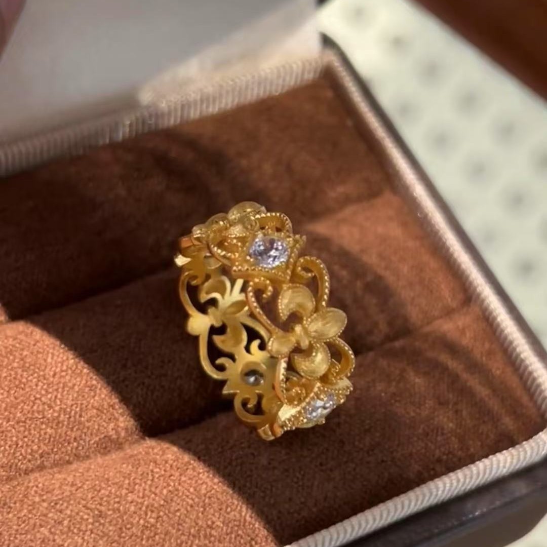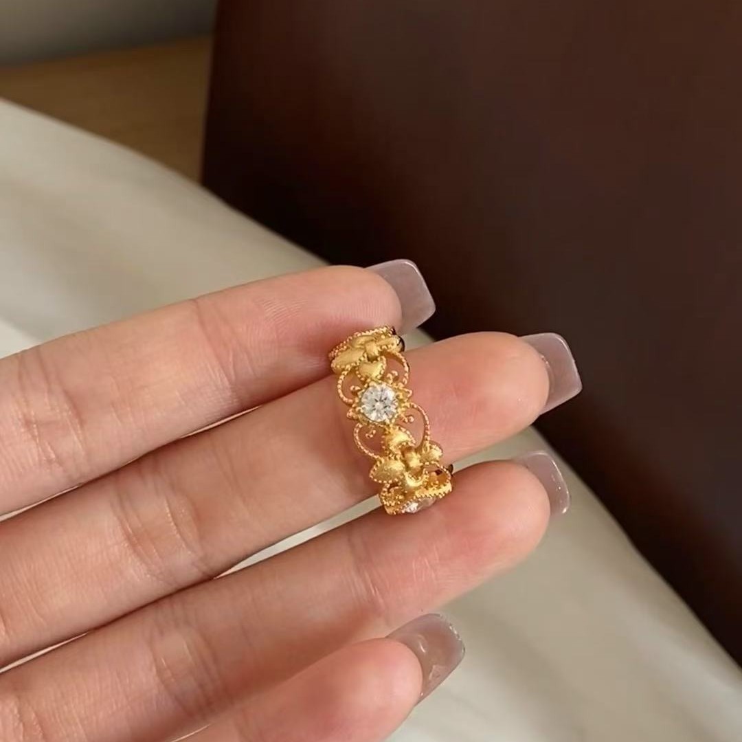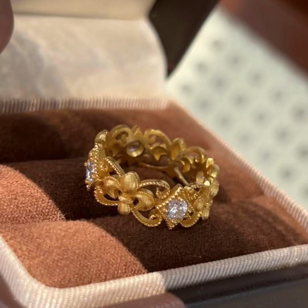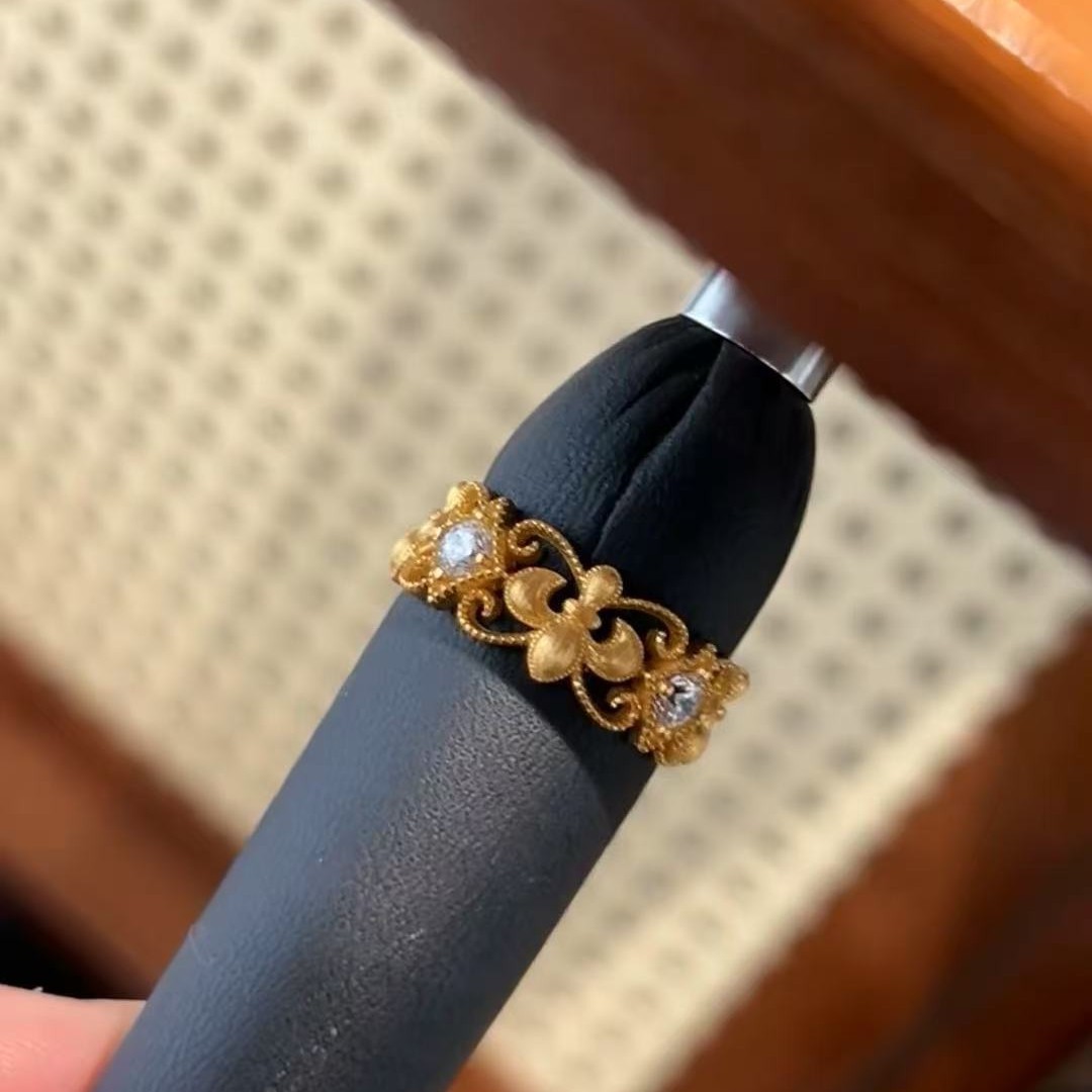 意大利中古拉丝轻奢珠宝925纯银拉丝工艺鸢尾花拉丝戒指