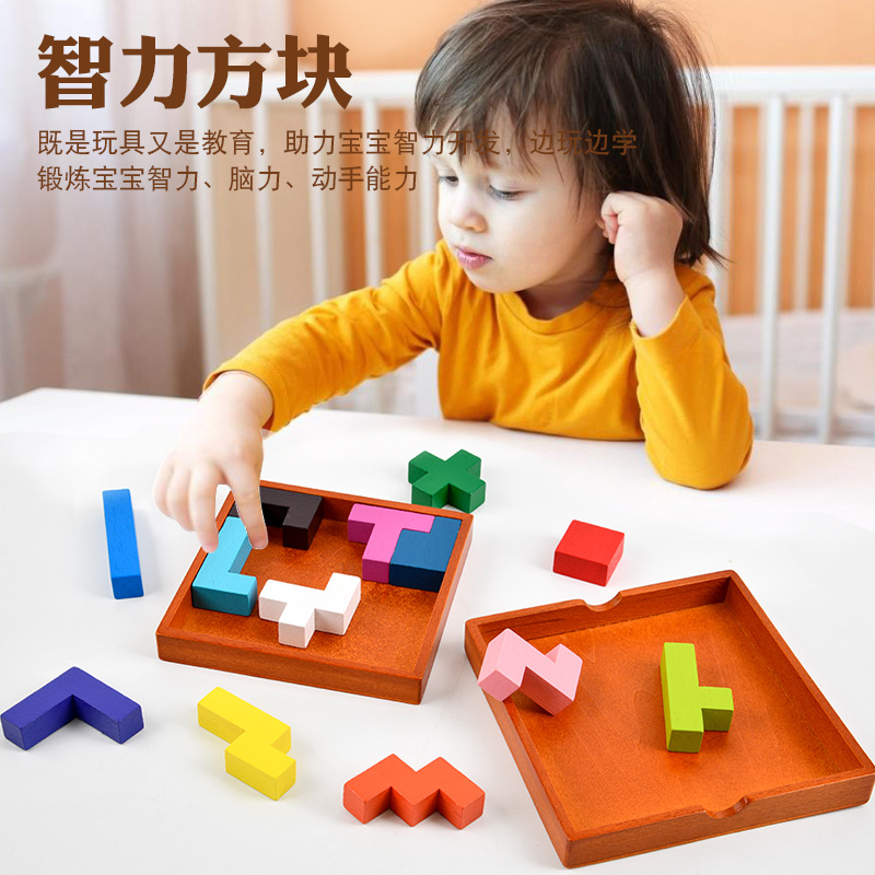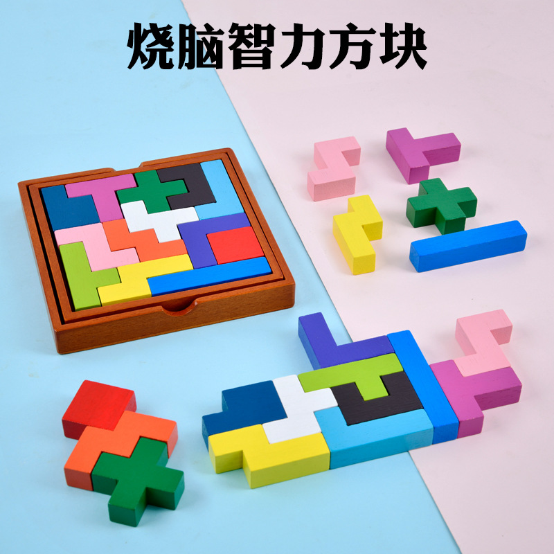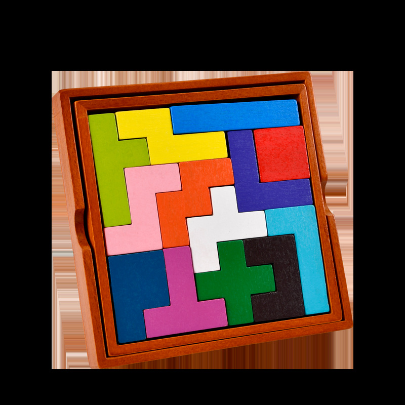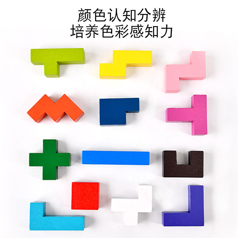 木制玩具俄罗斯积木热销儿童益智伤脑筋彩色13块榉木拼图
