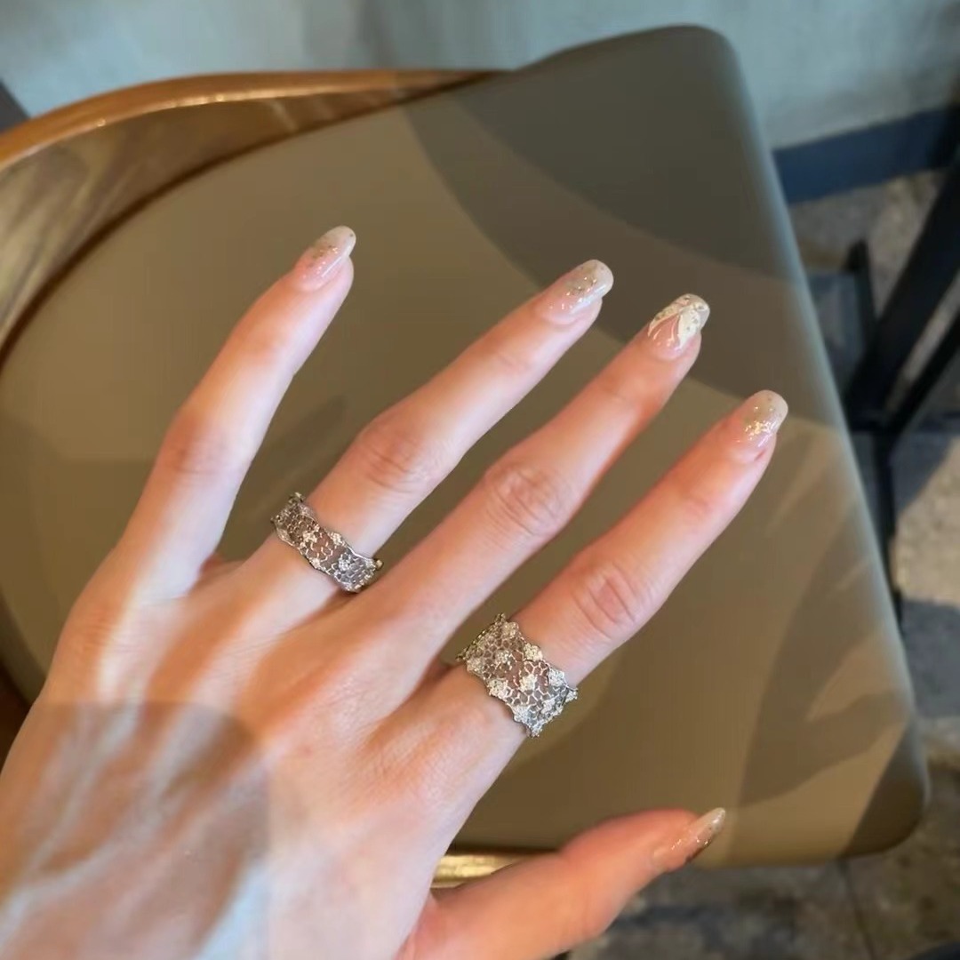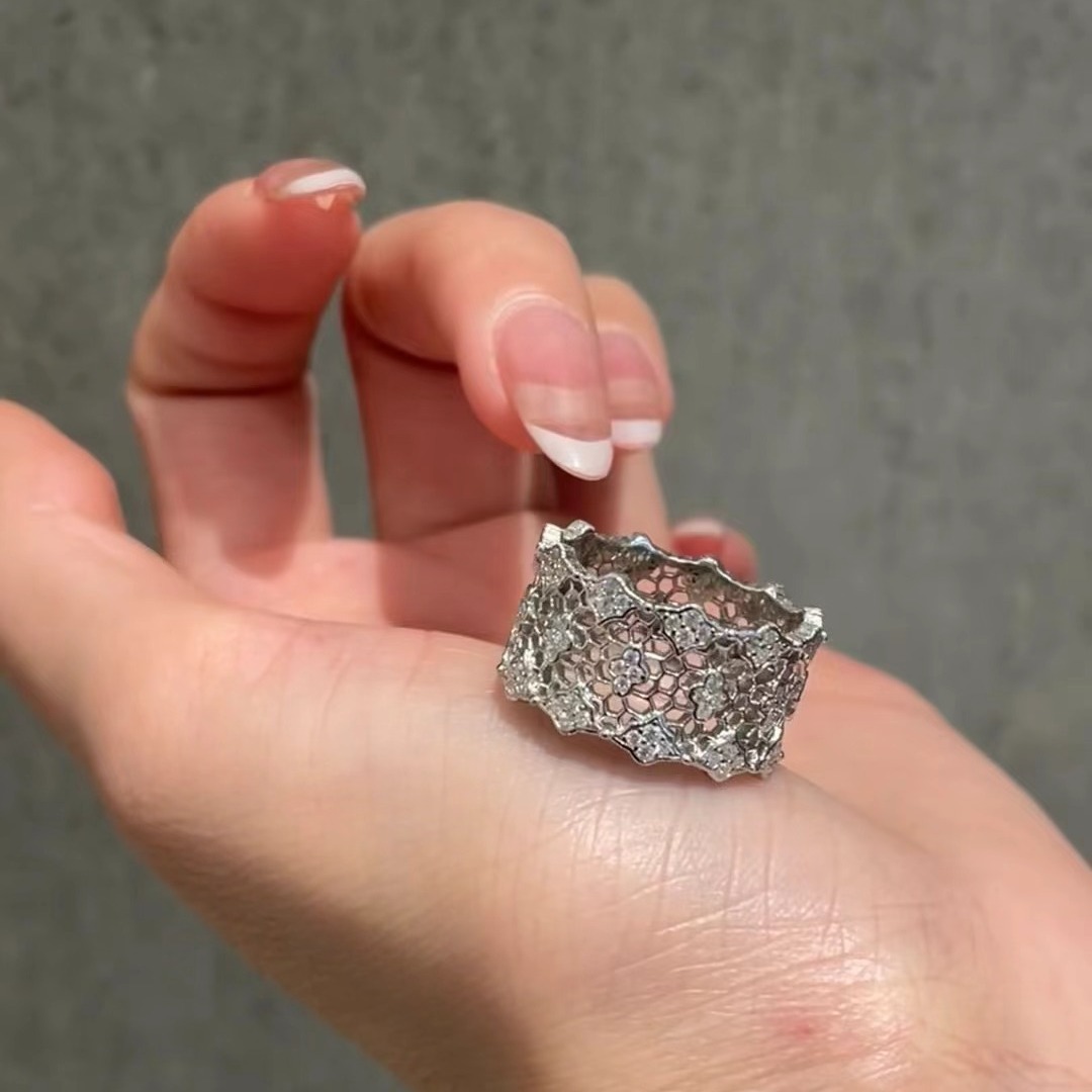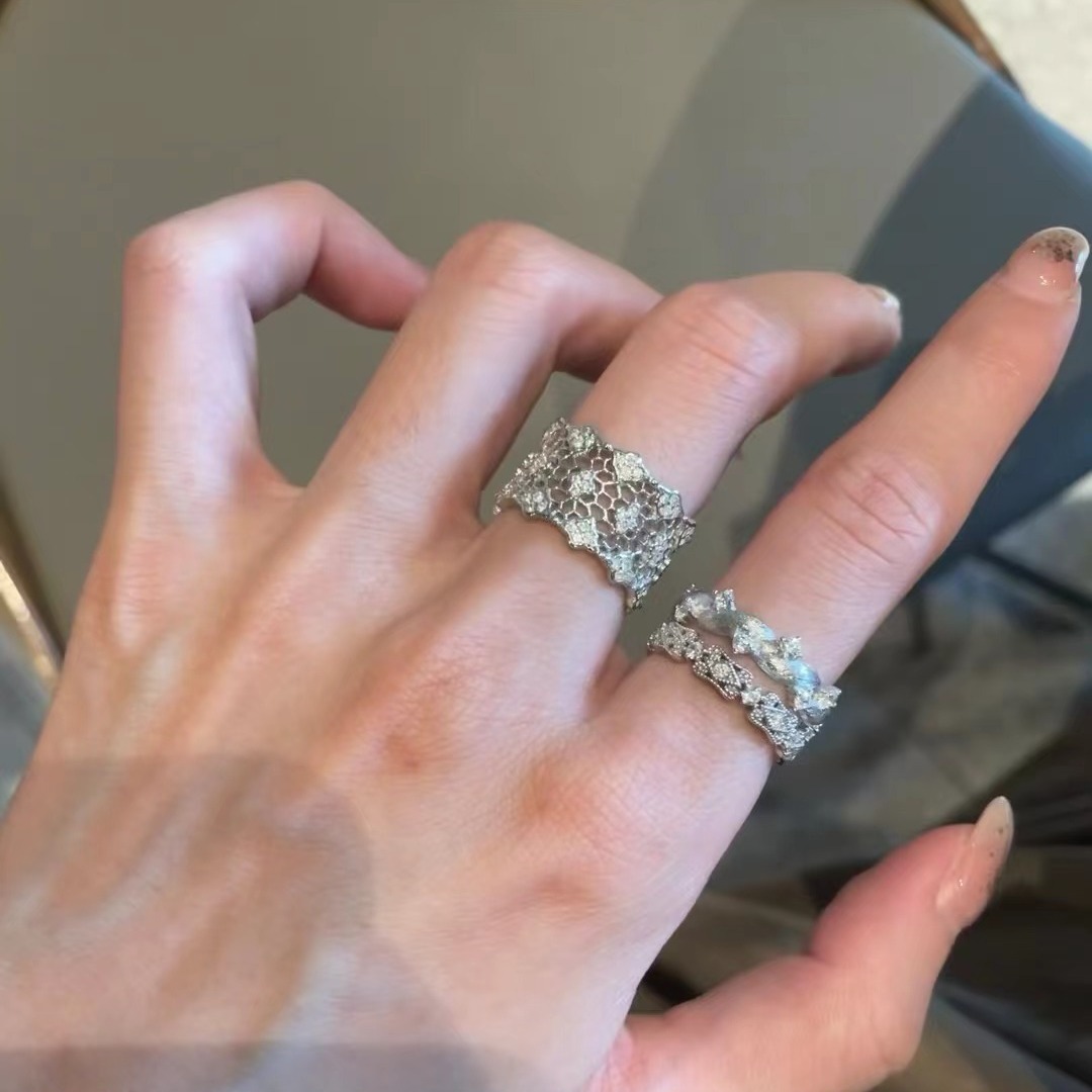 意大利工艺中古轻奢高级感高碳钻百搭蕾丝戒指纯银S925植物系