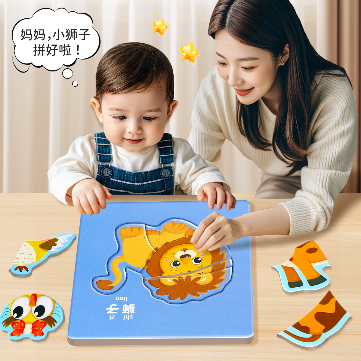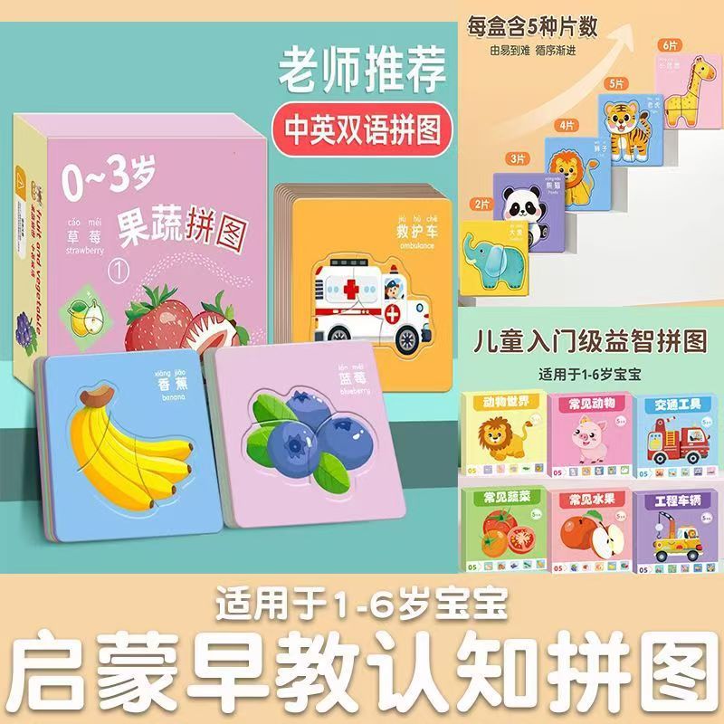 儿童益智拼图一岁半到岁-6宝宝幼儿动物蒙氏早教智力开发玩具