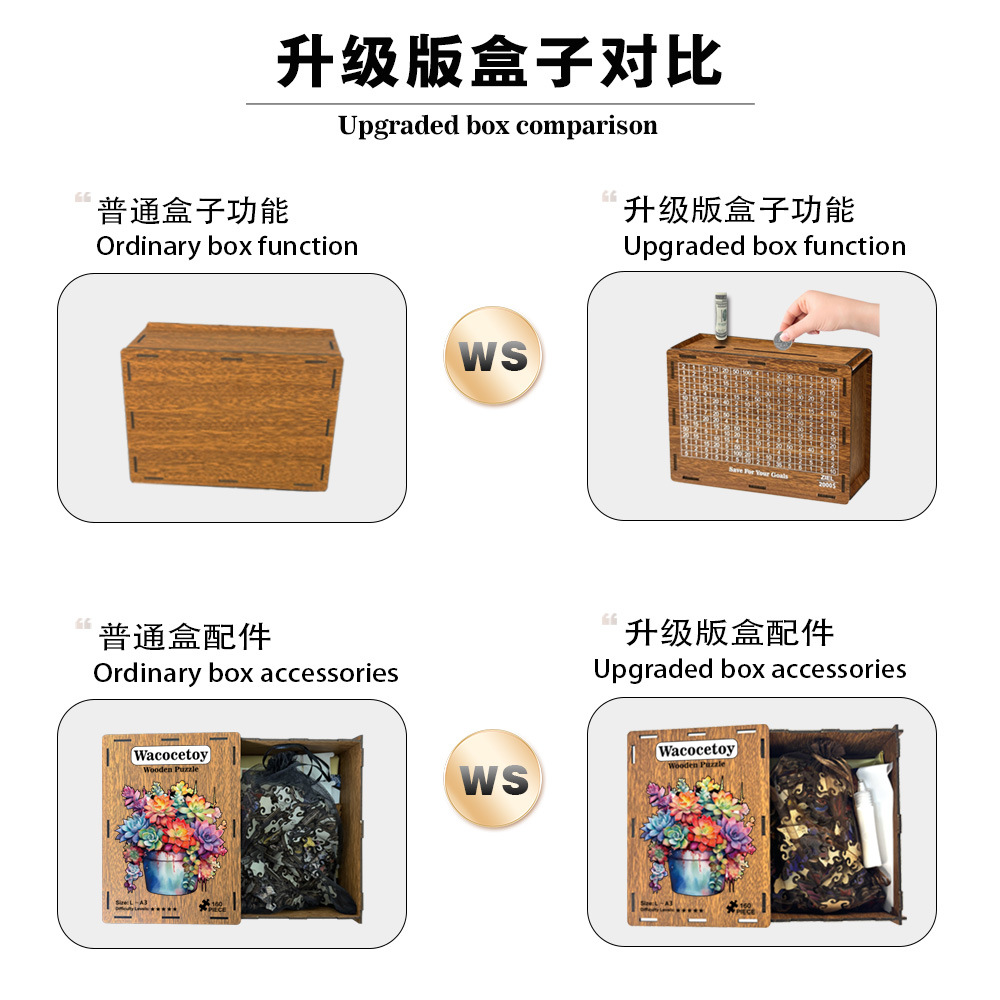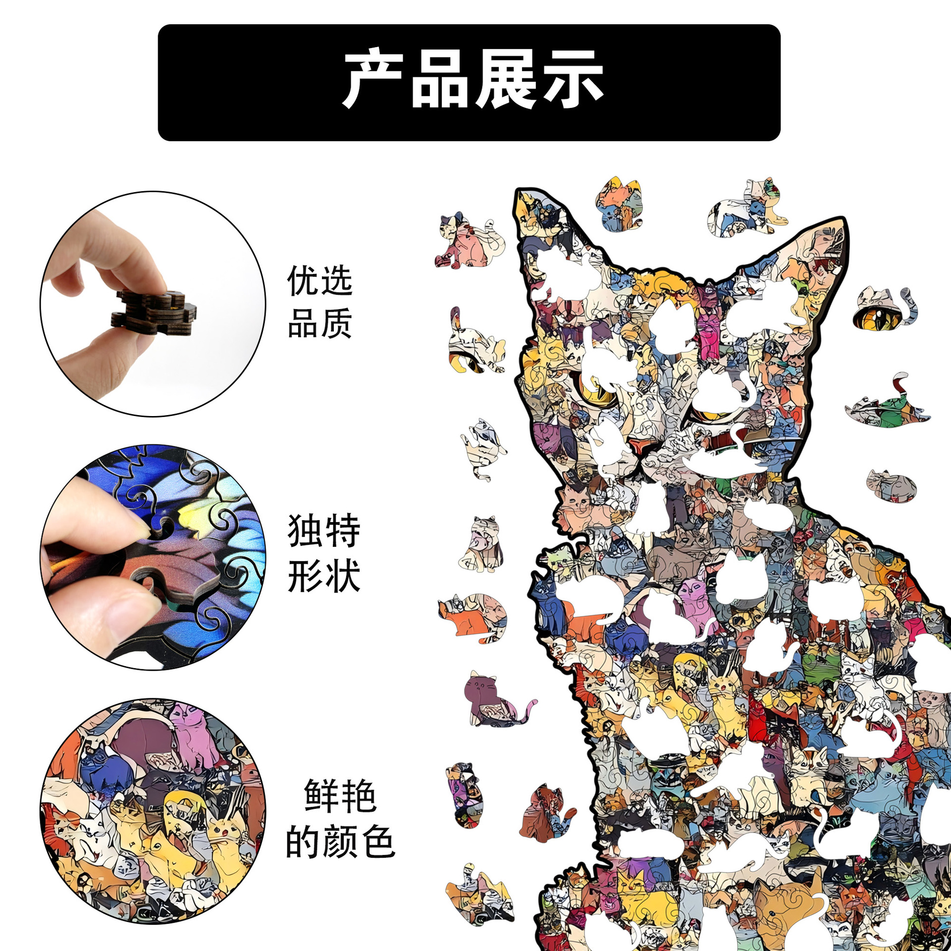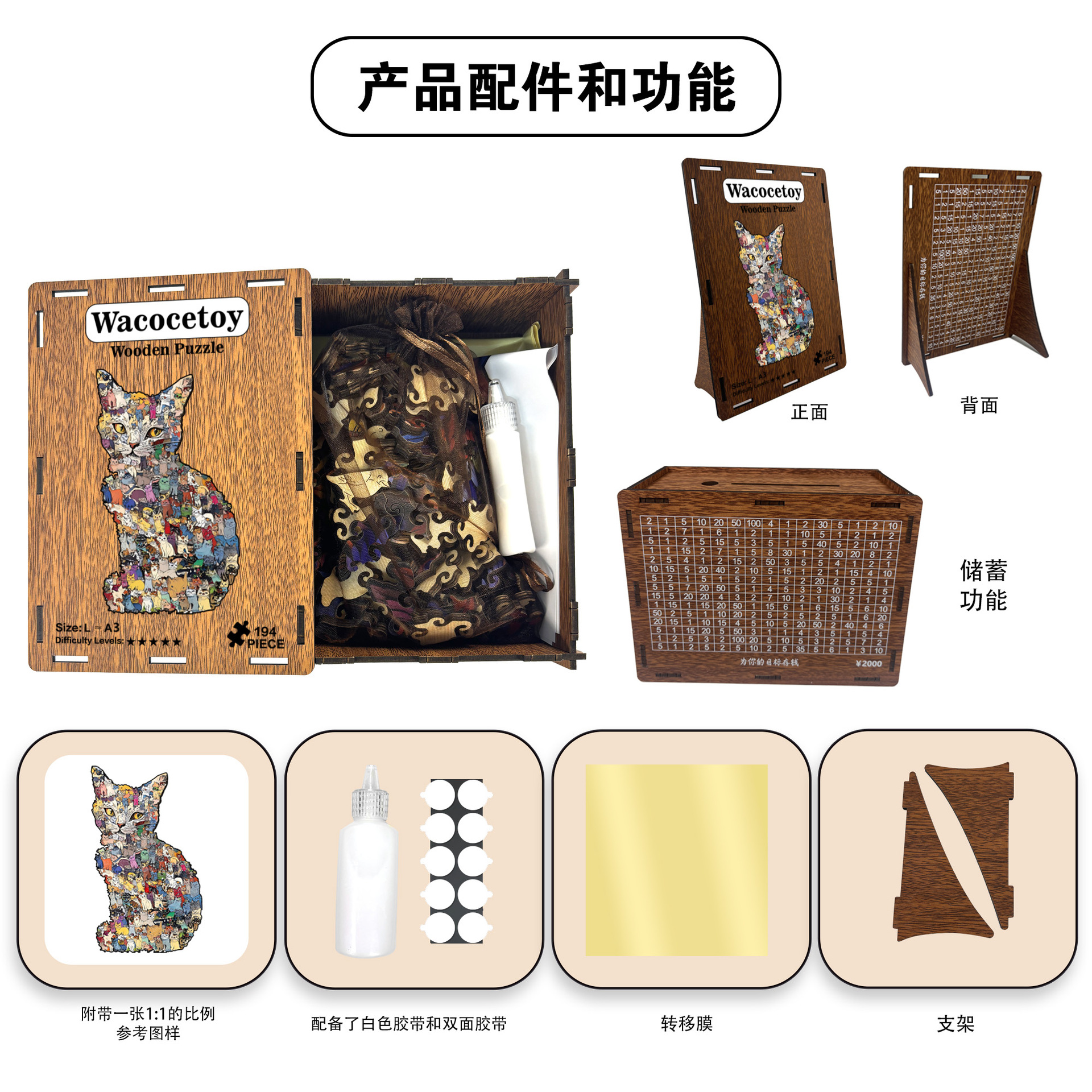 Wacocetoy跨境爆款方块猫拼图玩具异形拼图存钱罐木质拼装玩具