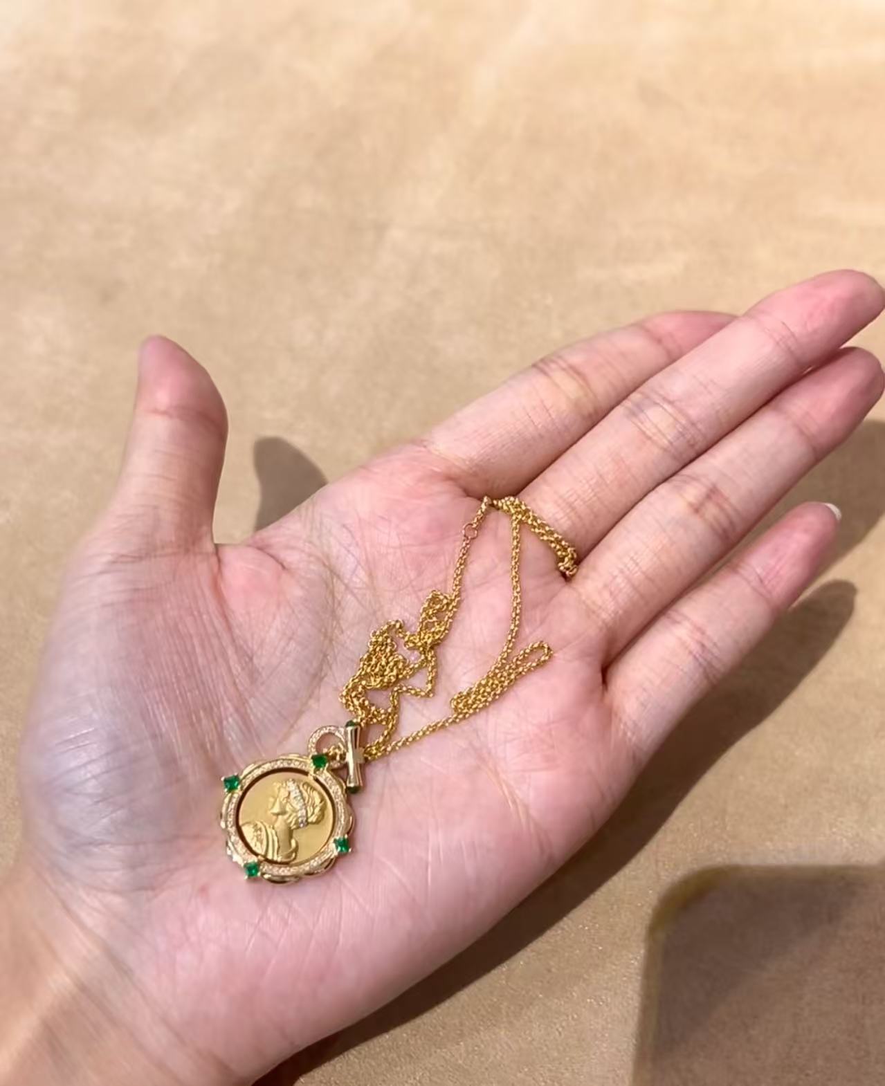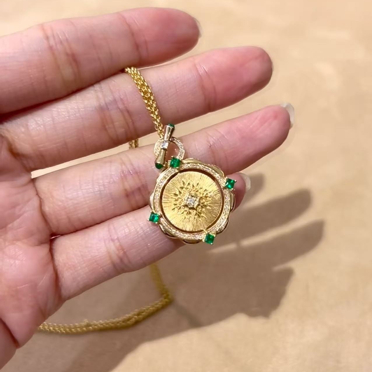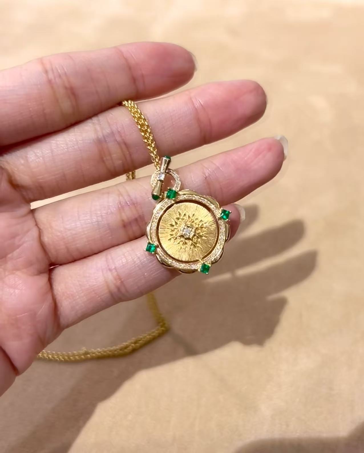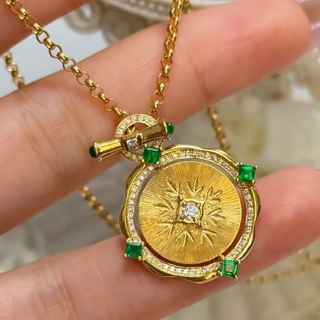 纯银S925拉丝工艺祖母绿女王双面可转动项链精致独特气质锁骨链