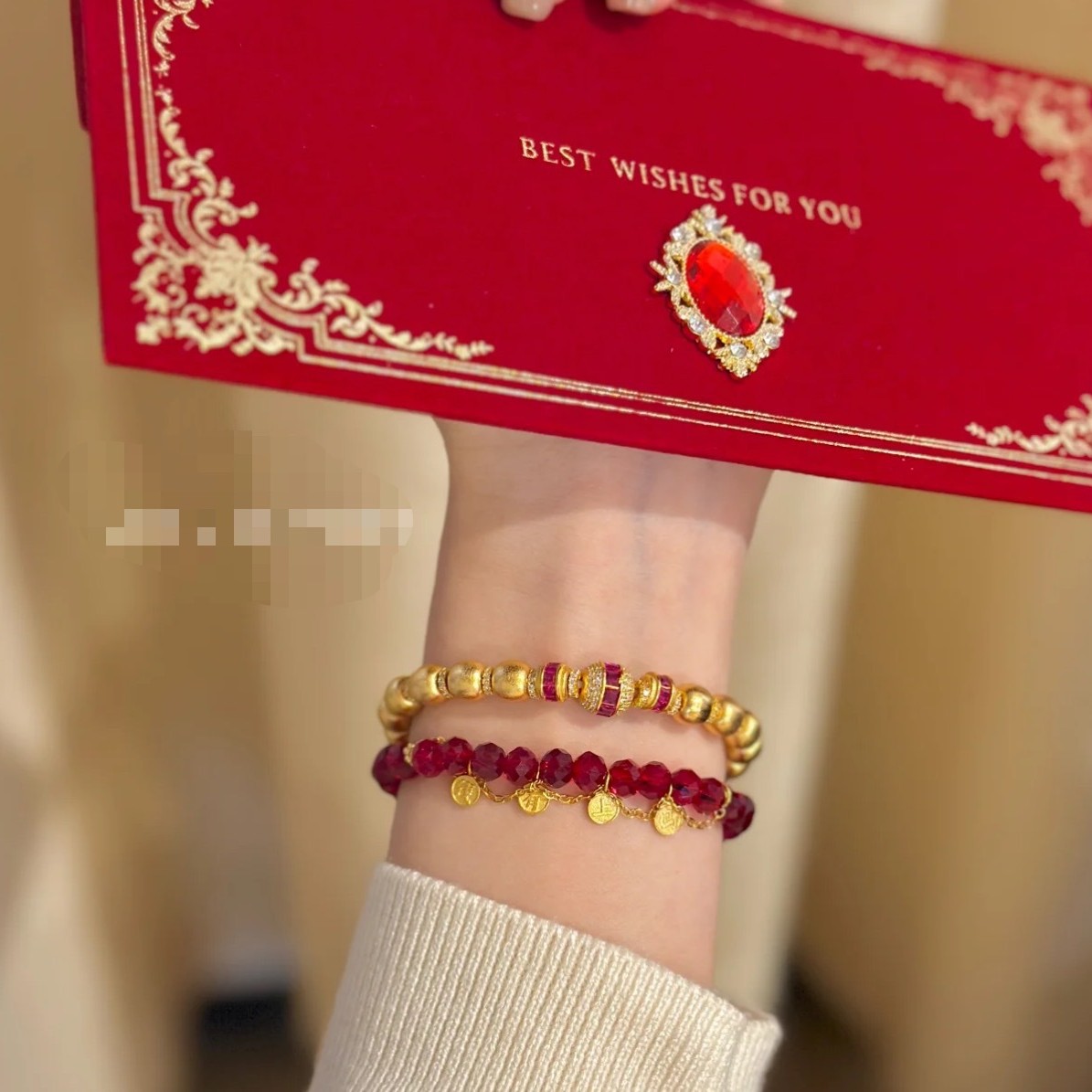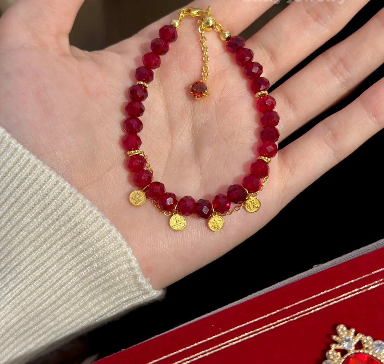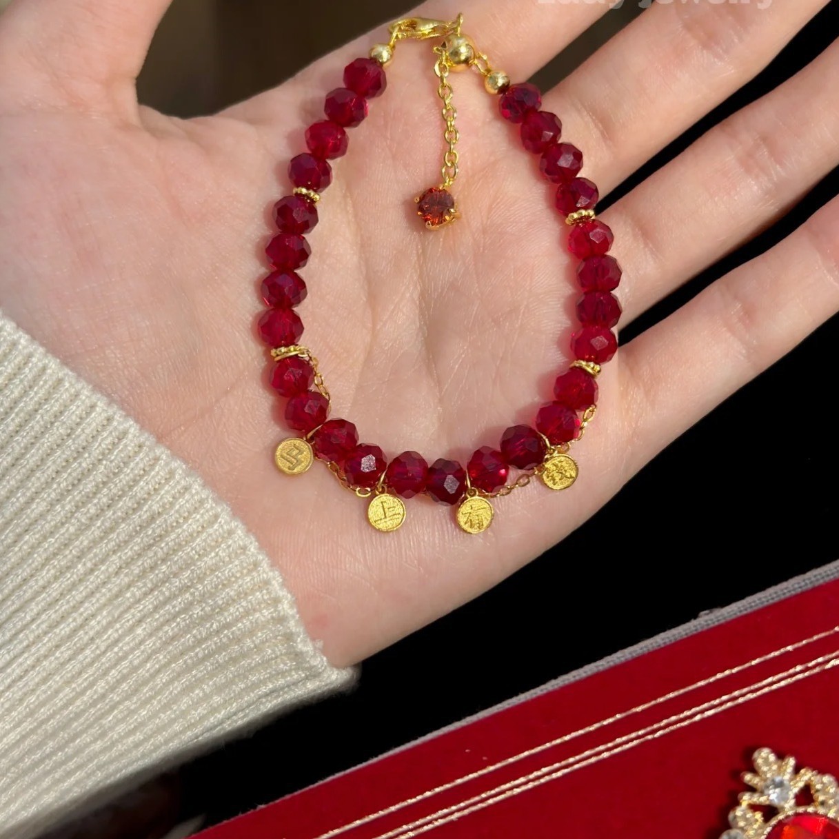 纯银S925天然切面红玉髓马上有钱新年手链轻奢精致高级感气质手饰