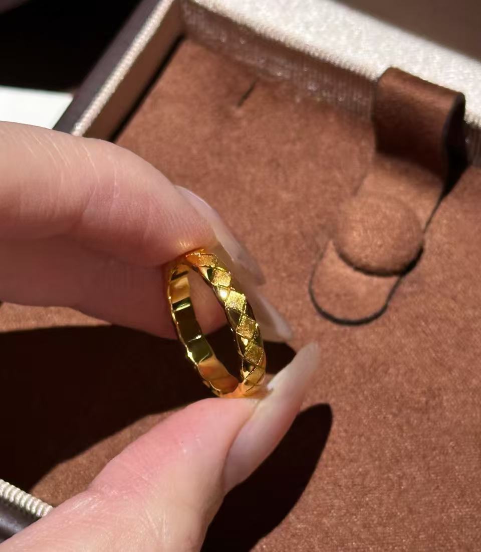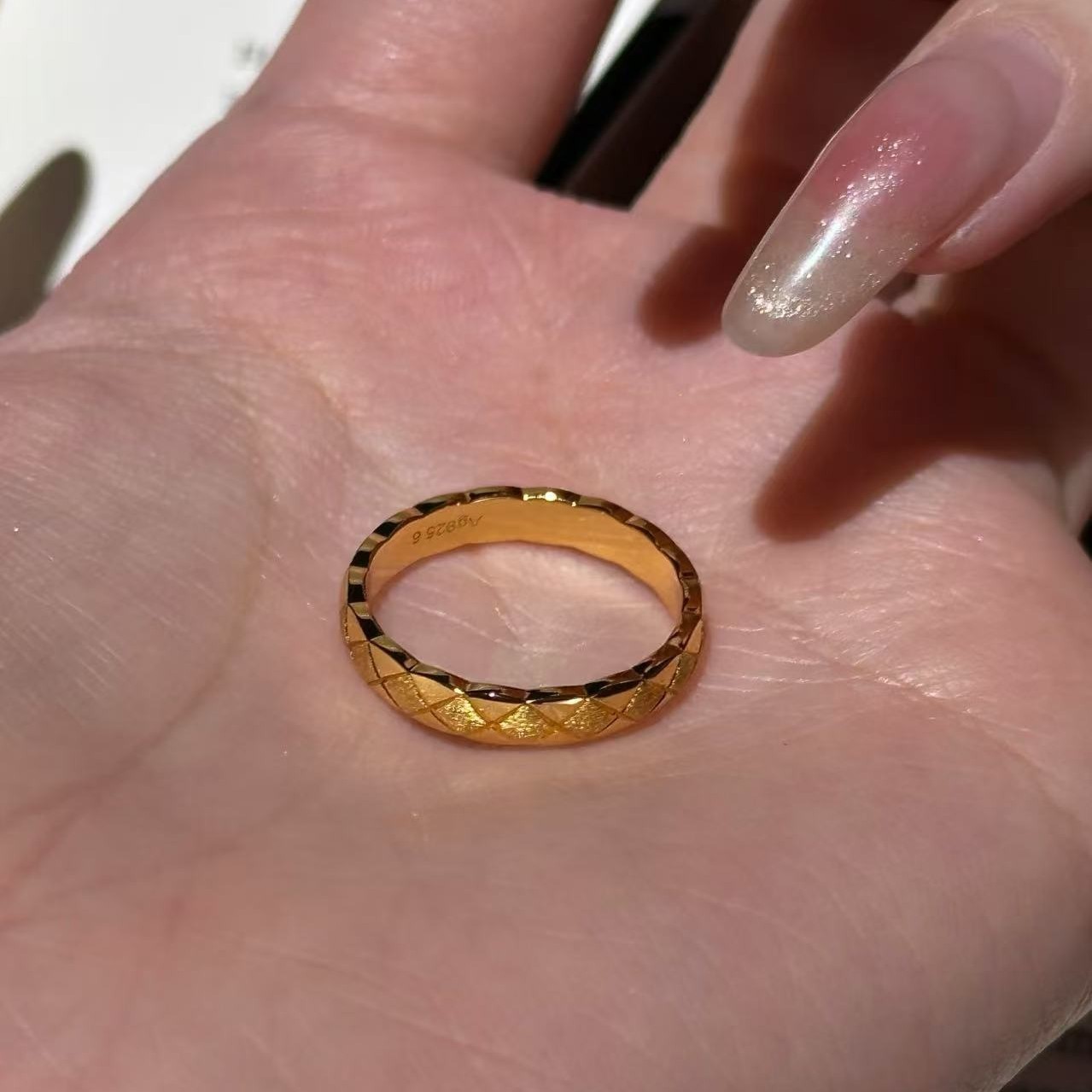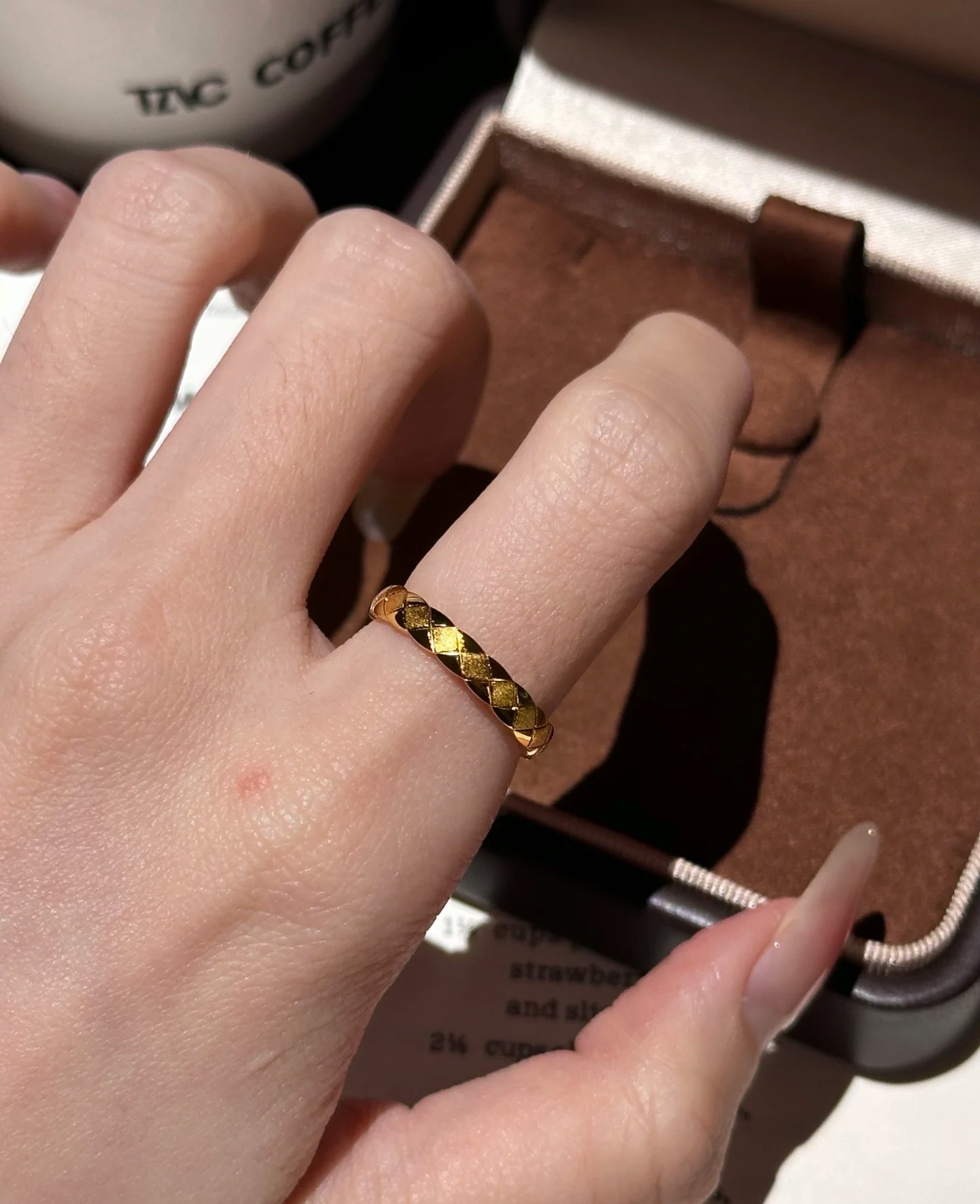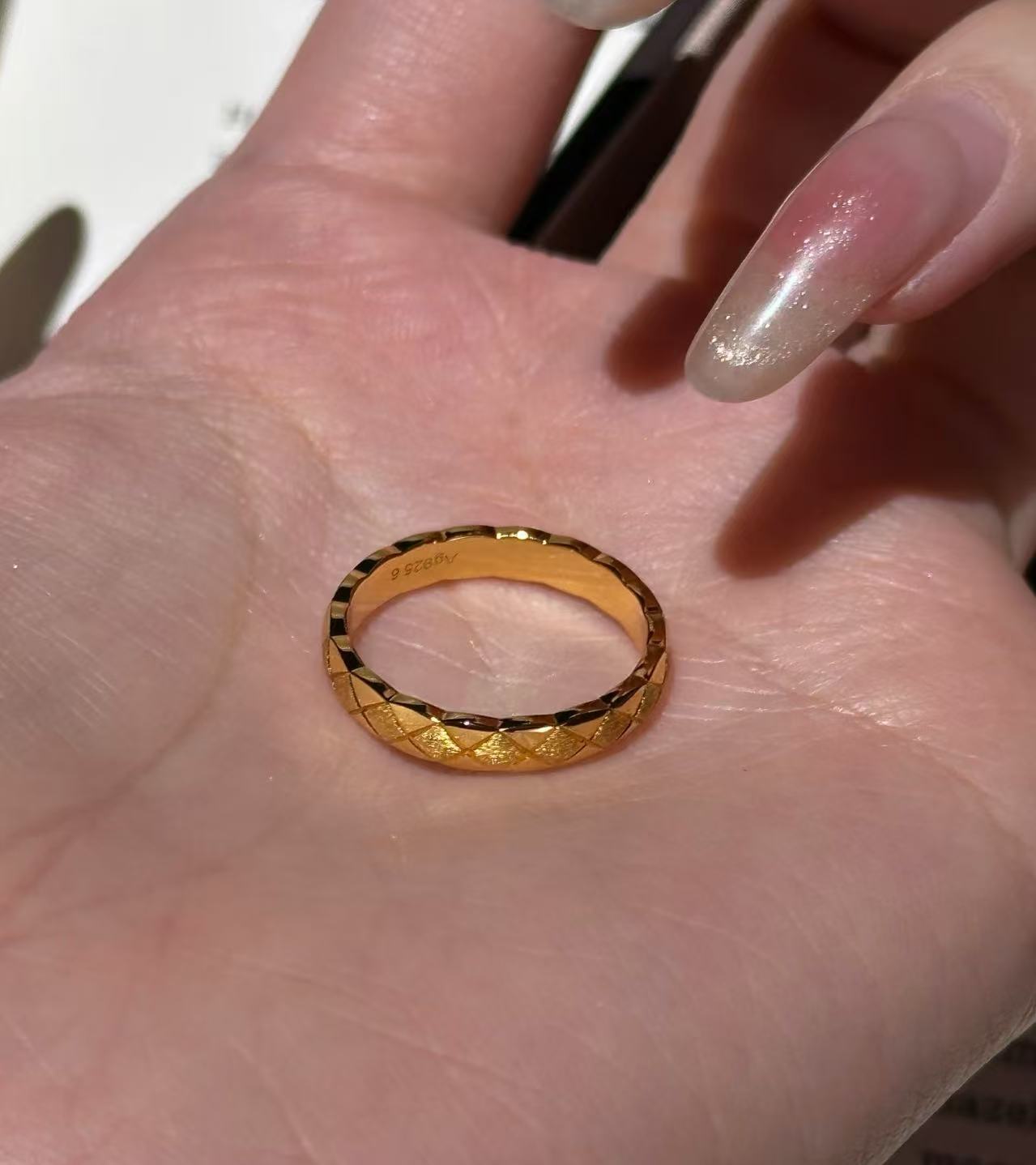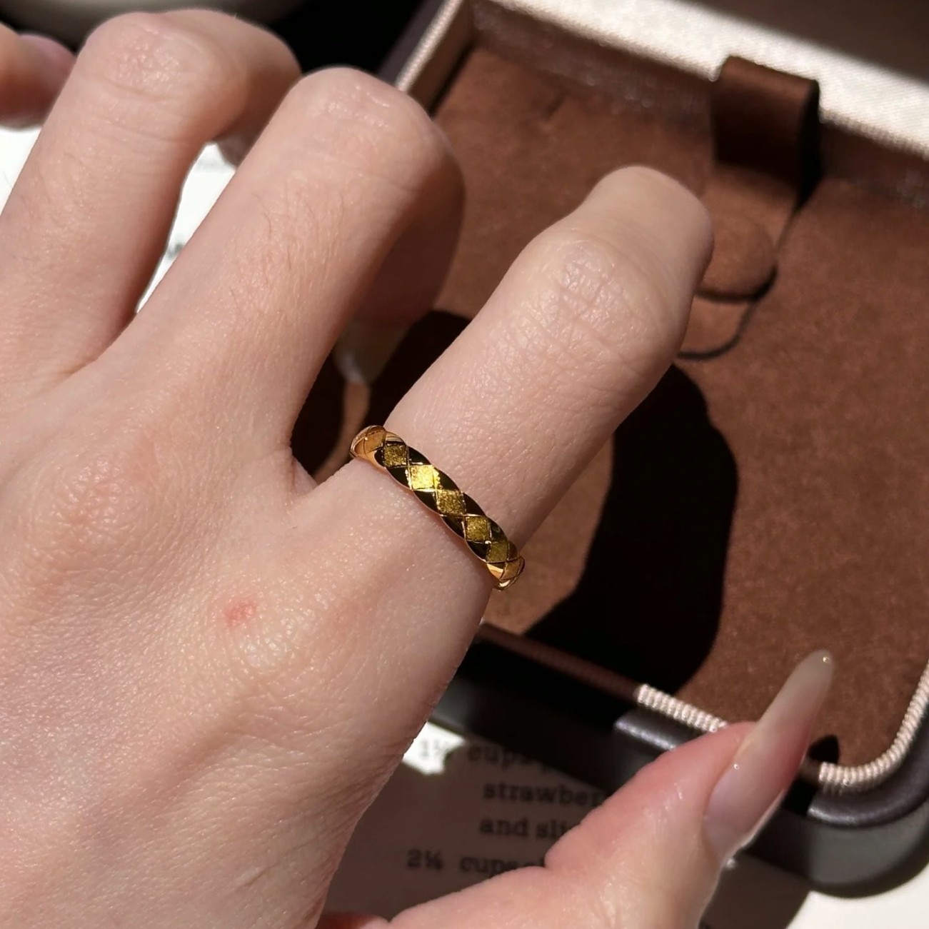 纯银S925中古拉丝菱格戒指小众设计重工菱格闪耀高级轻奢百搭气质