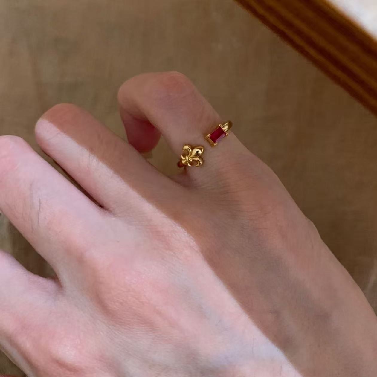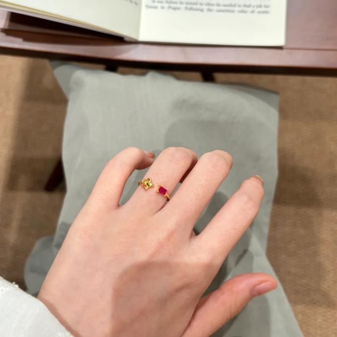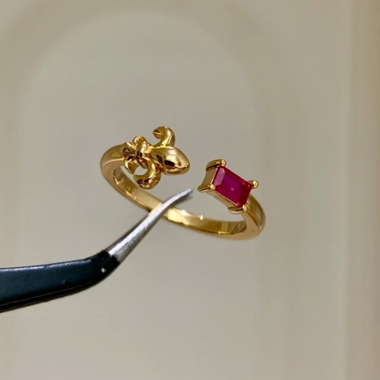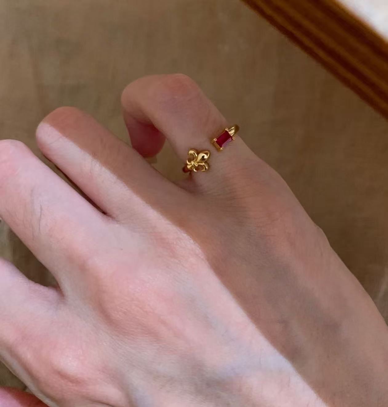 纯银S925拉丝工艺鸢尾花红宝石绿宝石尾戒简约百搭轻奢高级感尾戒