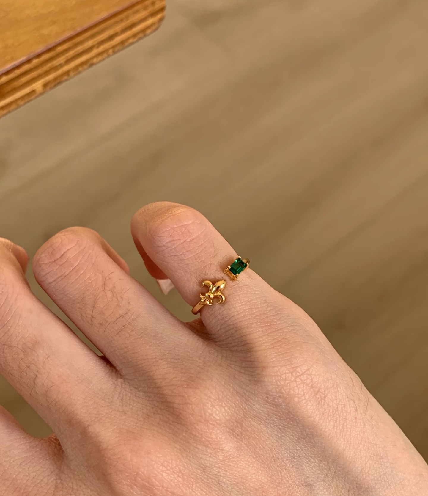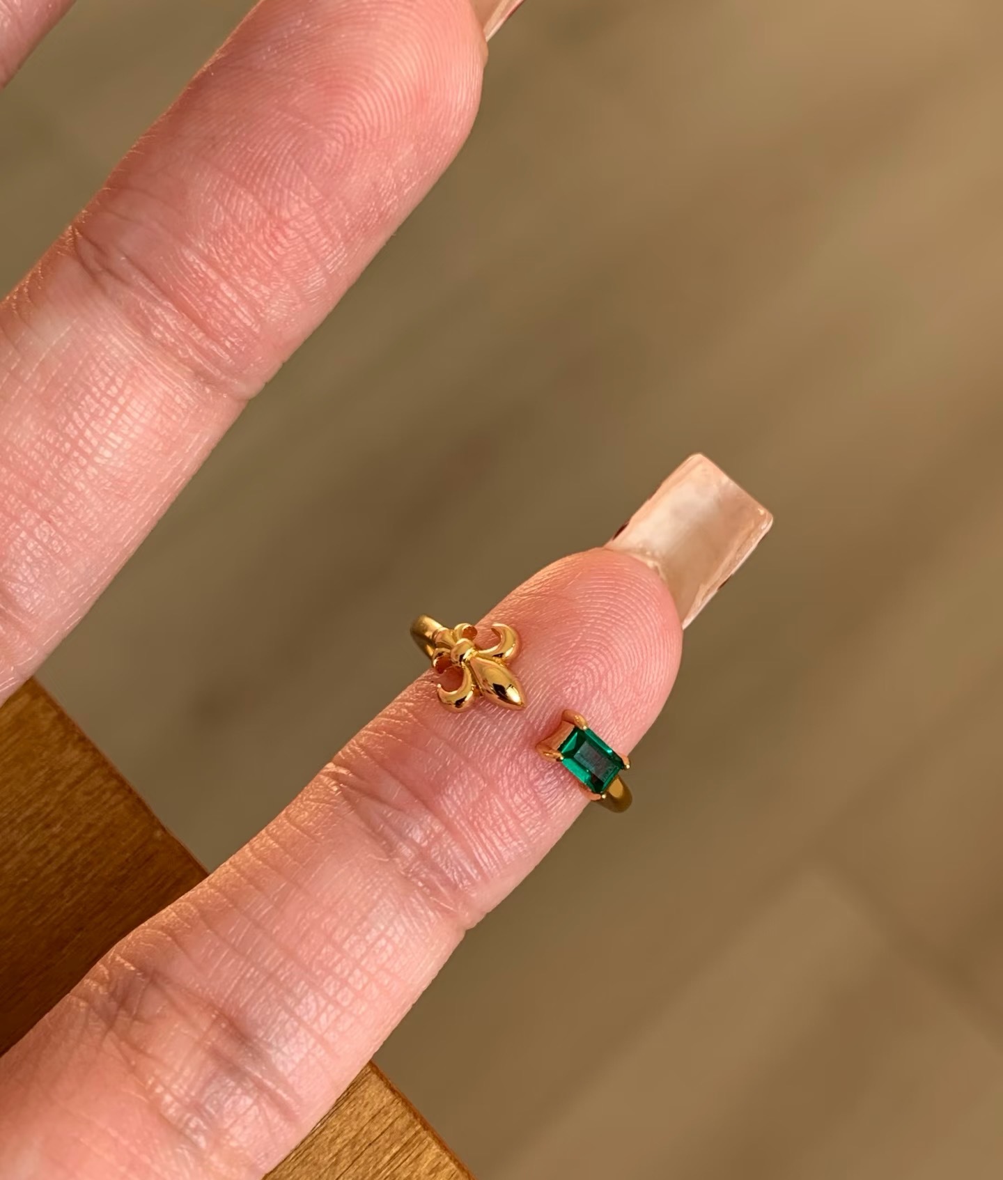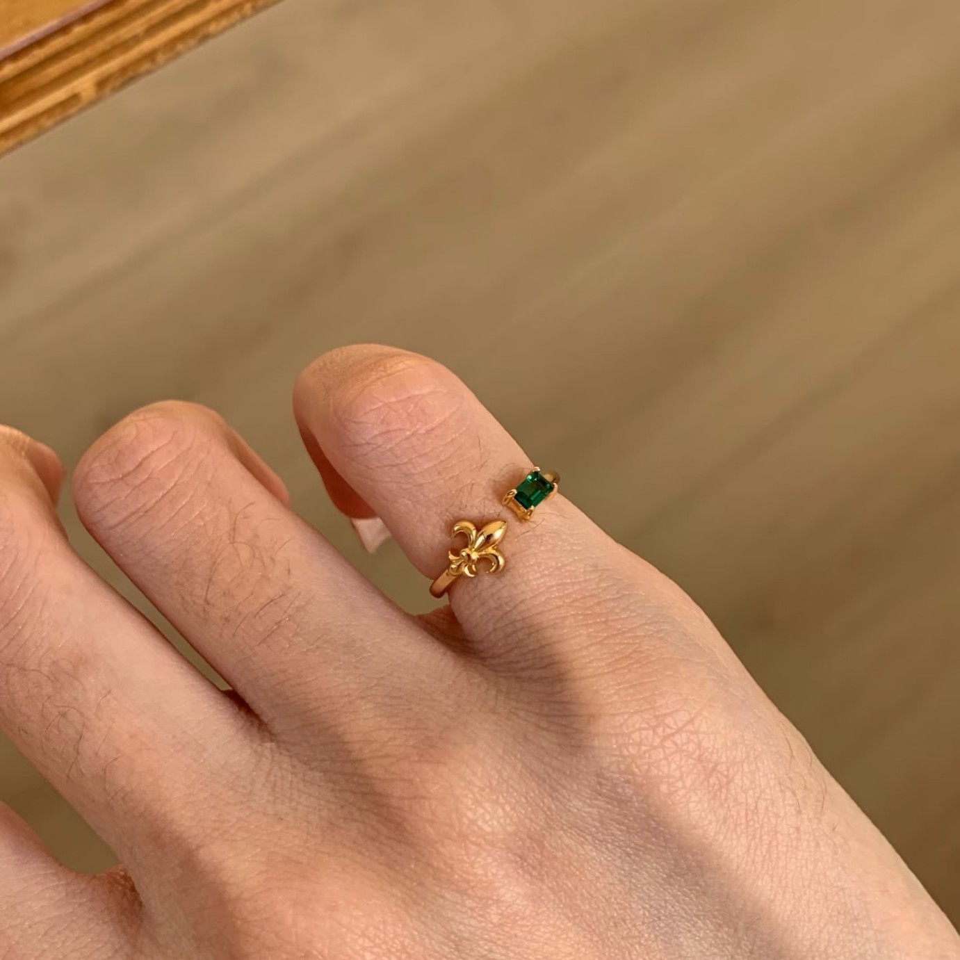 纯银S925拉丝工艺鸢尾花红宝石绿宝石尾戒简约百搭轻奢高级感尾戒