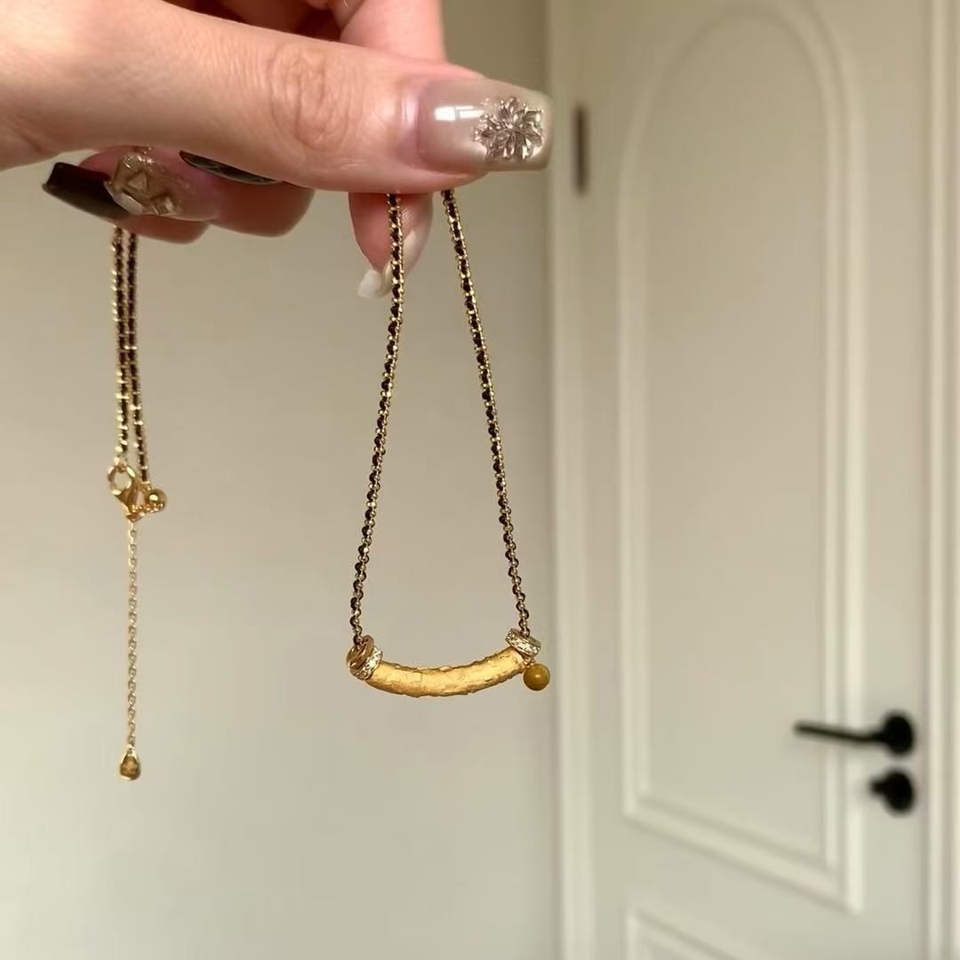 纯银s925虎眼石微笑黑金手链项链简约高级感精致百搭编织锁骨链