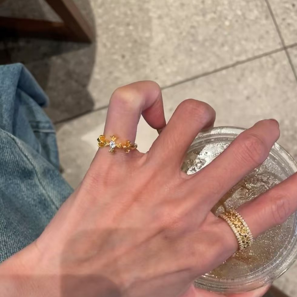 纯银S925十字莺尾花尾戒指女时尚轻奢中古风指环
