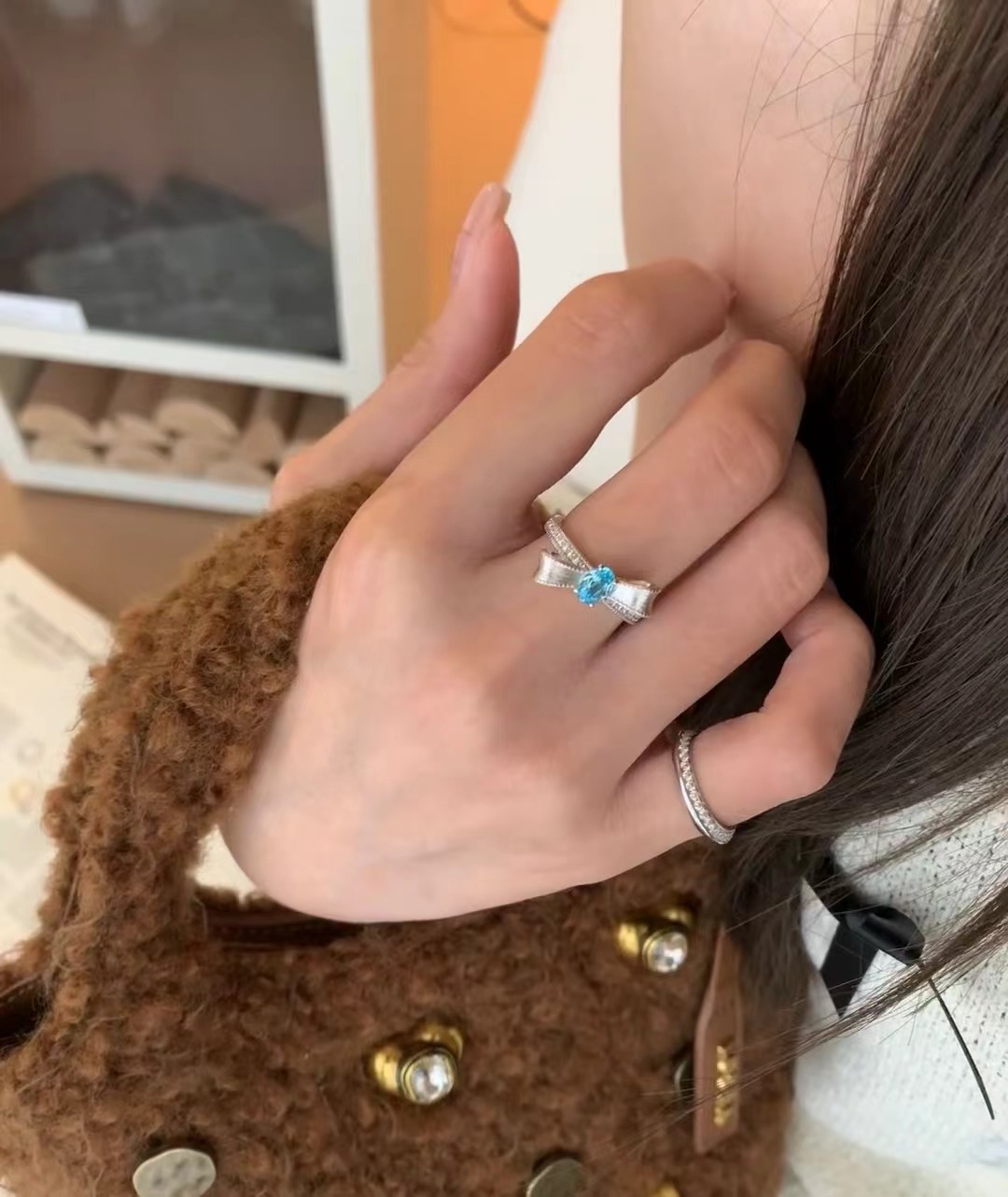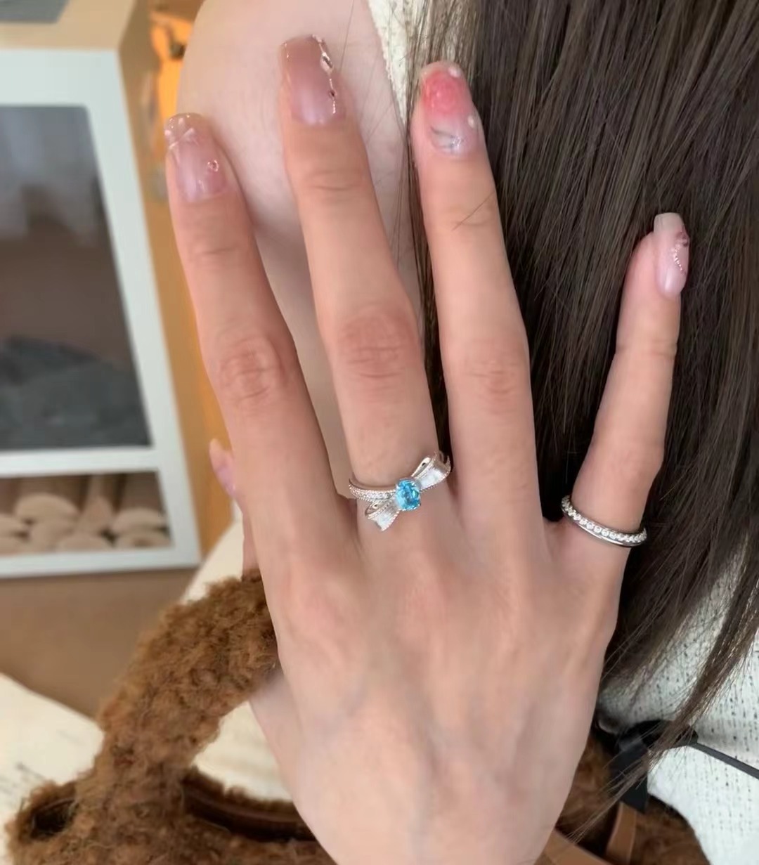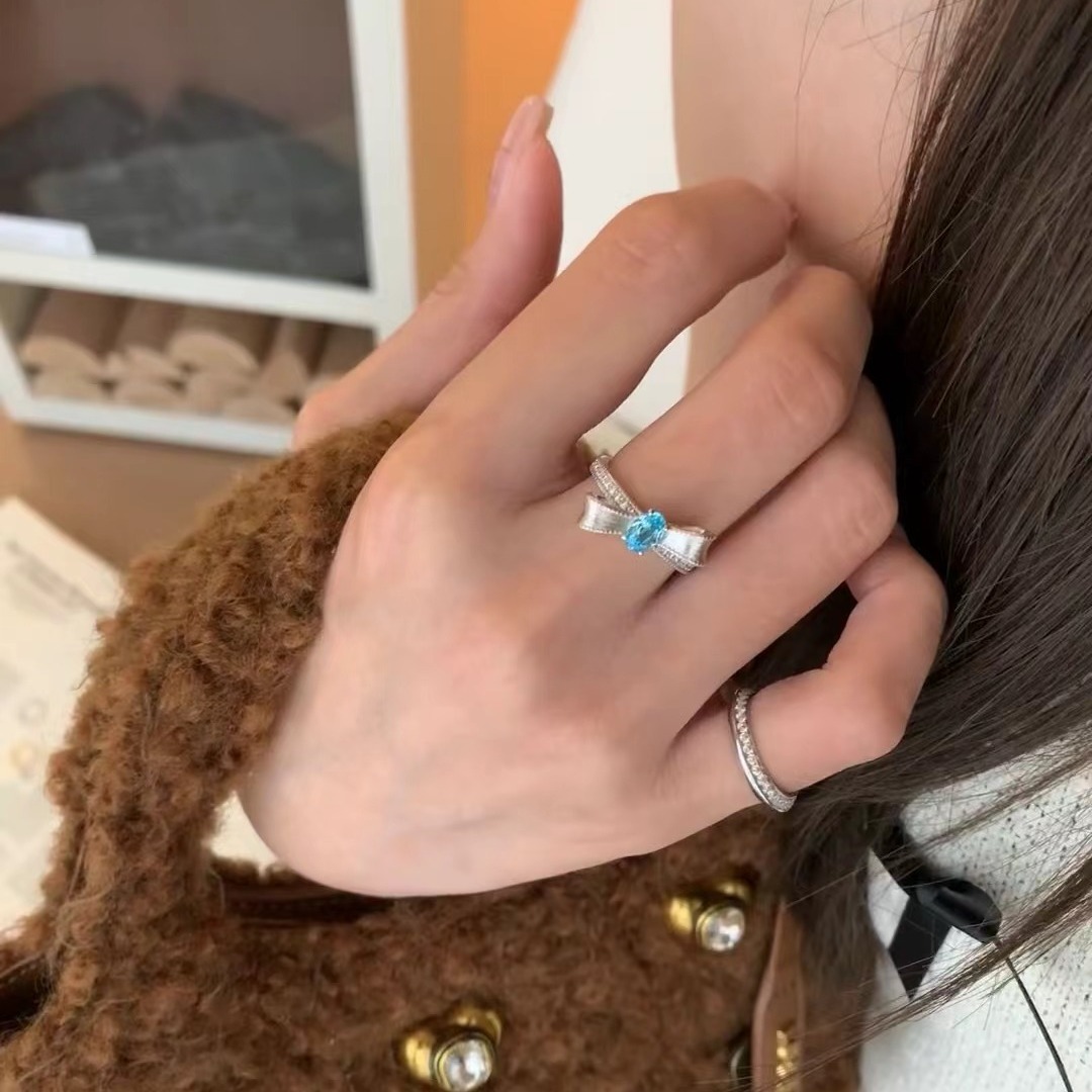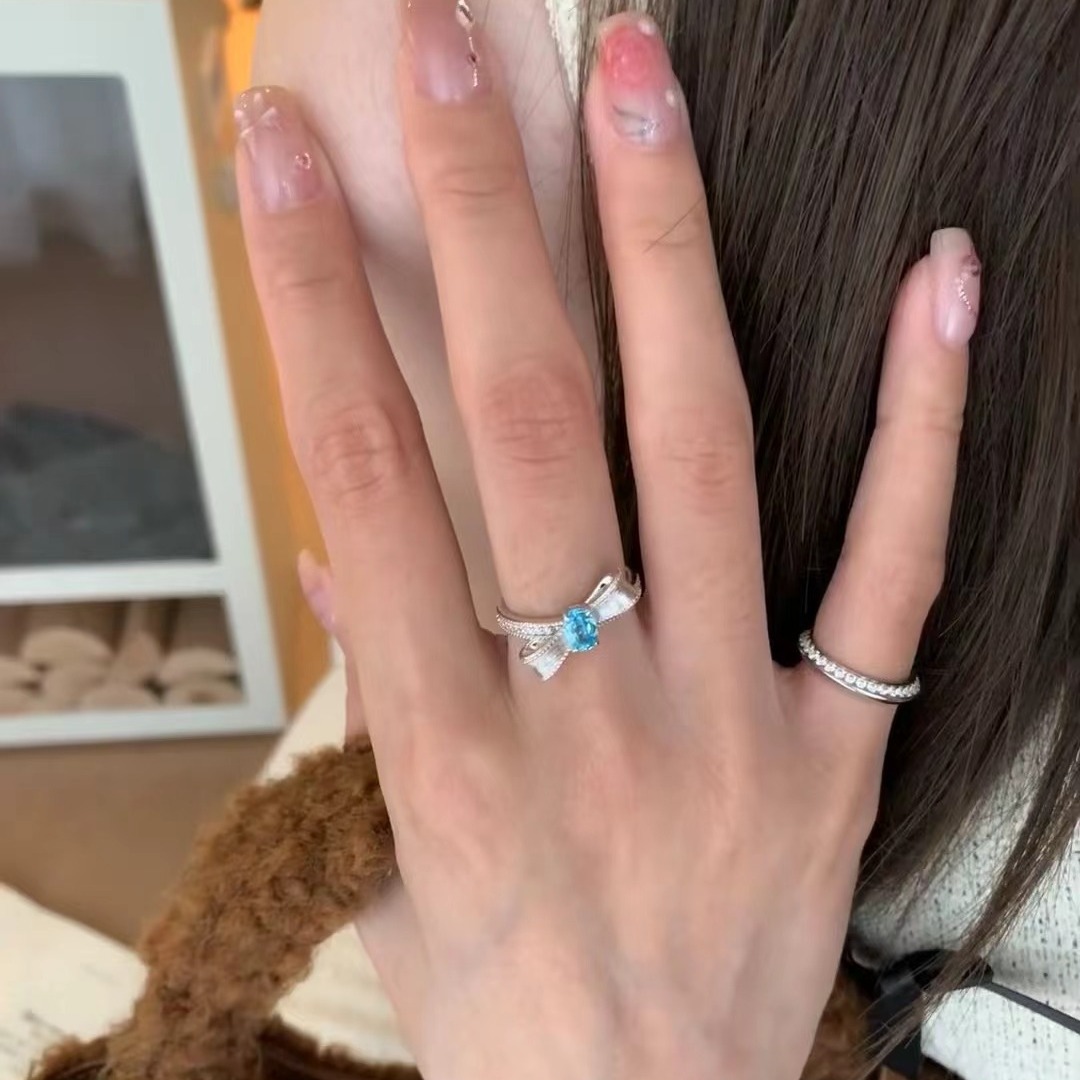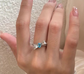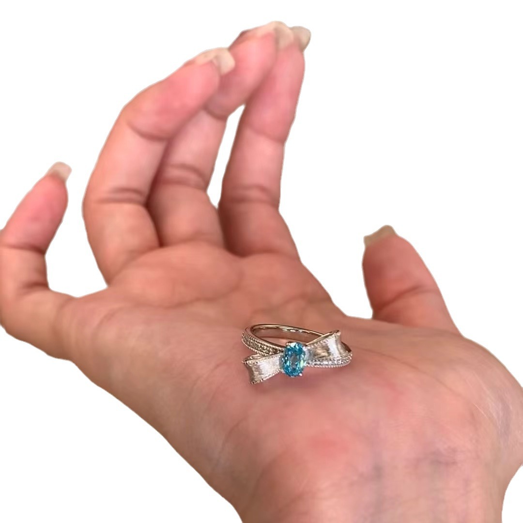 意大利中古拉丝轻奢高级帕拉伊巴宝石珠宝戒指925纯银拉丝锻面芭