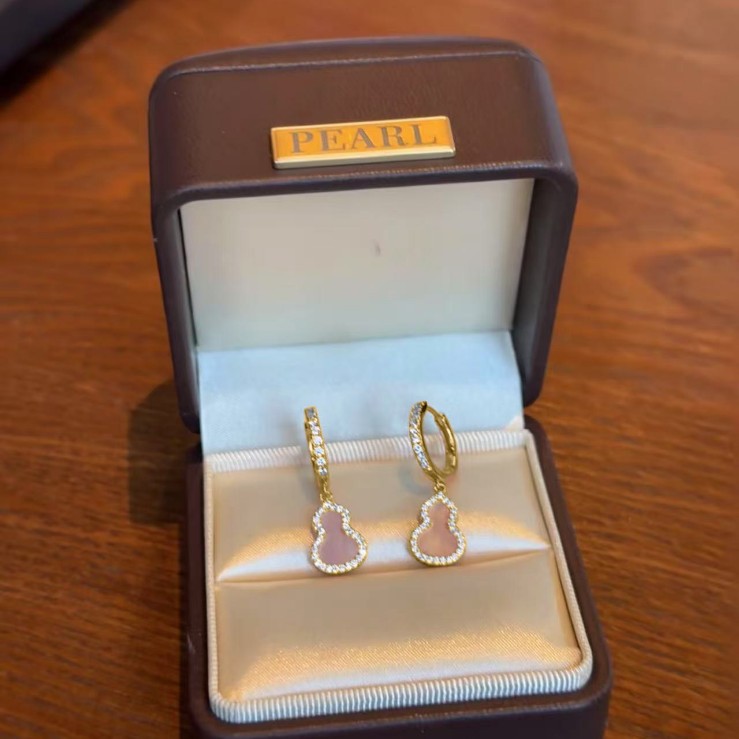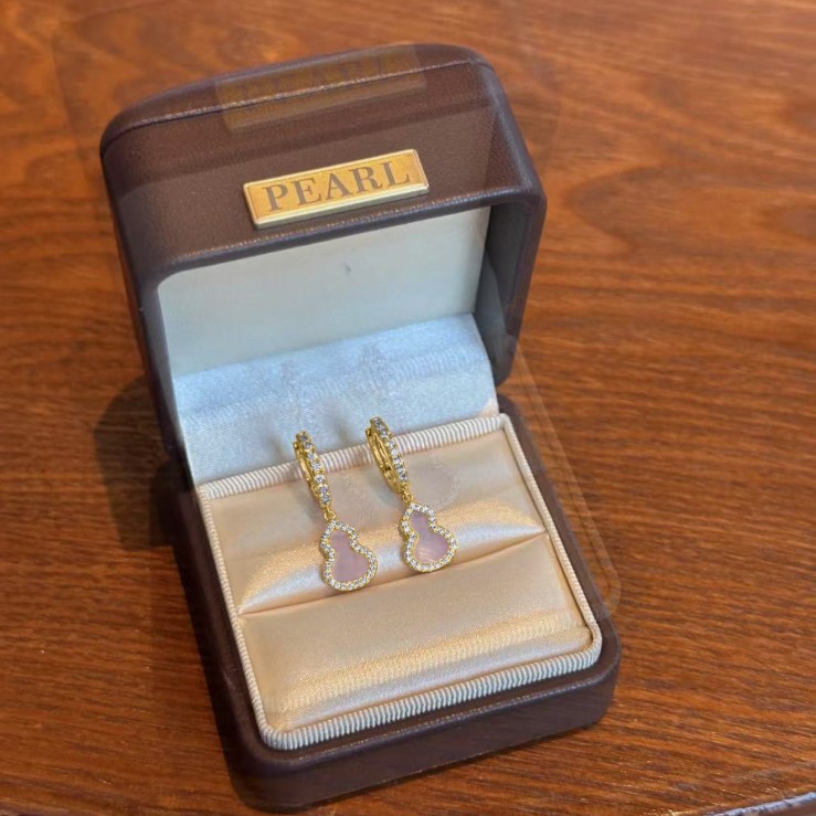 纯银s925国风天然粉贝葫芦耳环气质轻奢百搭设计感小众高级耳饰