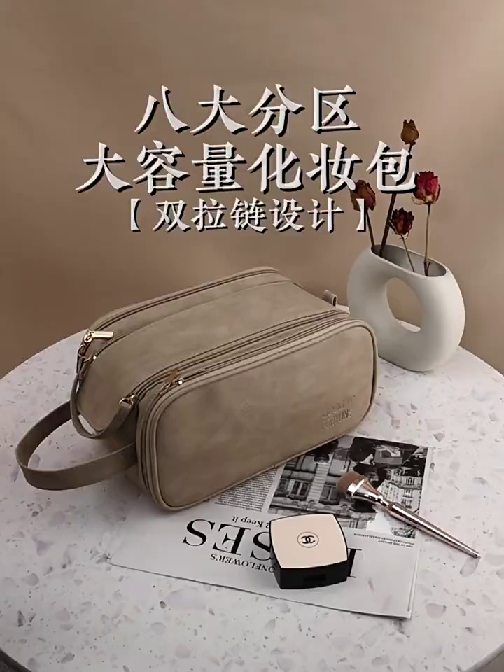 跨境大容量化妆包高级感手提旅行洗漱包多功能收纳包便携式收纳袋
