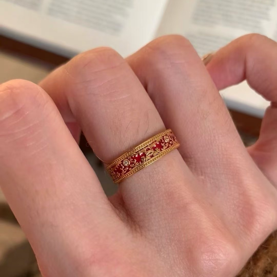 纯银s925国风故宫红新年红珐琅工艺戒指温婉大方轻奢气质高级