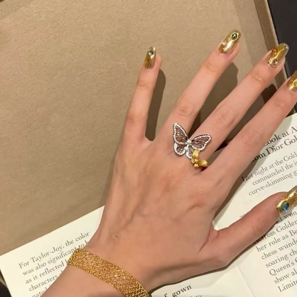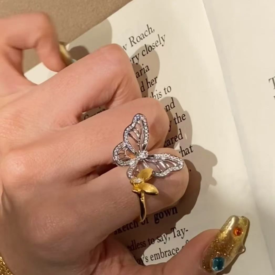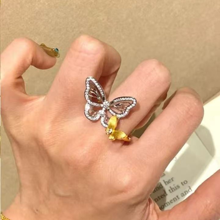 纯银s925拉丝工艺双生蝶分色电镀戒指轻奢气质小众高级感