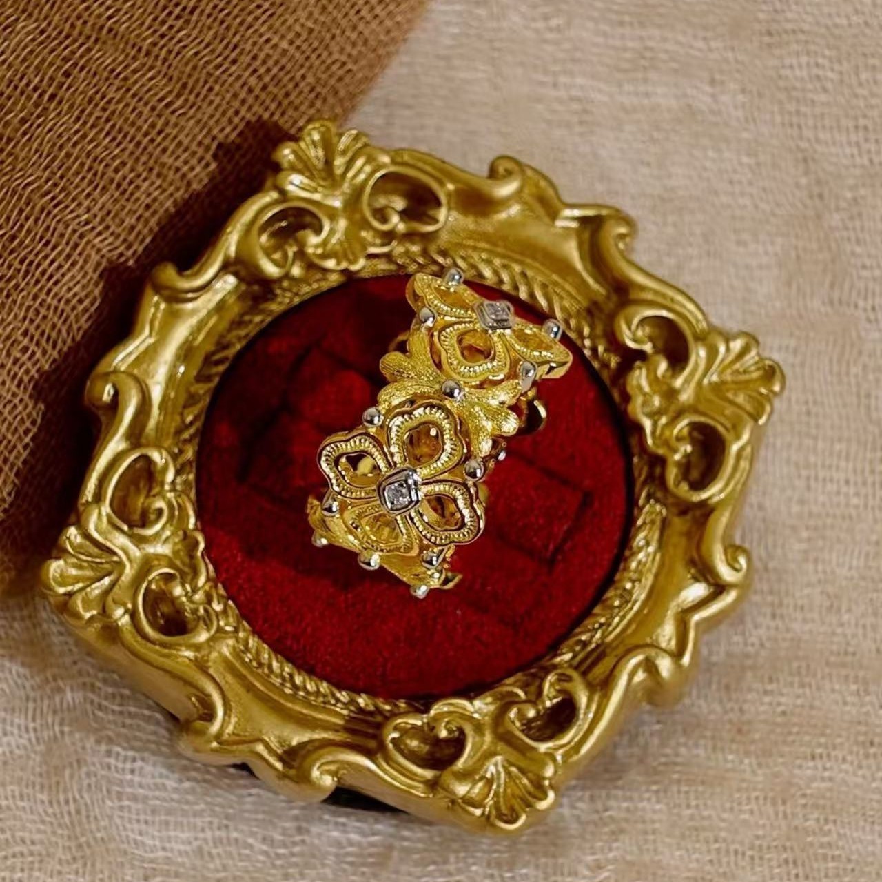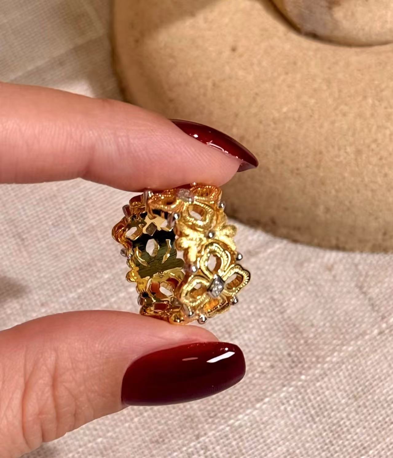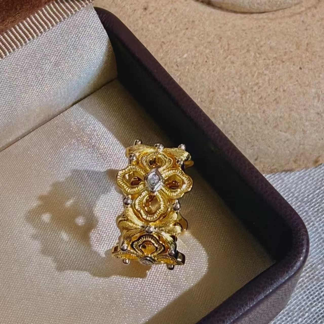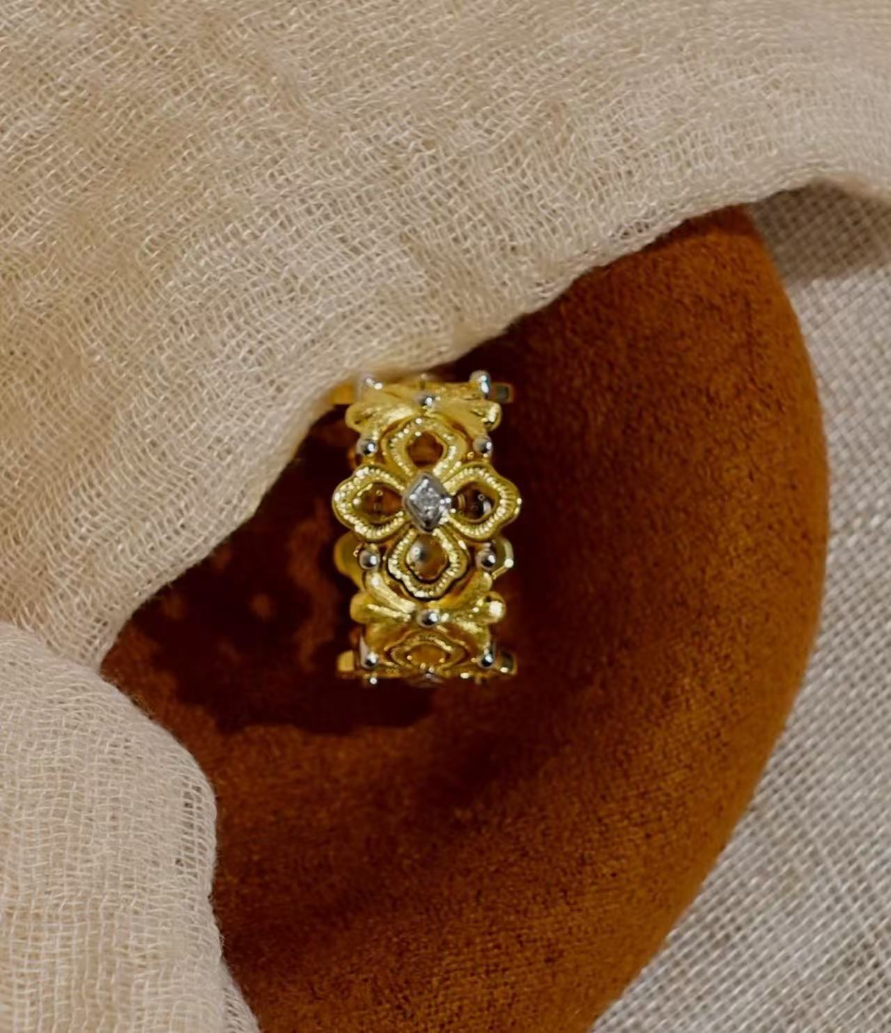 纯银s925意大利布家风拉丝工艺戒指镂空雕花宫廷风轻奢高级感指环