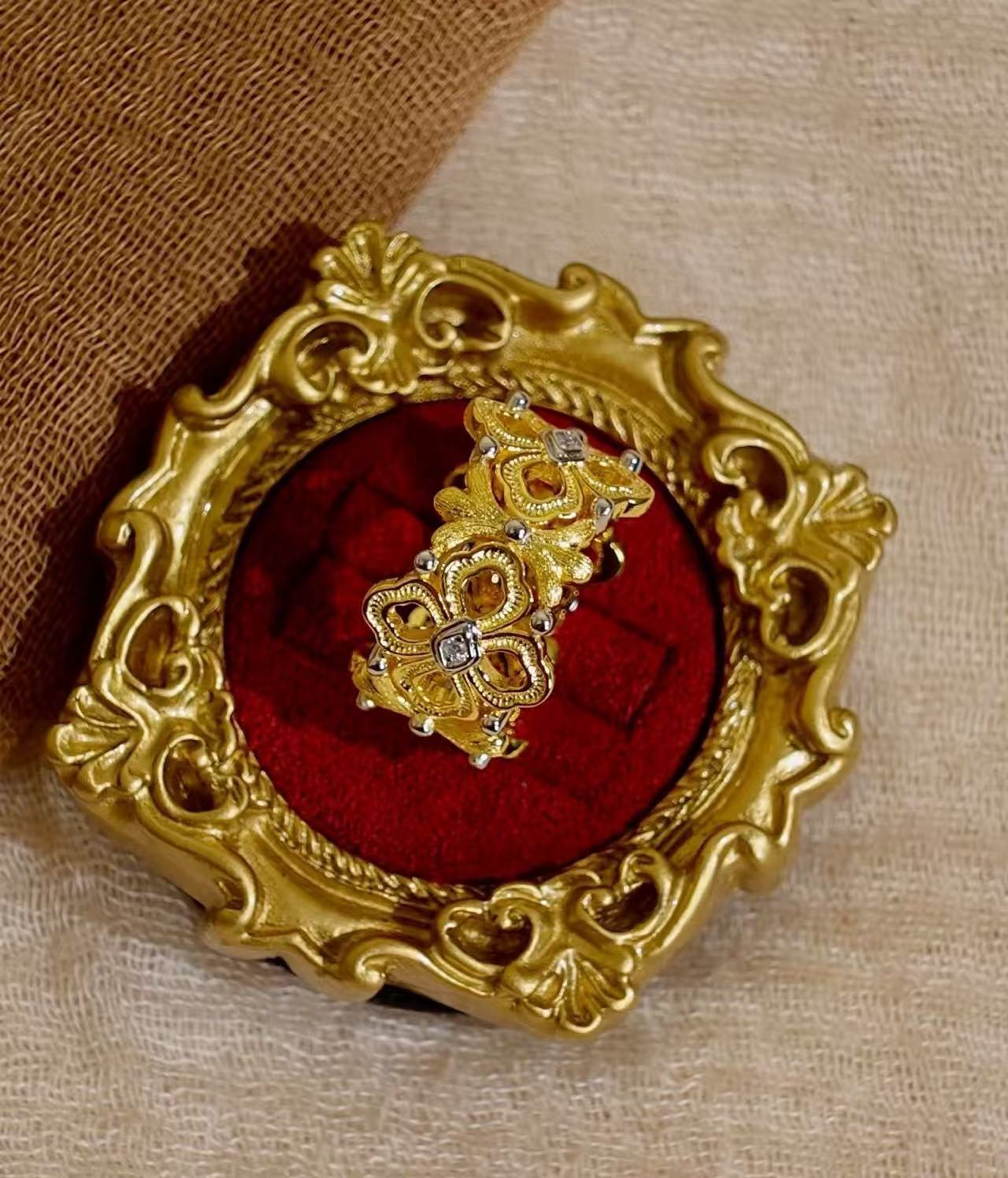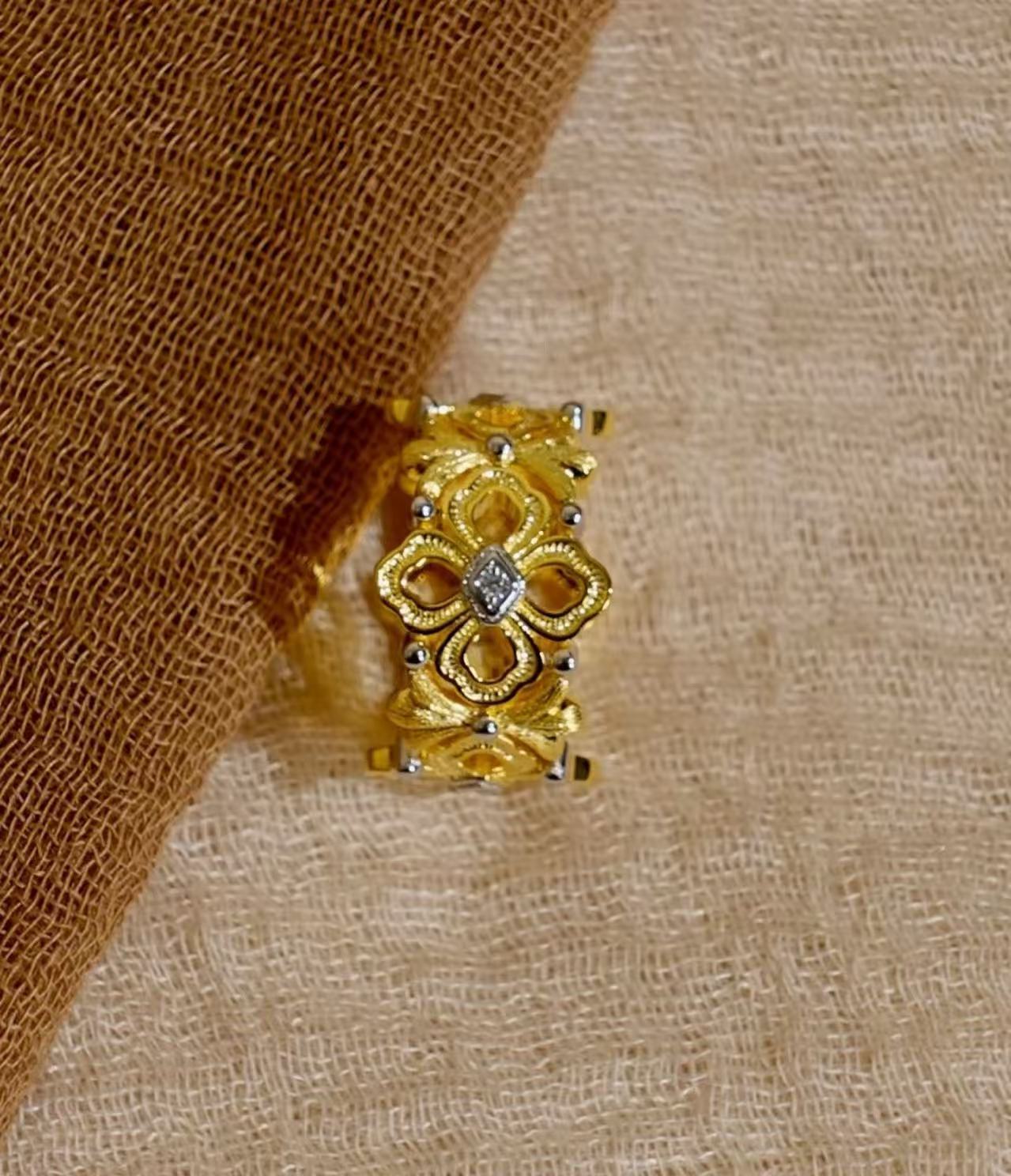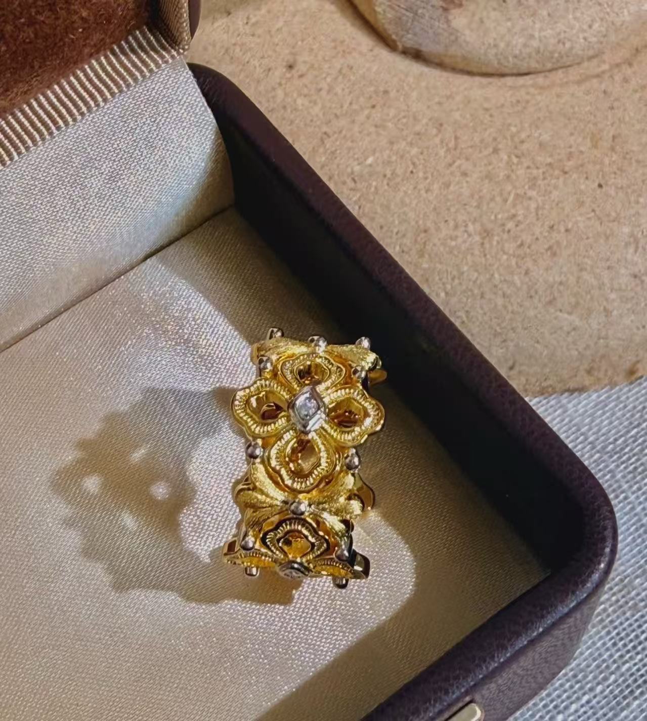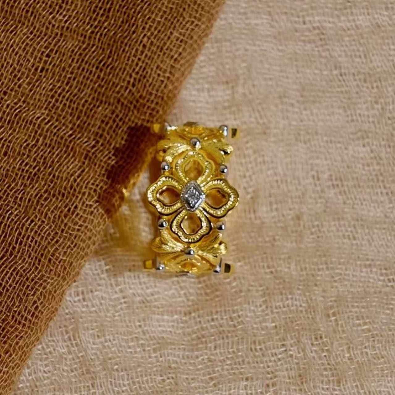 纯银s925意大利布家风拉丝工艺戒指镂空雕花宫廷风轻奢高级感指环