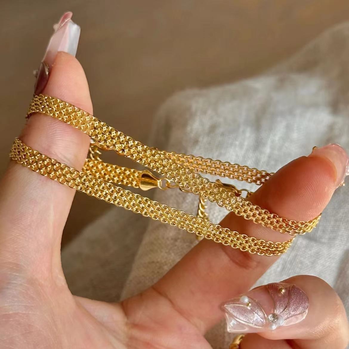 纯银S925轻奢风高级感蕾丝坦克链手链叠戴风小众百搭