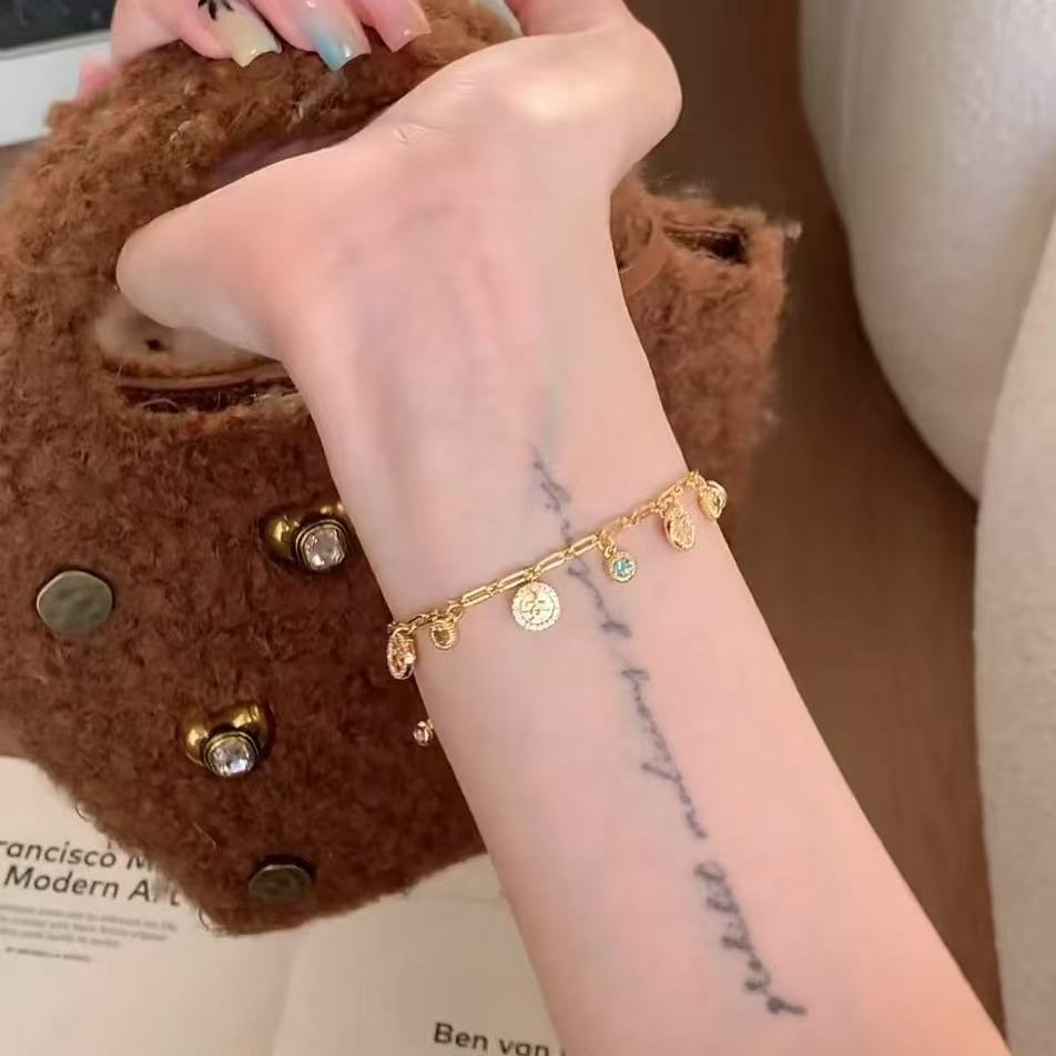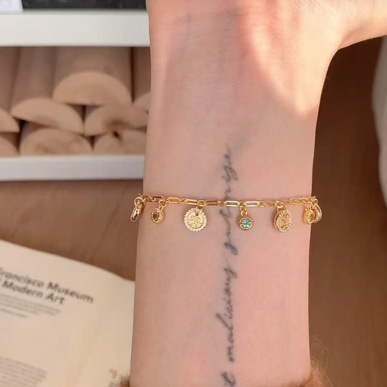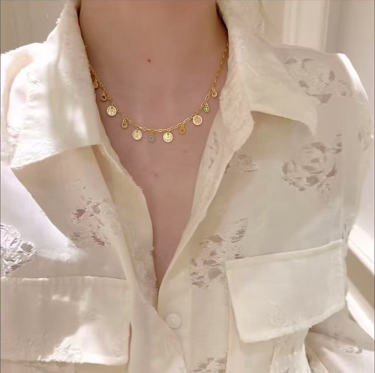 平安喜乐彩宝多巴胺手链项链套装小众设计简约小巧百搭锁骨