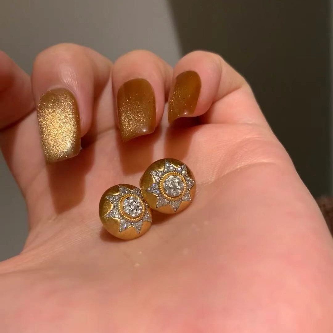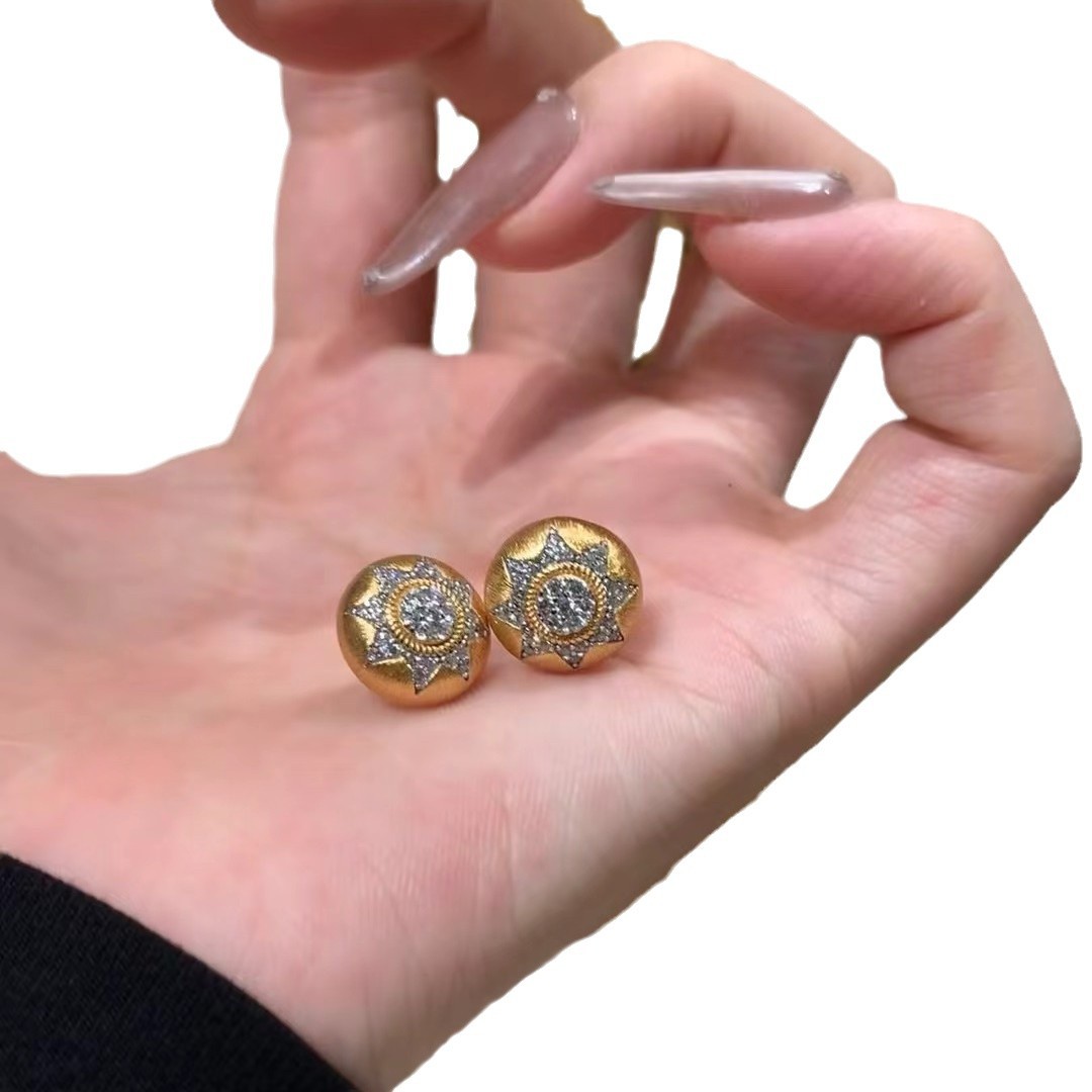 意大利中古拉丝轻奢老钱风高级感珠宝925纯银拉丝工艺锻面耳钉女