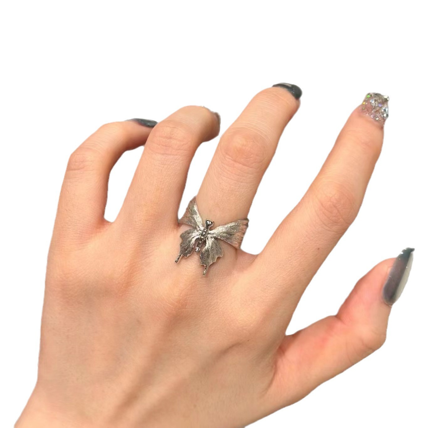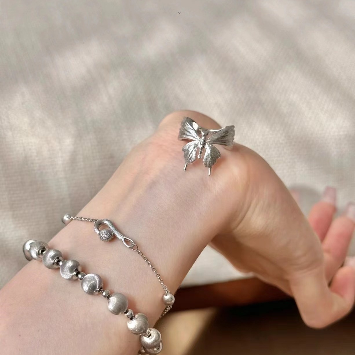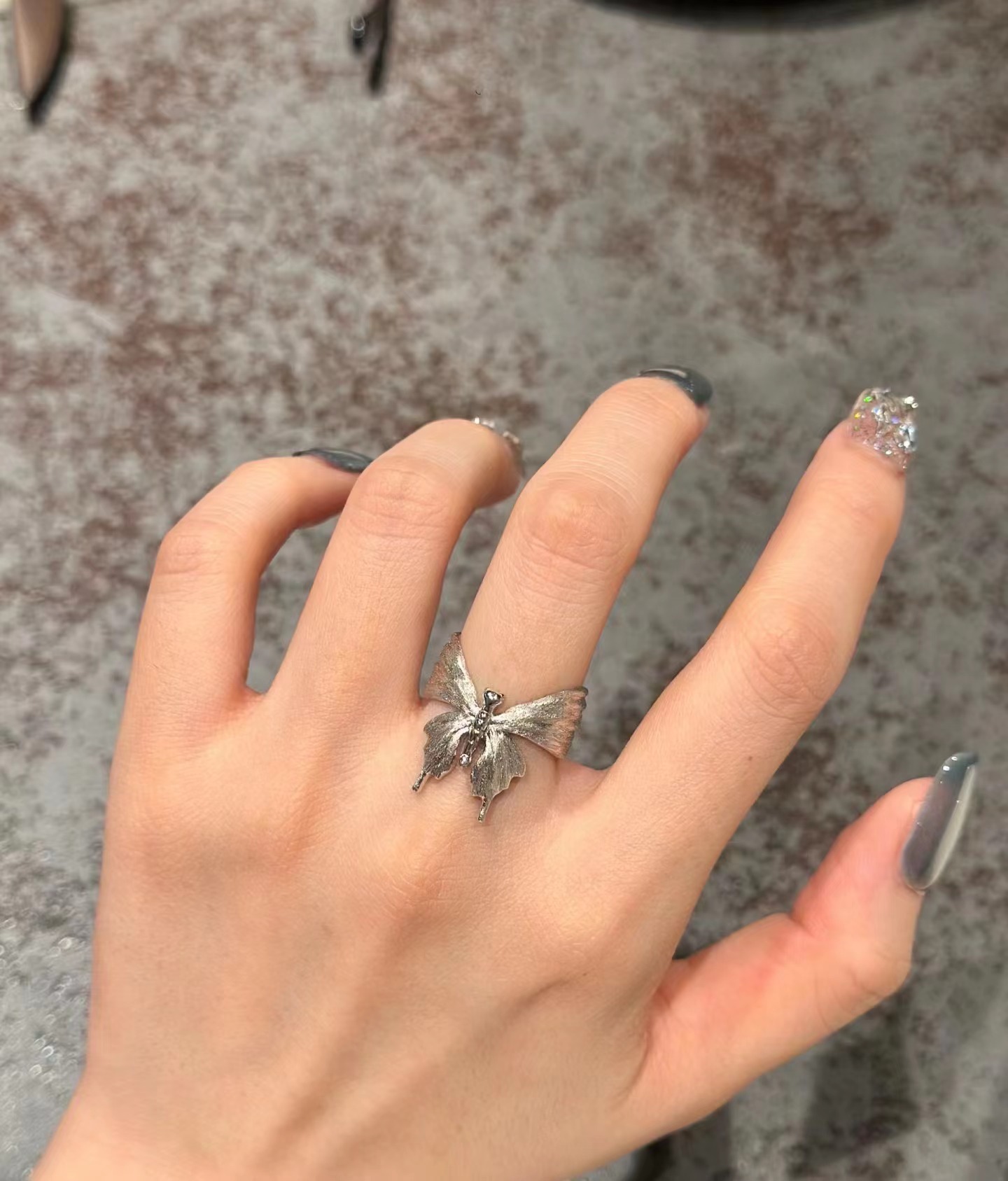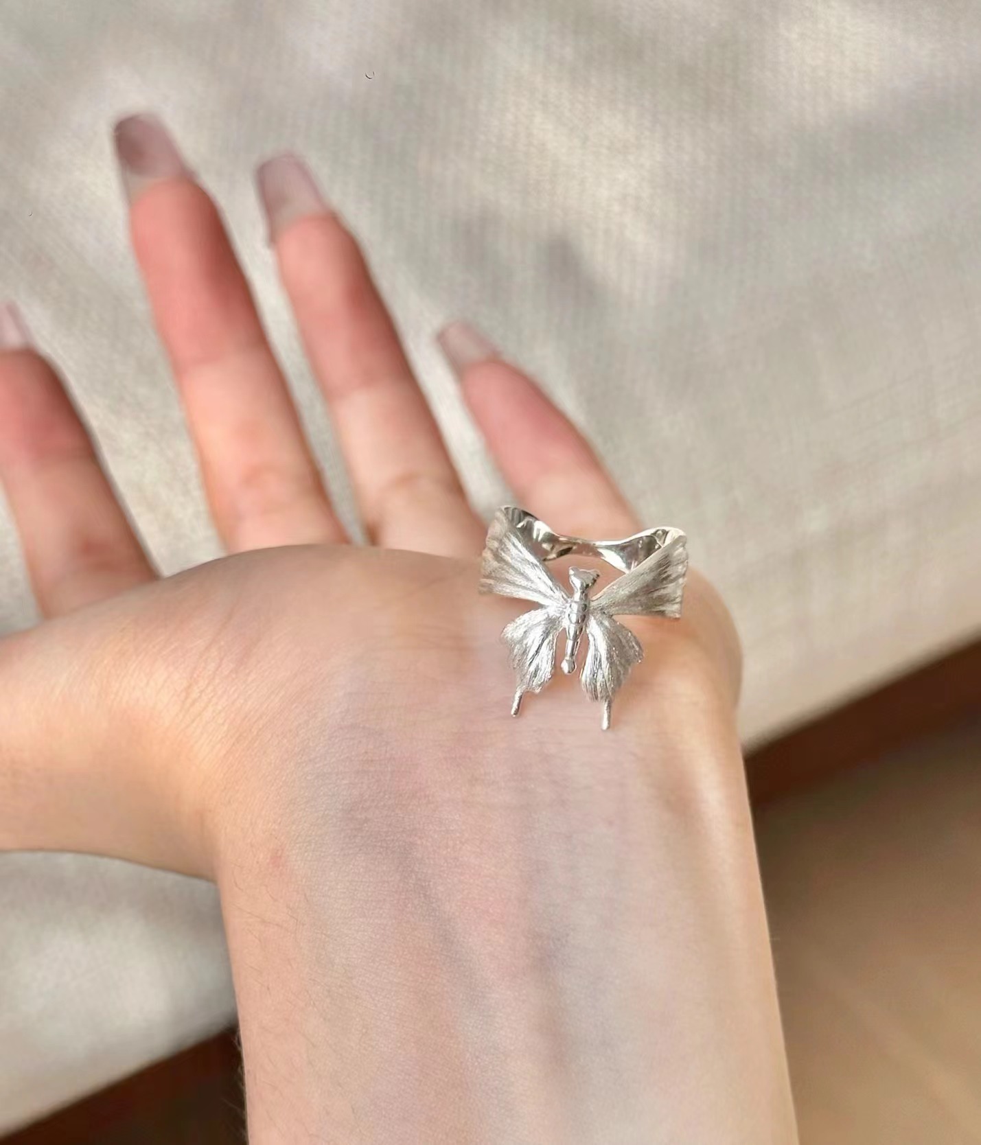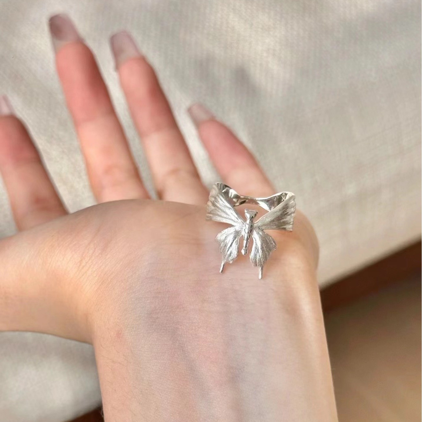 意大利中古拉丝轻奢高级感珠宝925纯银拉丝工艺锻面蝴蝶戒指