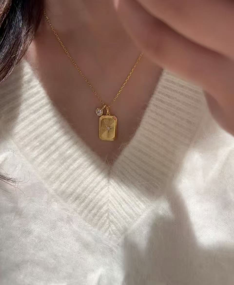 纯银S925拉丝工艺无事牌芒星项链轻奢高级感气质秋冬百搭款六芒星
