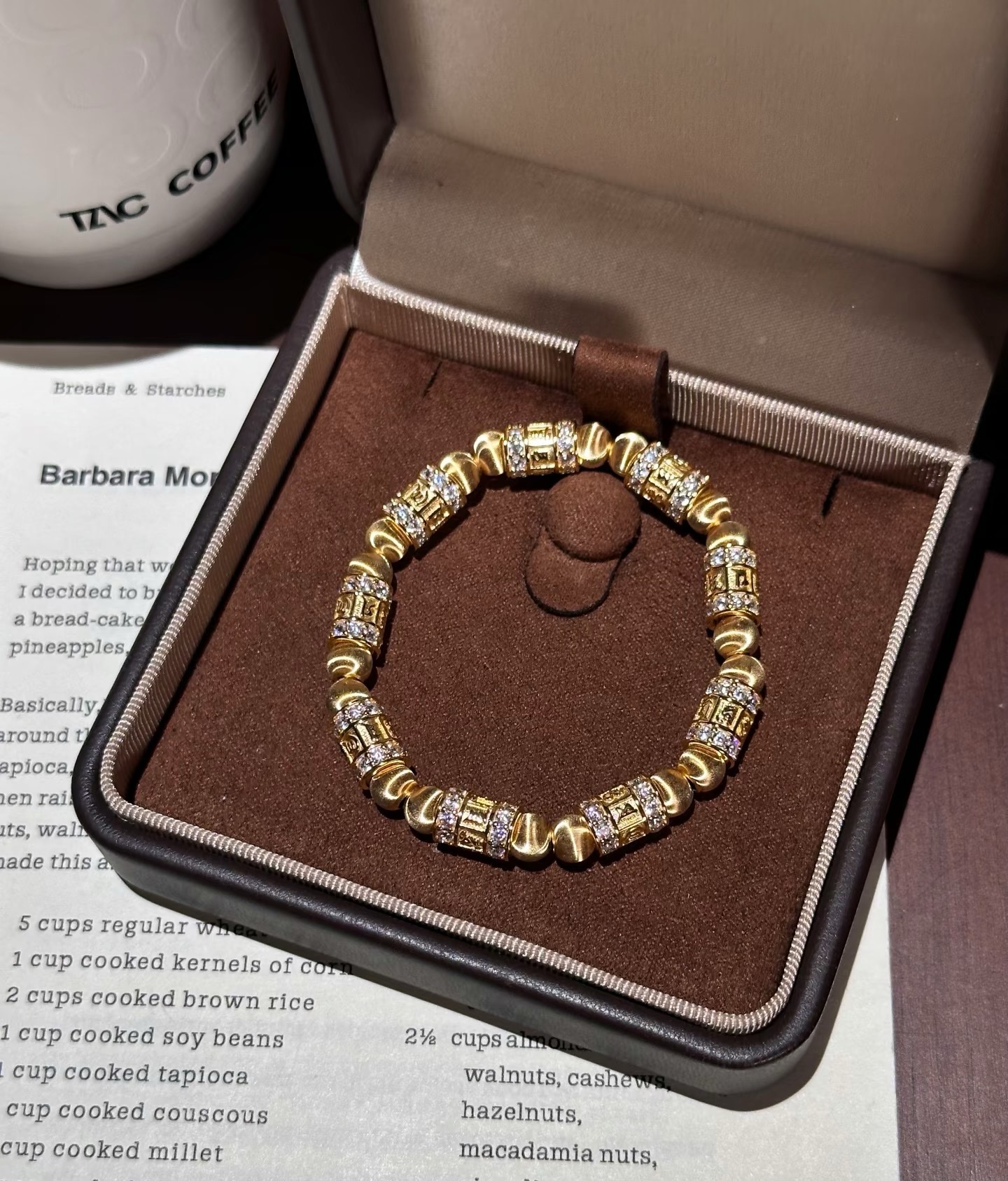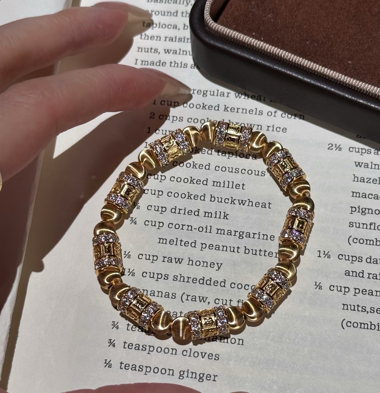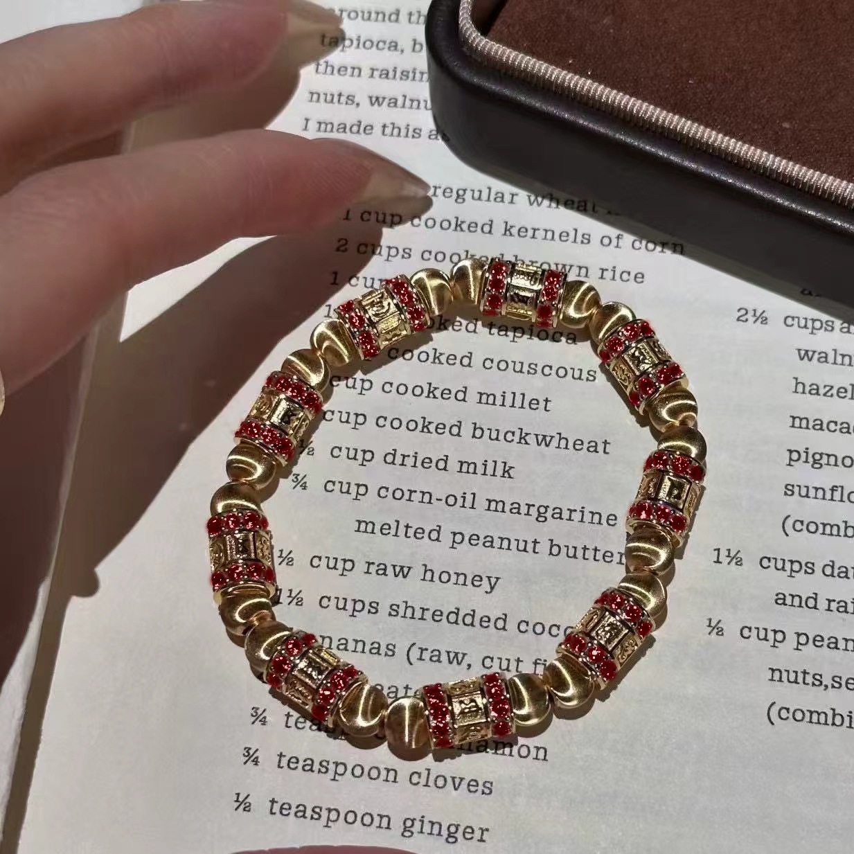 纯银S925六字真言猫眼珠弹力手链新中式国潮时尚气质高级感手饰