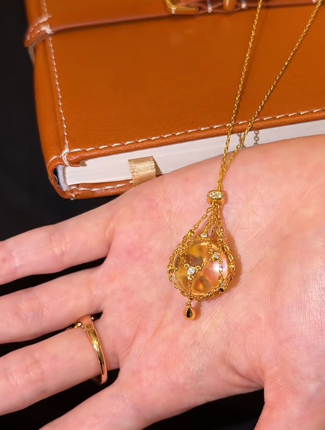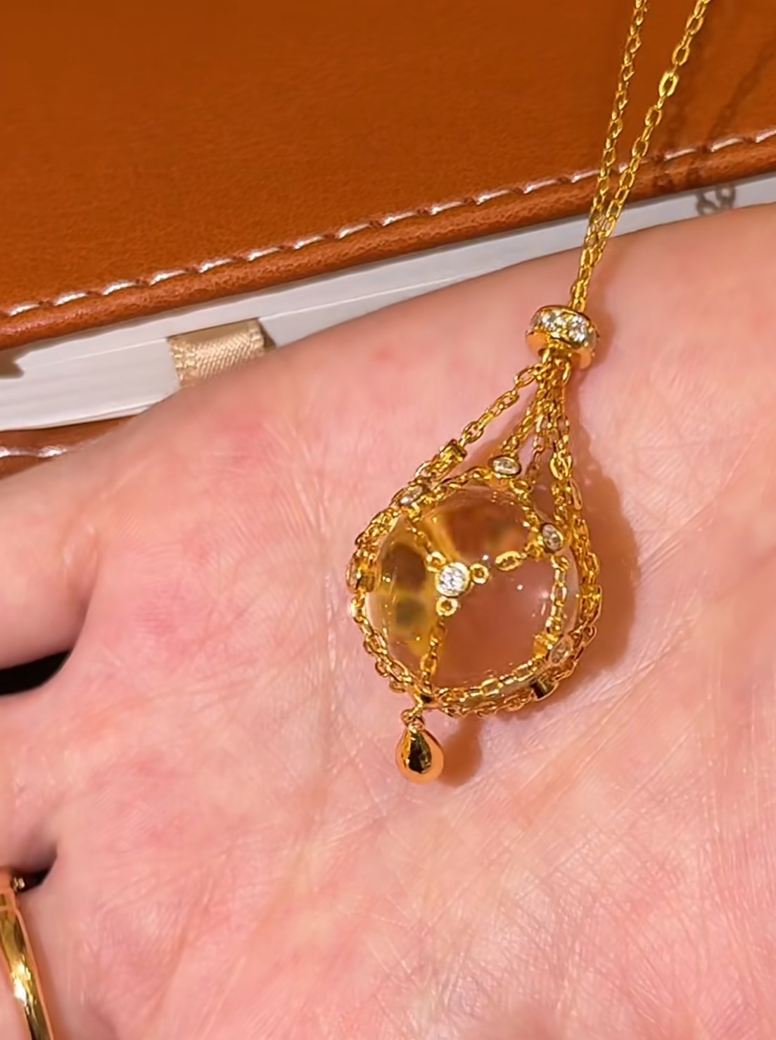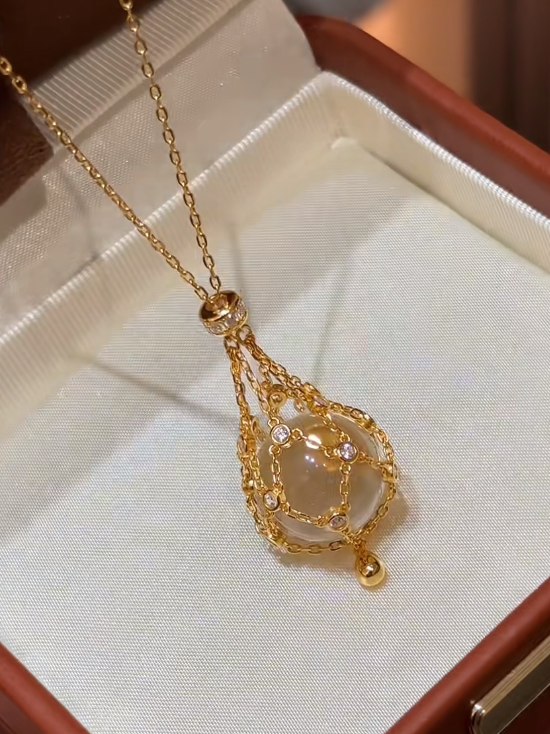 纯银S925天然双A白水晶网兜项链复古时尚轻奢贵妇风毛衣链可调链