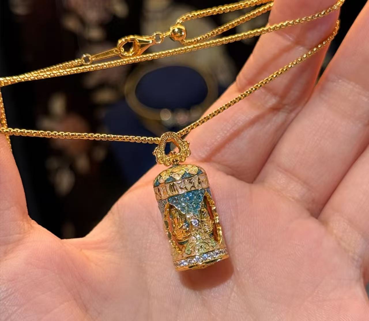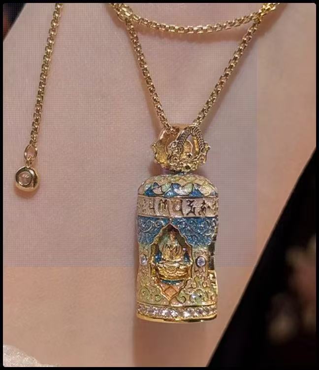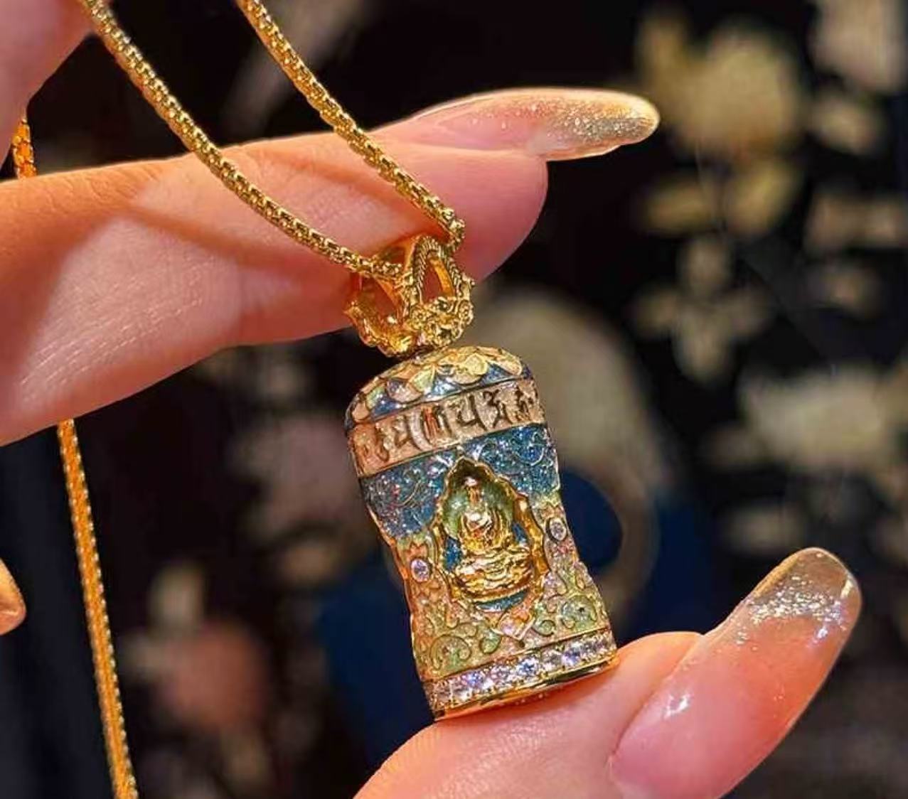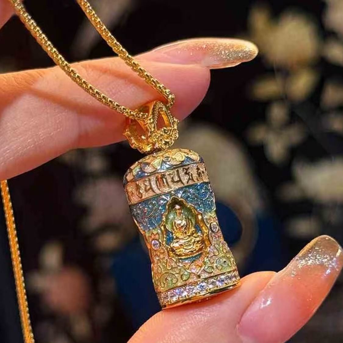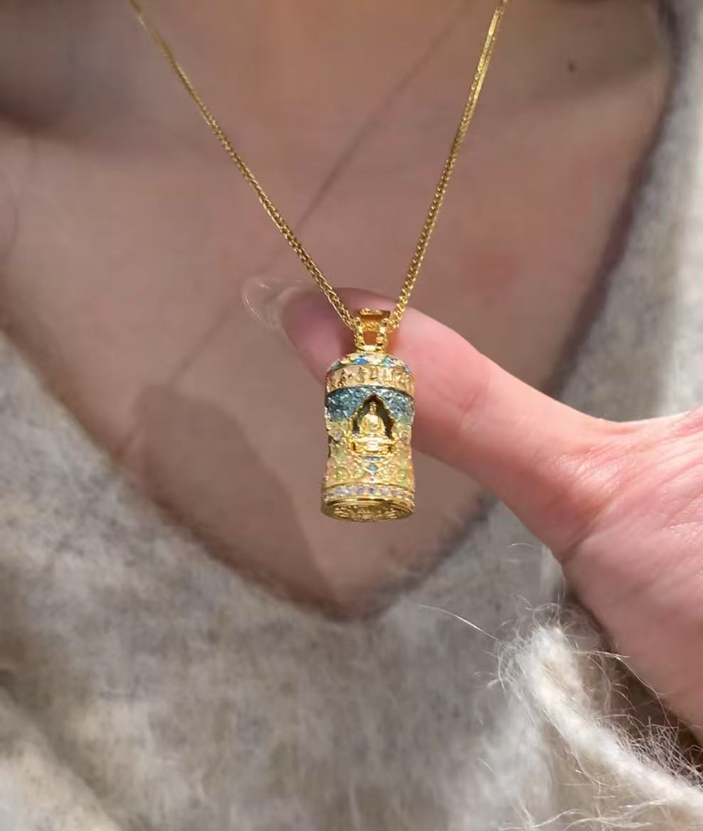 纯银S925新中式复古国风四面佛转经筒珐琅工艺项链高级感气质轻奢