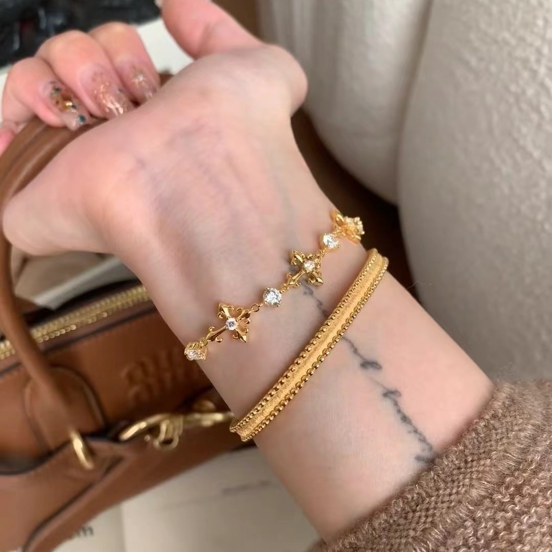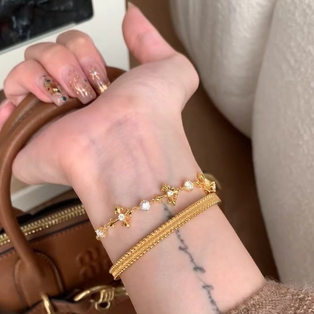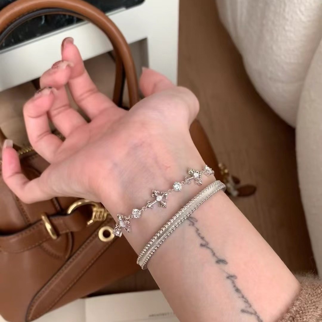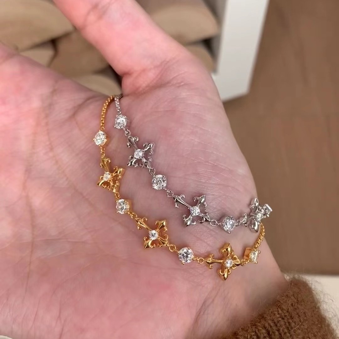 纯银S925高碳钻鸢尾花十字架手链轻奢高级感精致小众设计珠宝