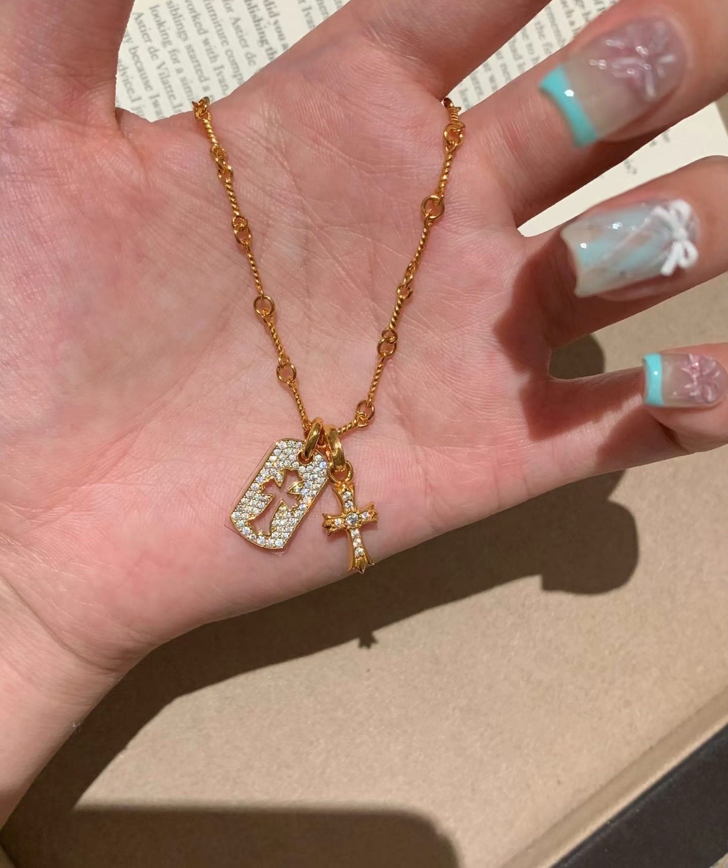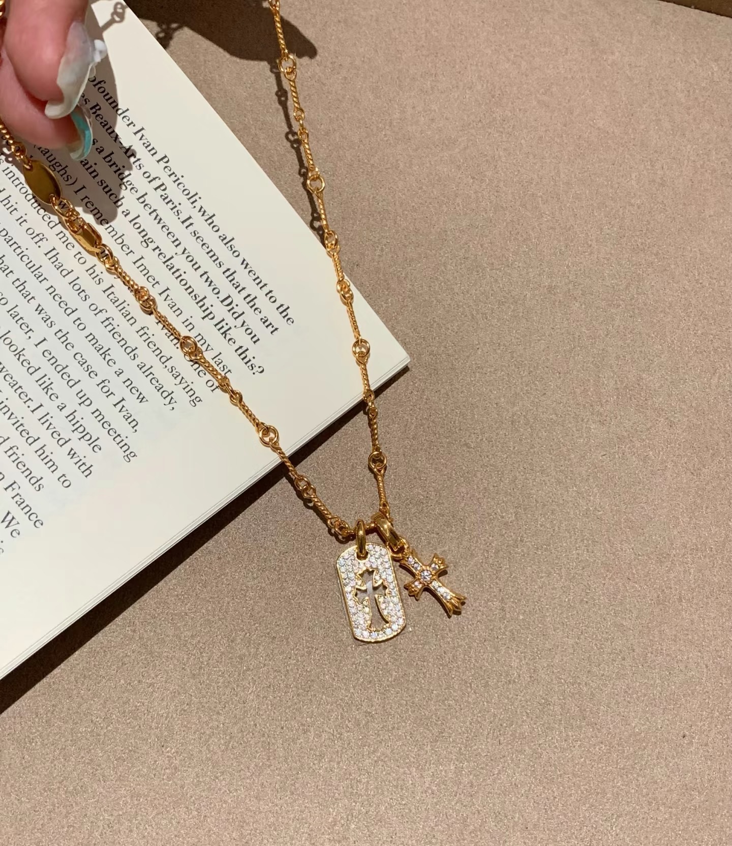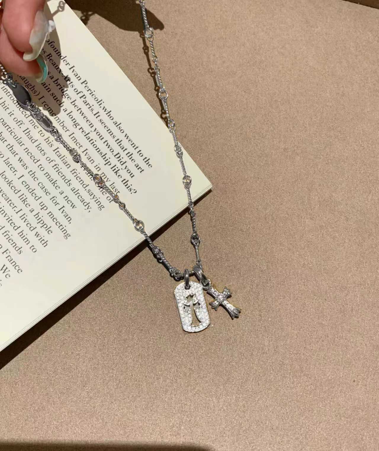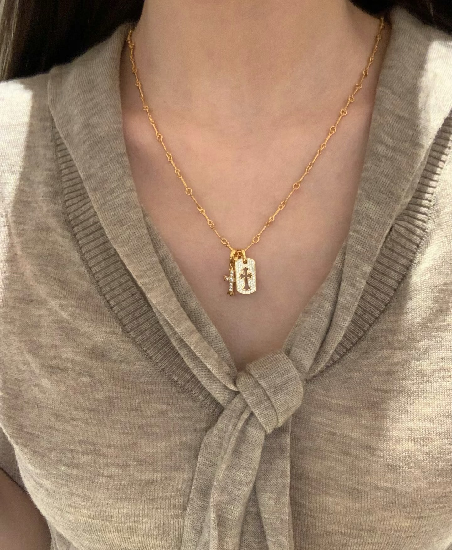 纯银S925双十字架项链小众ins风高级轻奢感欧美复古百搭重工锁骨