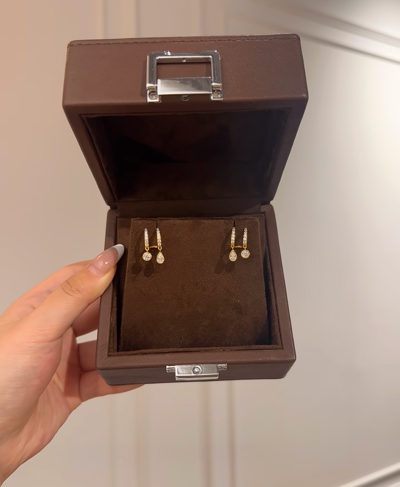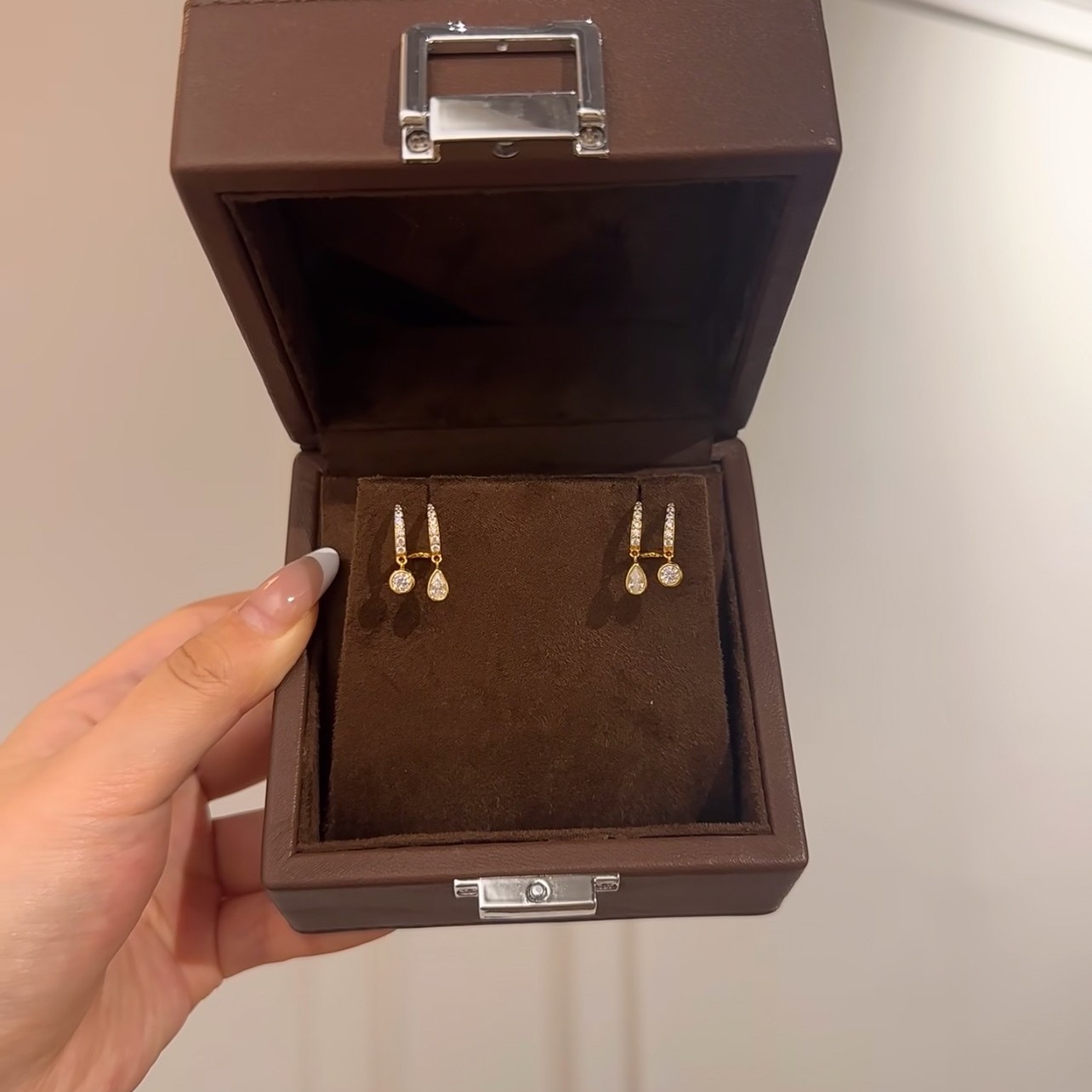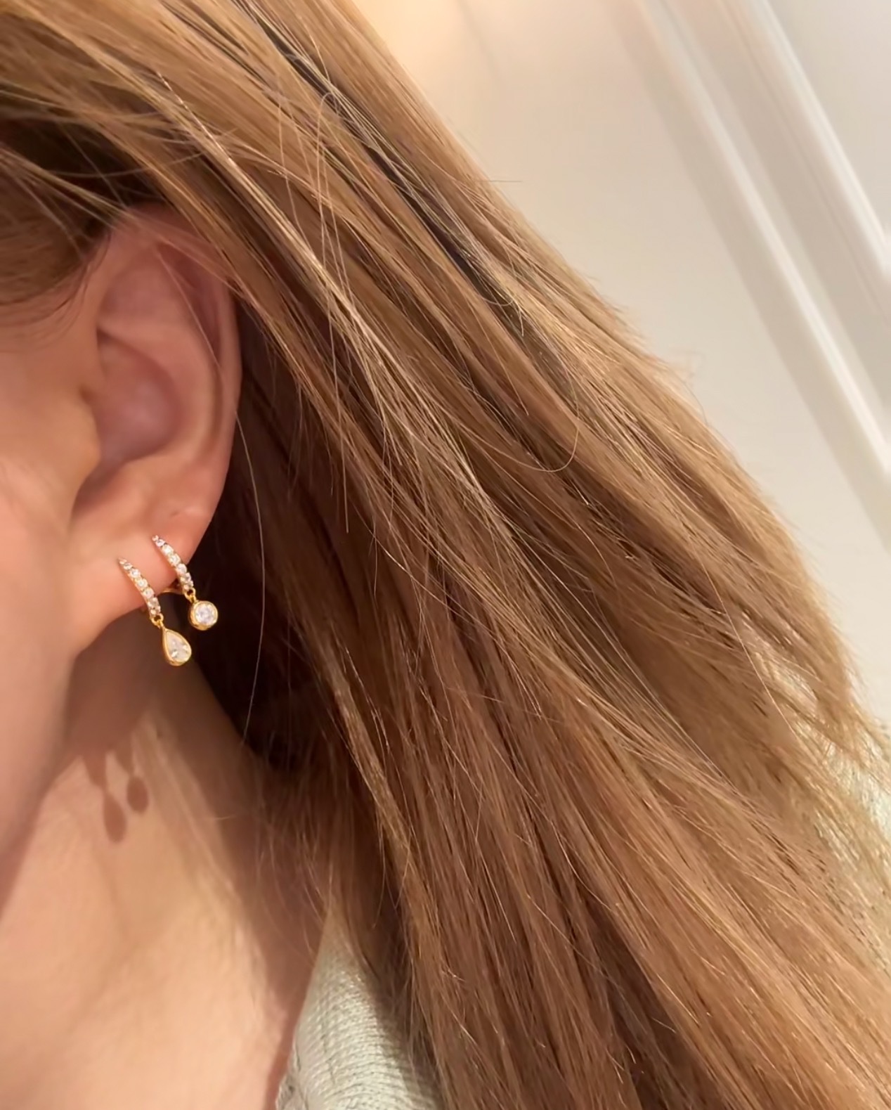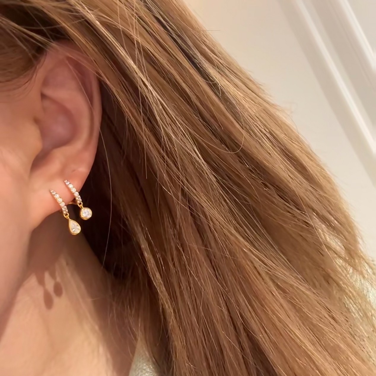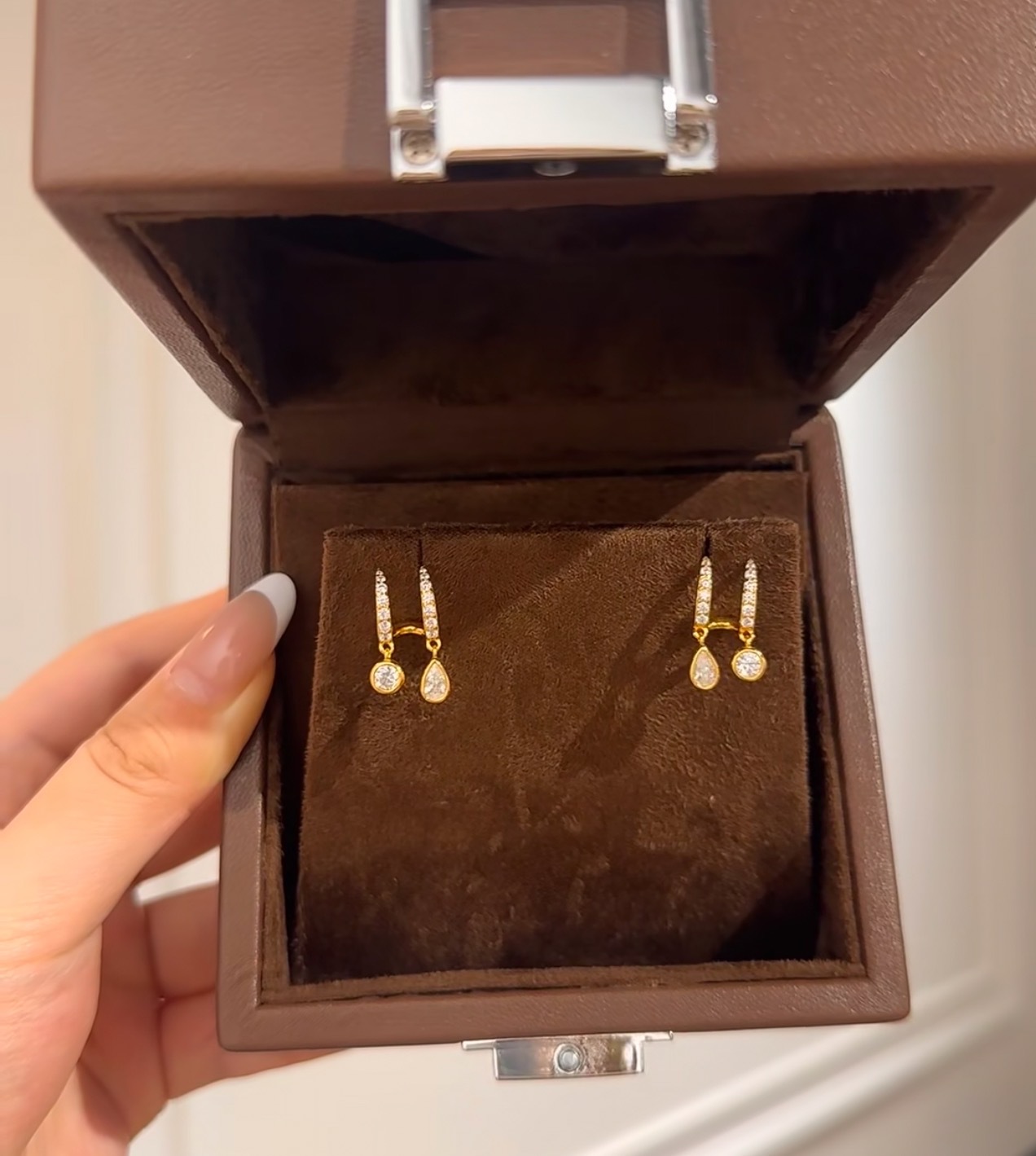 S925纯银高碳钻瑞秋耳环灵动长款几何双水滴耳饰轻奢冷淡风气质