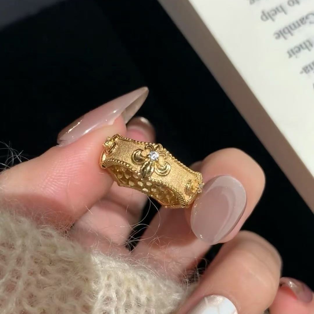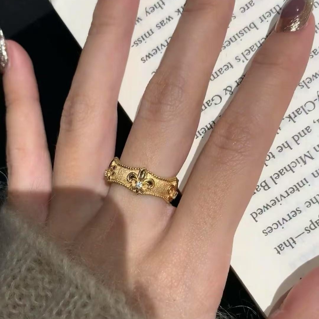 法式复古宫廷意大利拉丝工艺鸢尾花戒指轻奢高级感百搭个性时尚