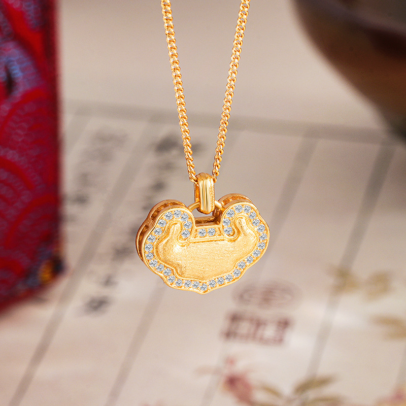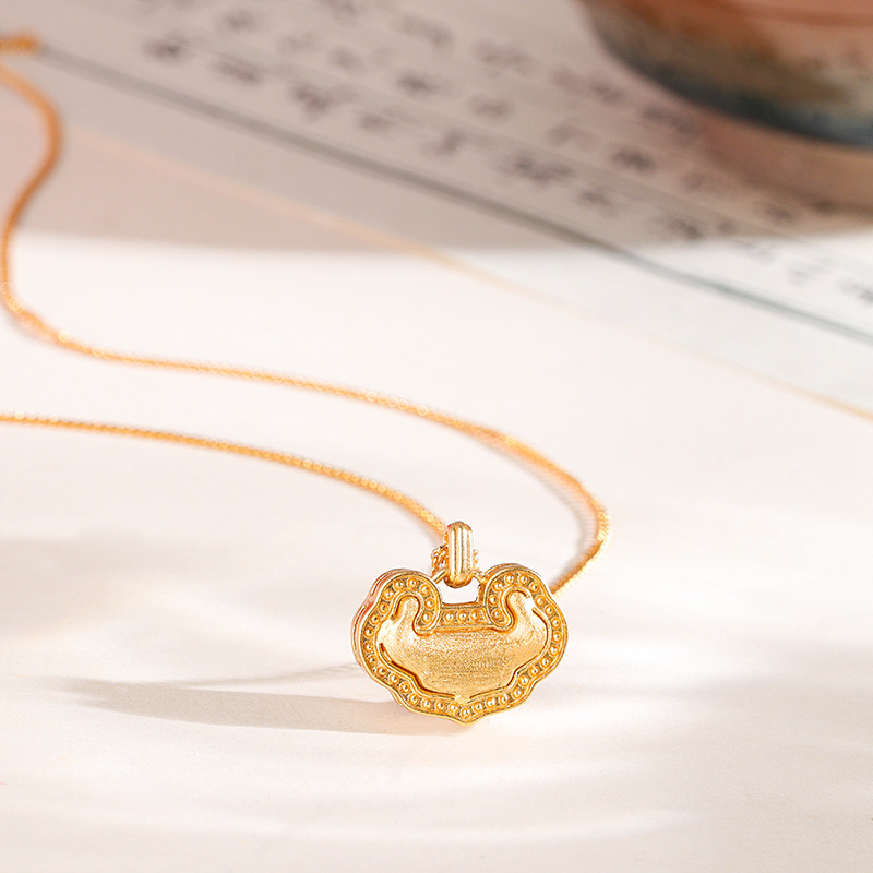 s925纯银拉丝工艺如意锁包吊坠女高级感新中式国潮风锁骨链