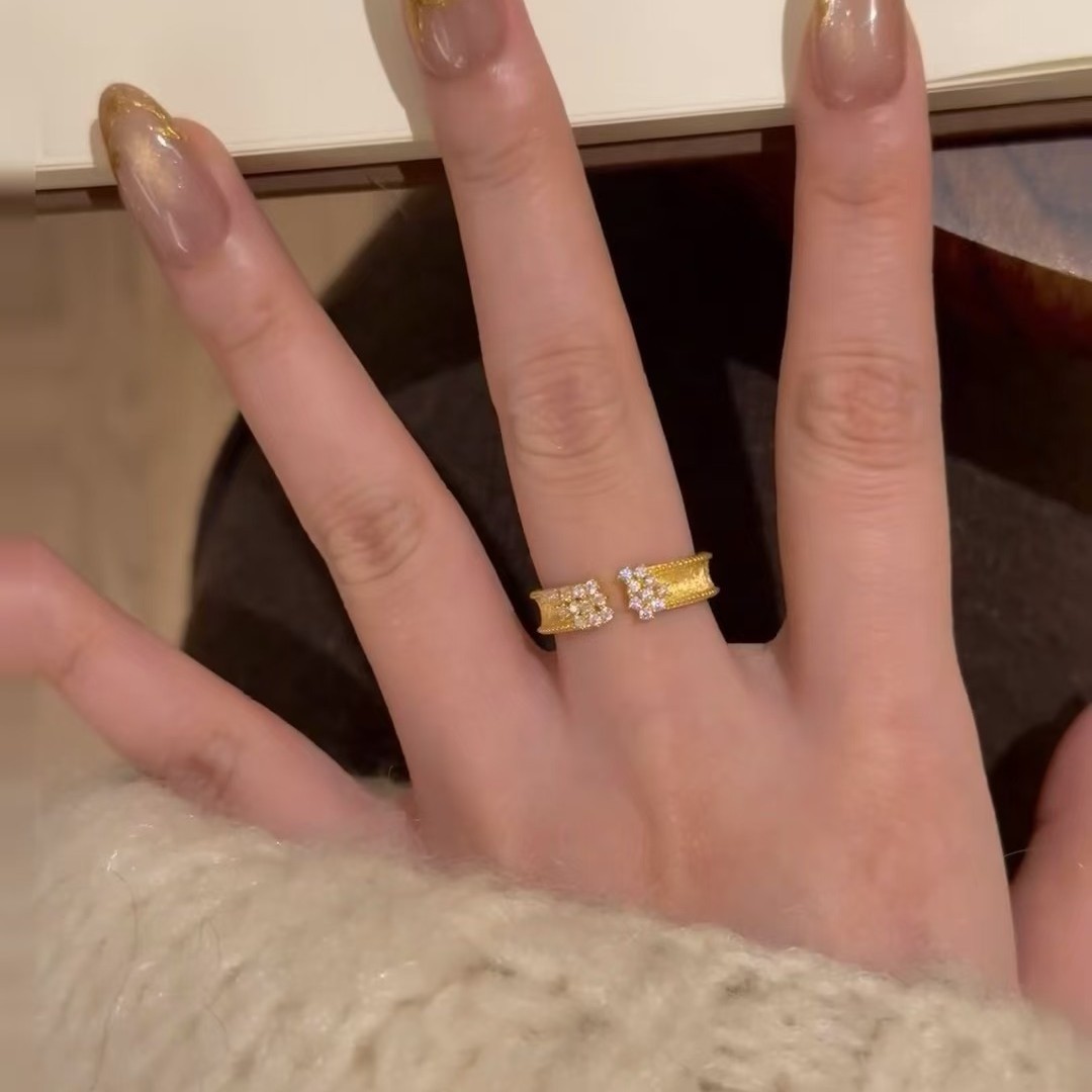 轻奢法式繁星点点拉丝戒指叠戴小众百搭精致时尚气质复古指